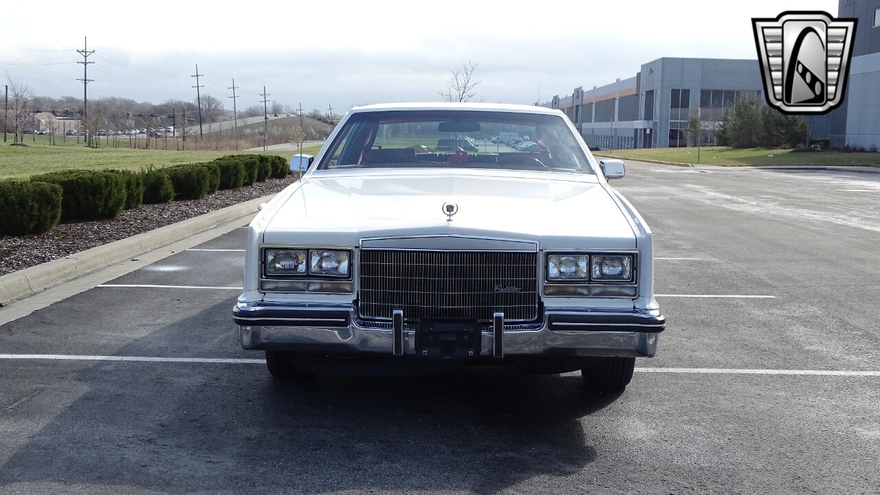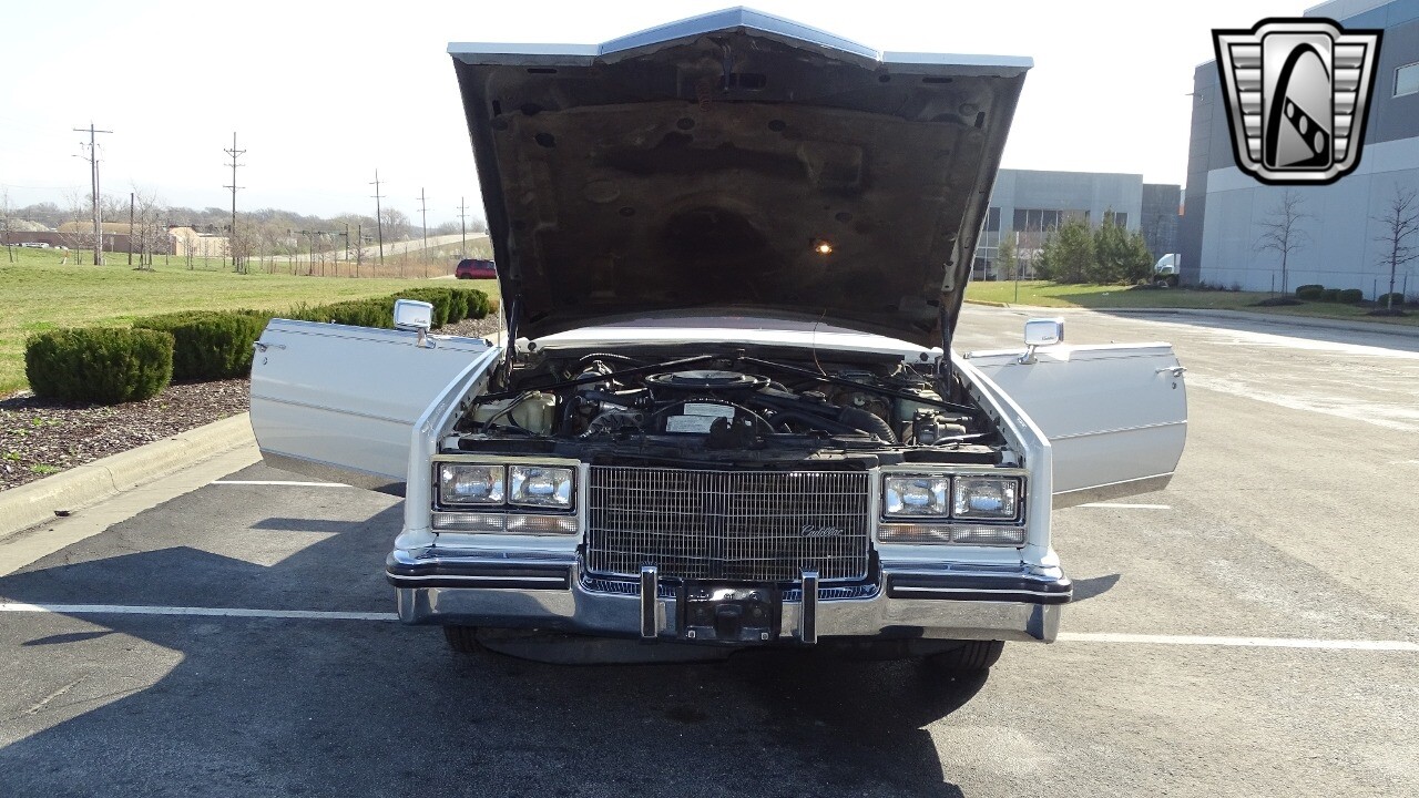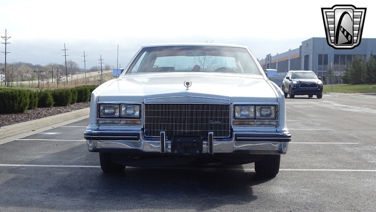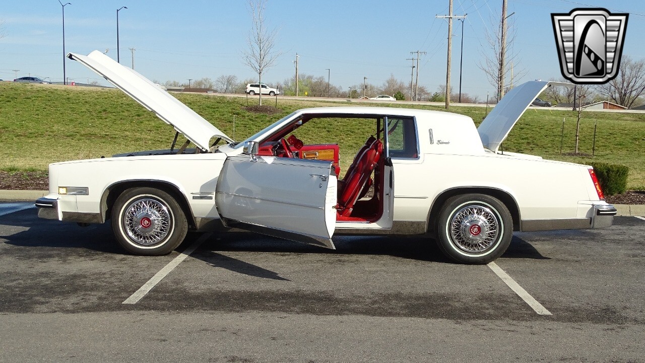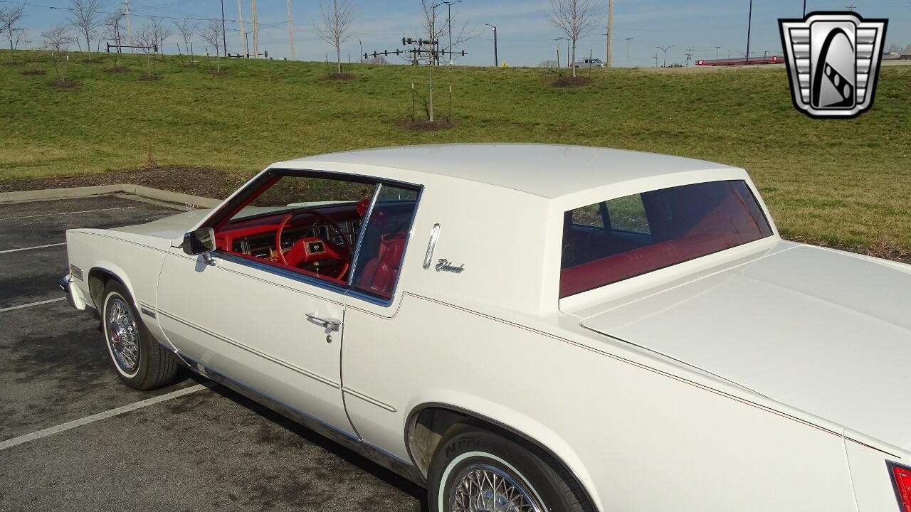 Introducing the classic 1983 Cadillac Eldorado, a timeless piece of automotive history that captures the essence of luxury and style. This vehicle is presented in a stunning white exterior that nicely complements its vibrant red leather interior, creating a striking contrast that is sure to turn heads wherever you go.