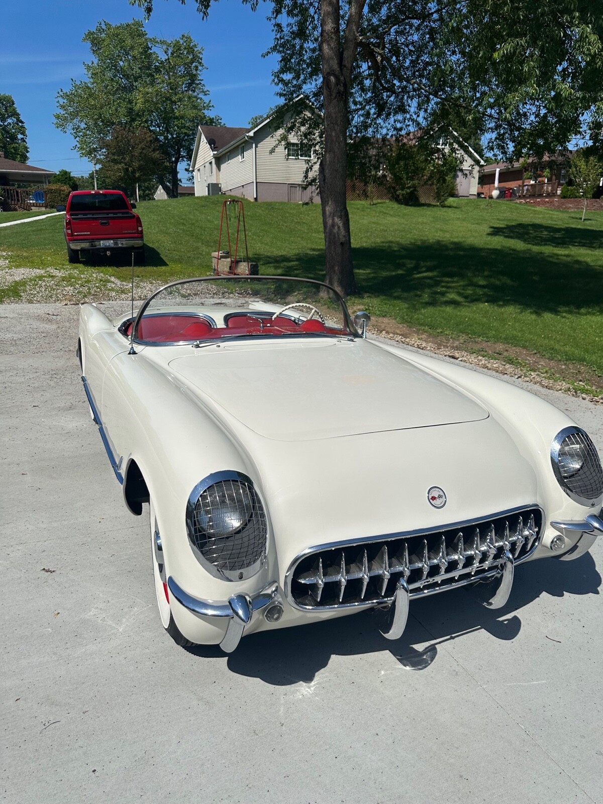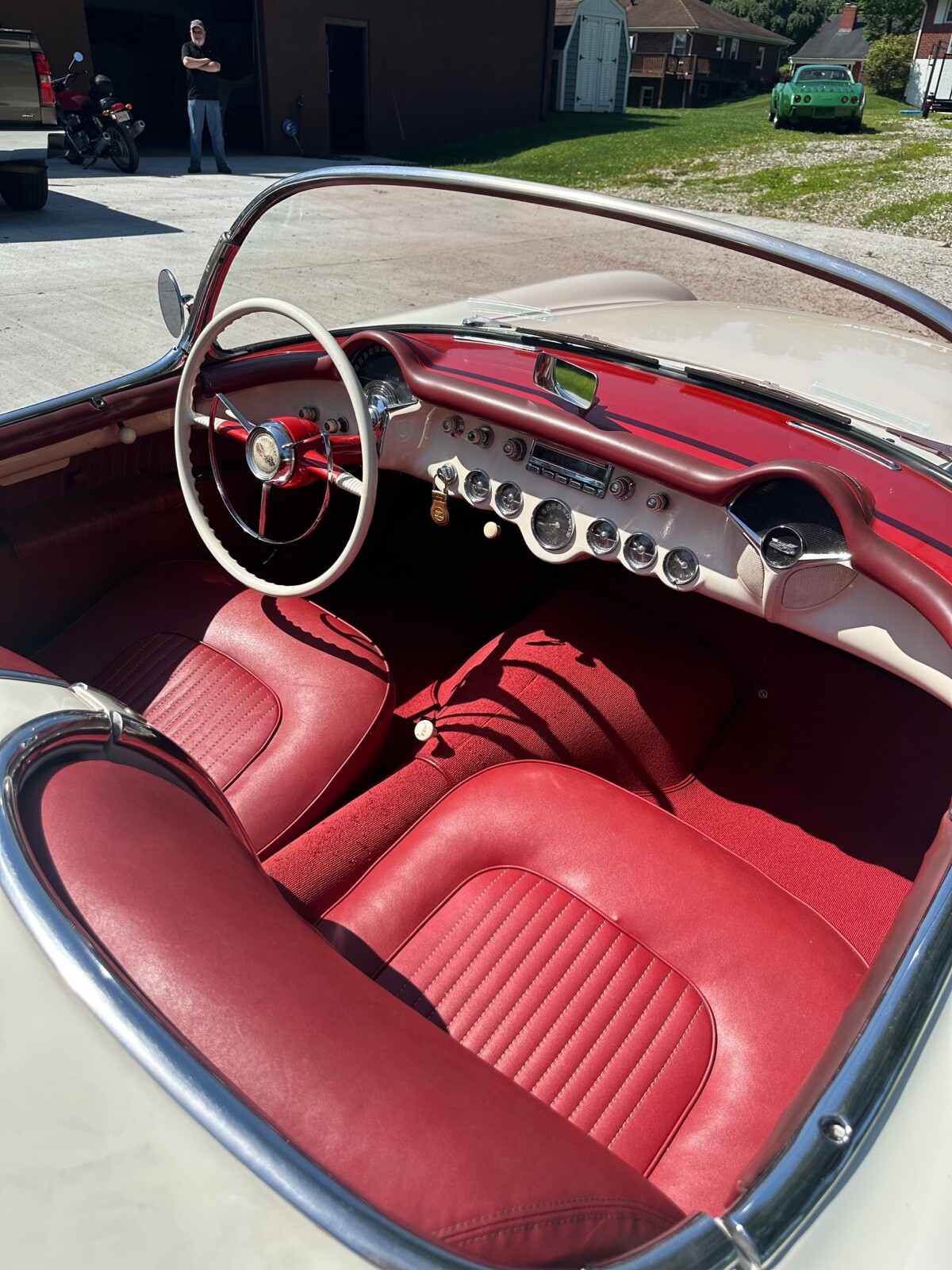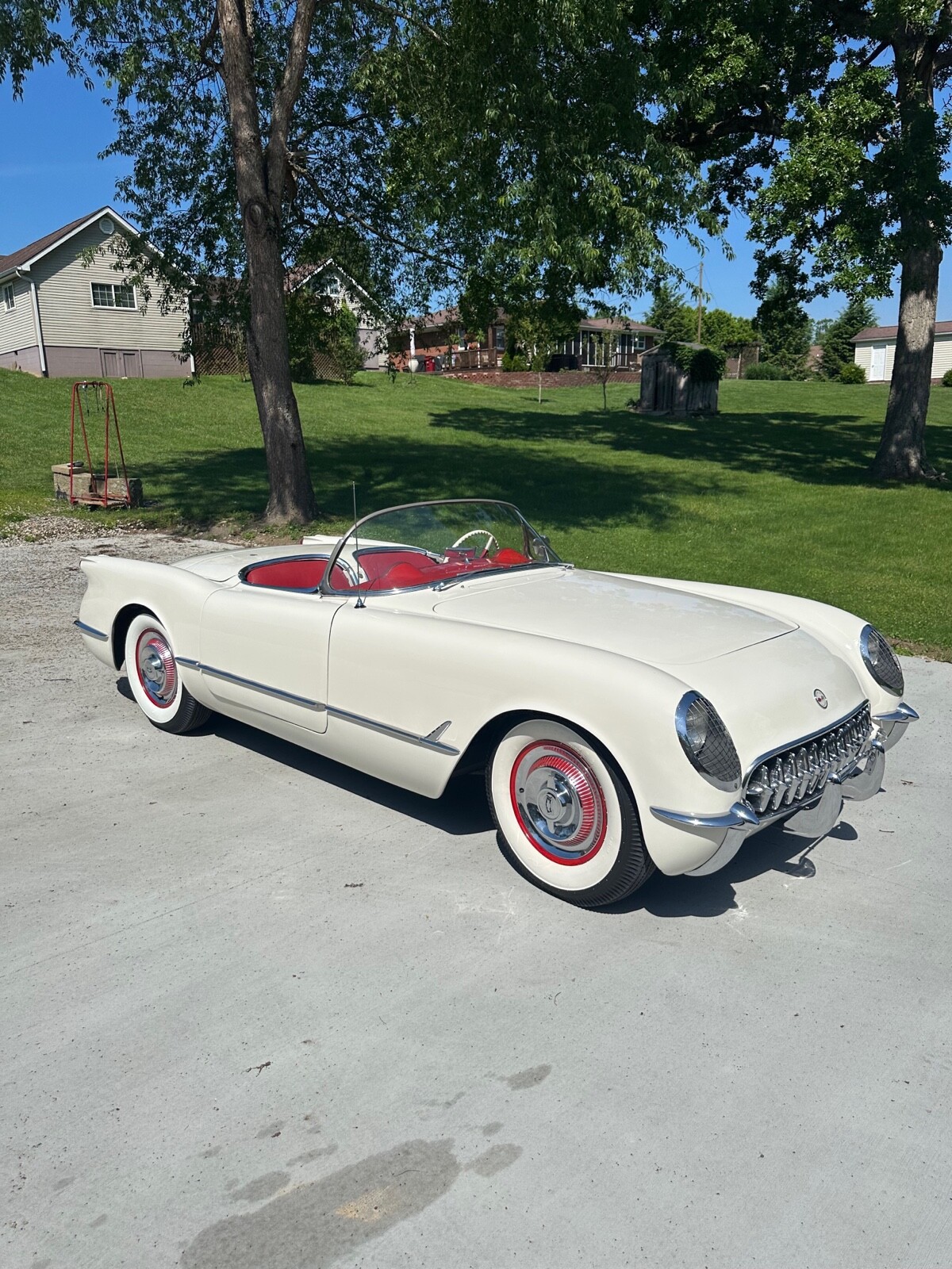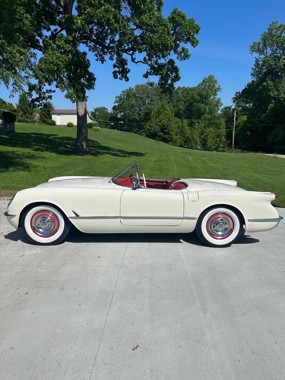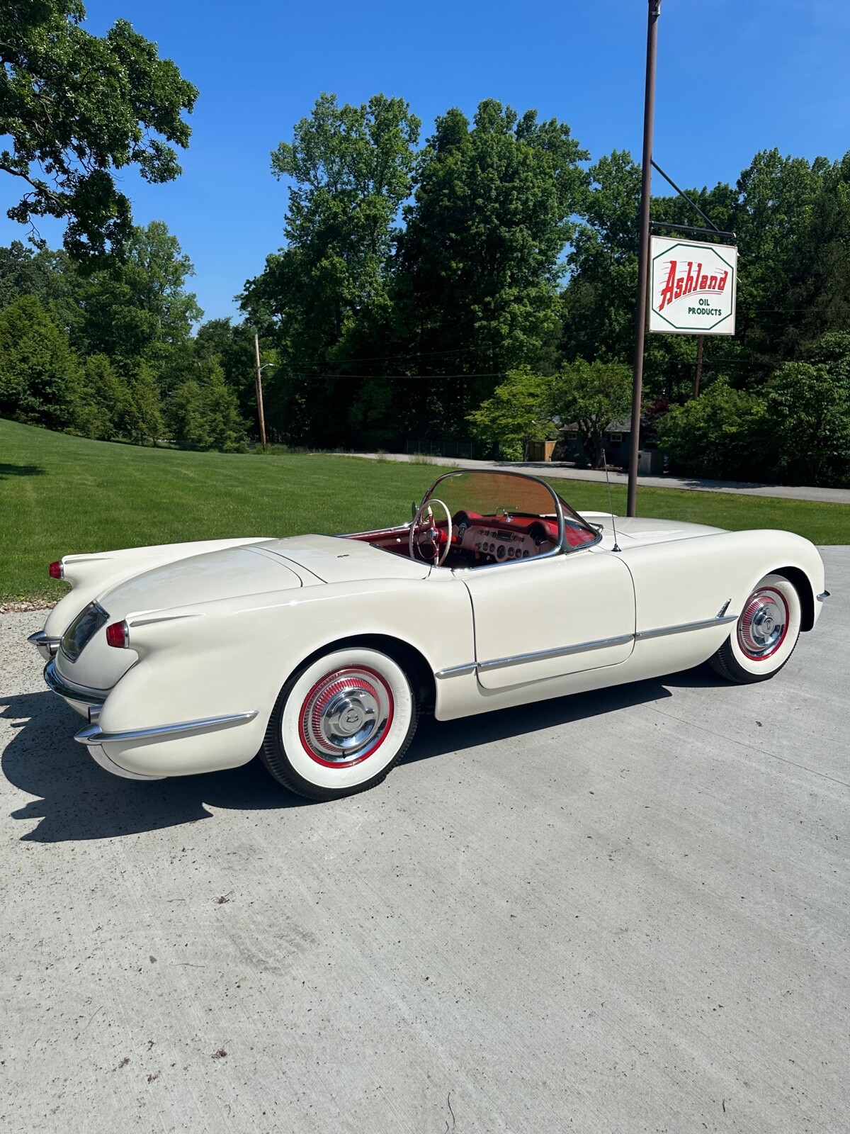 A super nice 1954 corvette with matching numbers and an unhit body. Car just came out of storage and is an older restoration. Paint is very nice and interior is new. Car has new Firestone wide whites and original spare is in trunk with jack and tools. Car starts, runs and drives excellent and would win most local shows. Top is new and operates like it should. Lots of paperwork and owner history comes with car. Priced below market at 61,900 or best offer. Chuck 606-232-9116