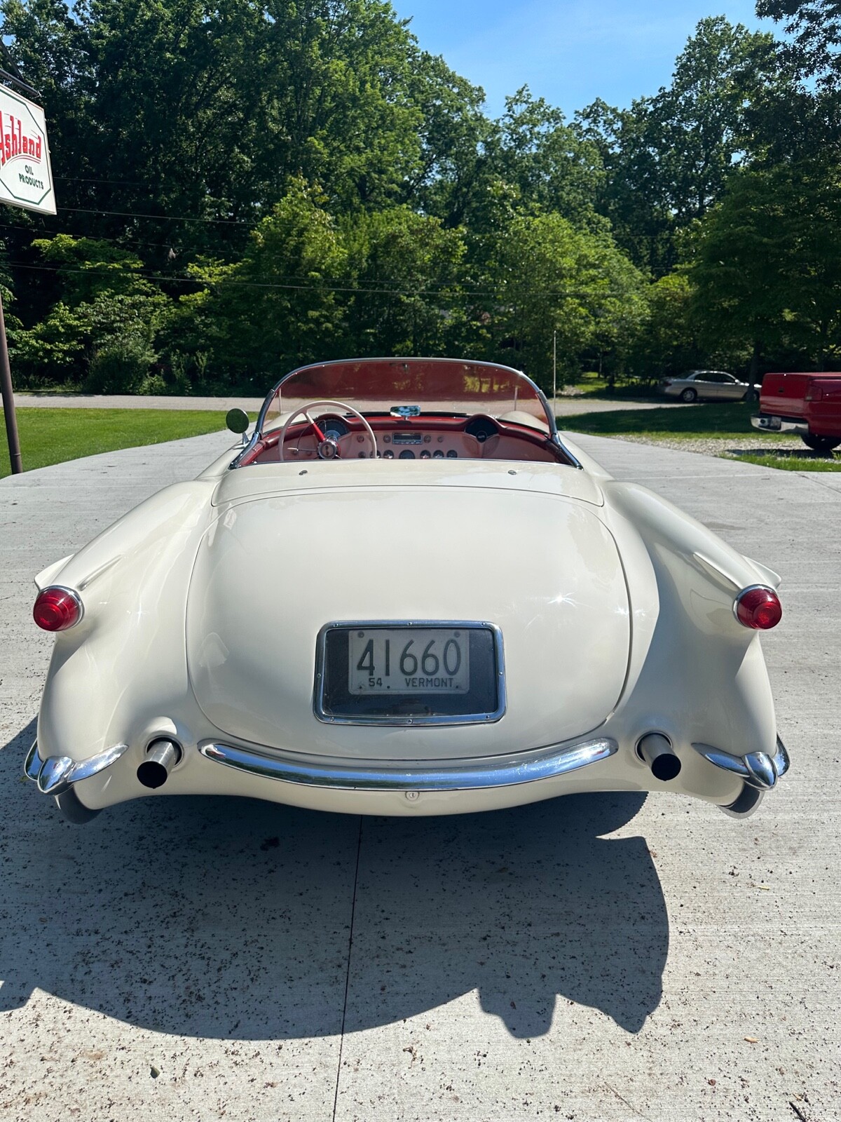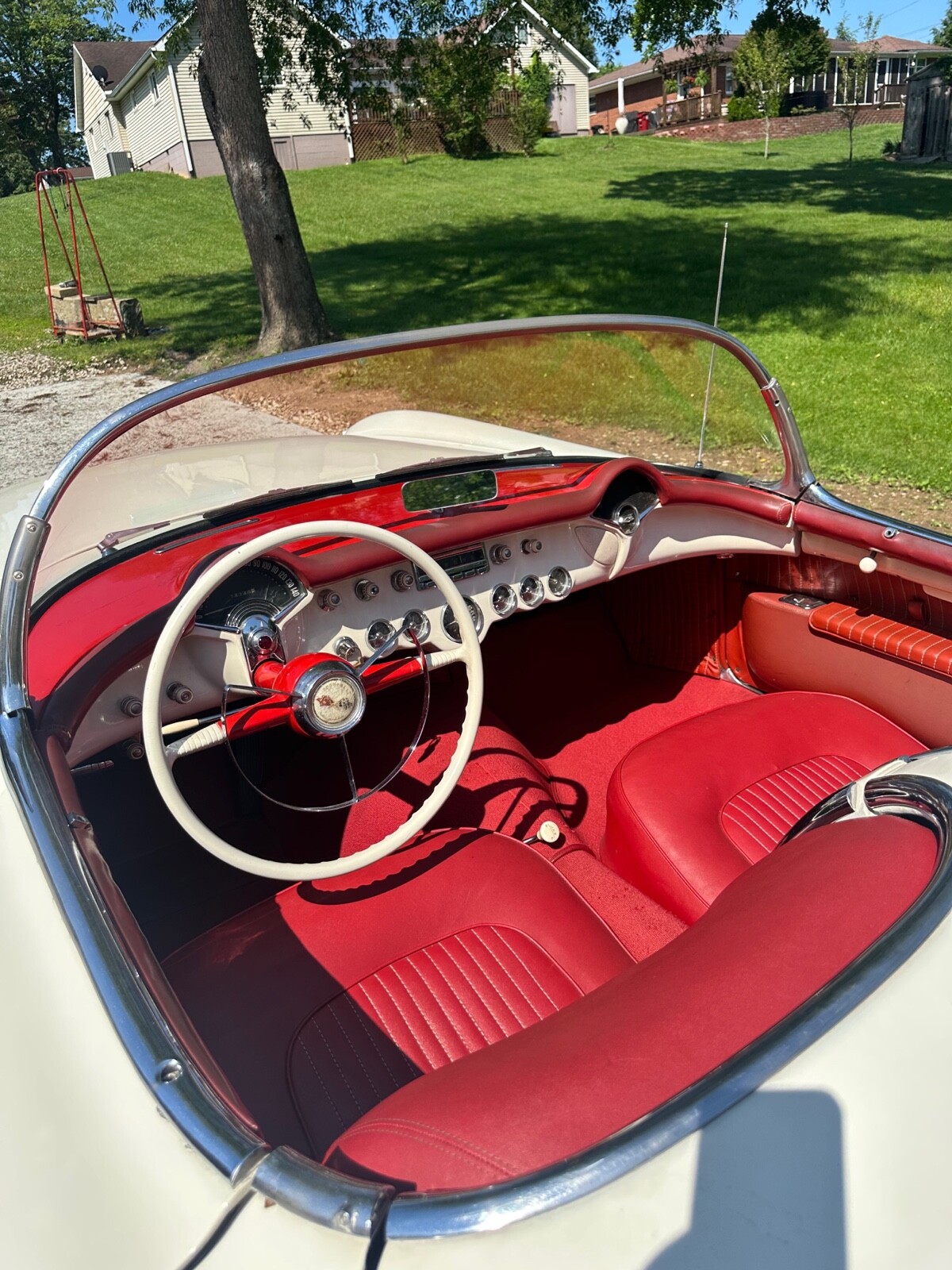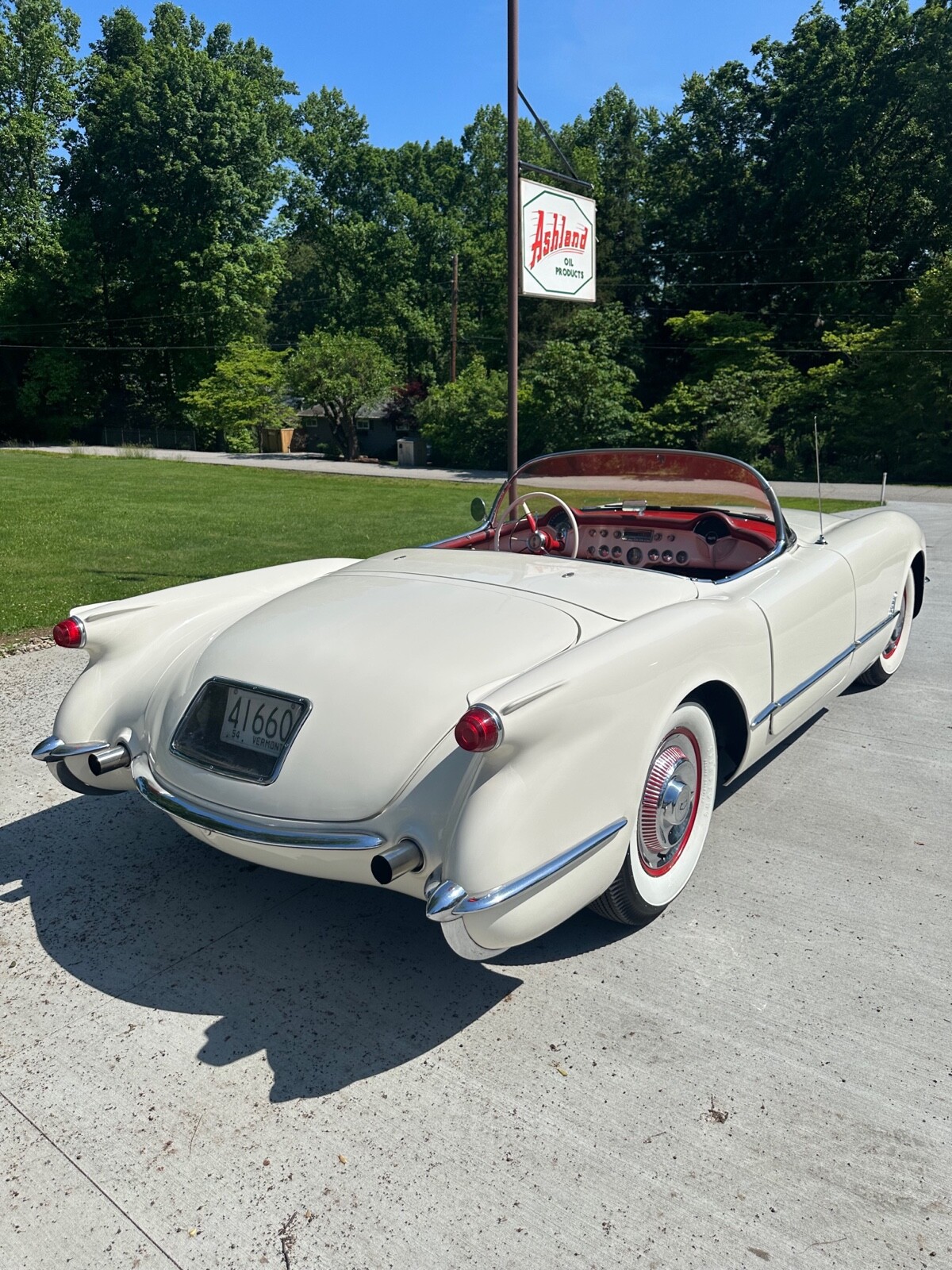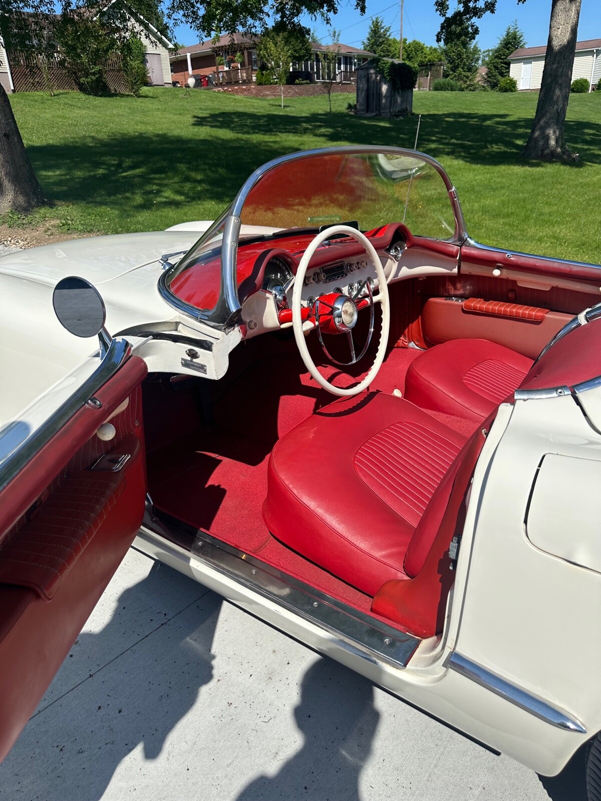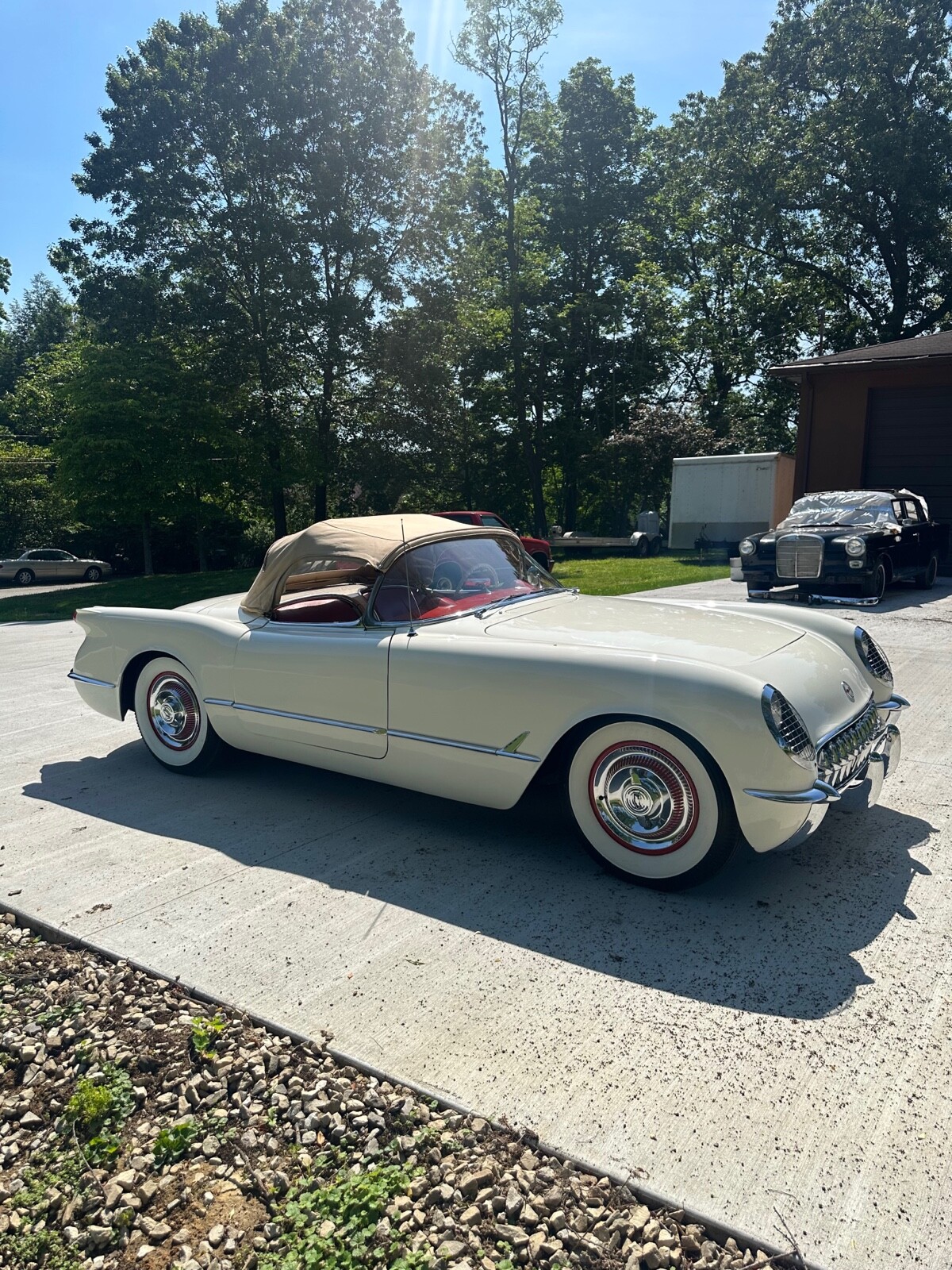 A super nice 1954 corvette with matching numbers and an unhit body. Car just came out of storage and is an older restoration. Paint is very nice and interior is new. Car has new Firestone wide whites and original spare is in trunk with jack and tools. Car starts, runs and drives excellent and would win most local shows. Top is new and operates like it should. Lots of paperwork and owner history comes with car. Priced below market at 61,900 or best offer. Chuck 606-232-9116