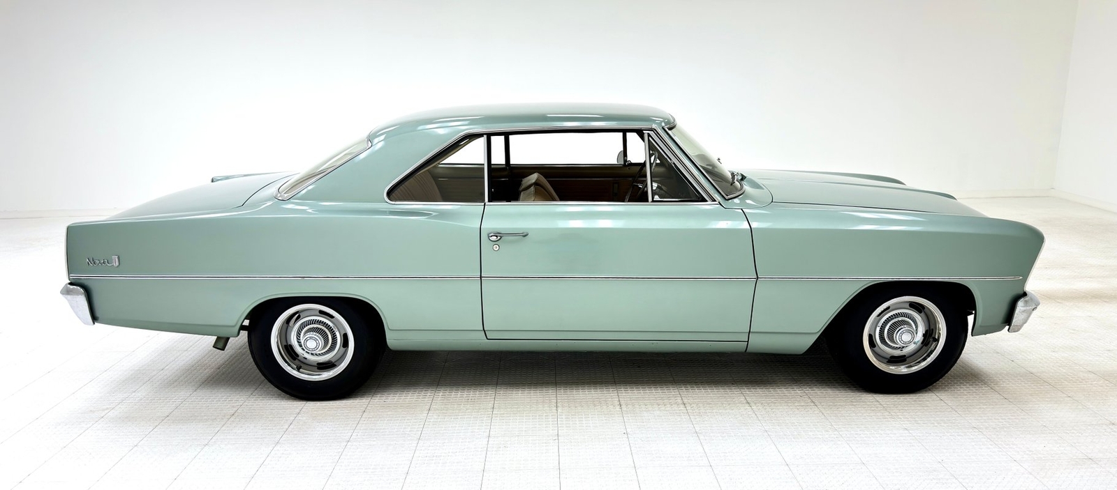 For consignment, a 1966 Chevrolet Nova in a beautiful shade of green and rocking a 350ci V8. Here's a clean rust free driver that has a lot of desirable features. First and second generation Nova's are perhaps the unsung heroes of the collector market. Demand is underrated and prices still reflect that and as a result, they're usually scooped up in short order here at Classic Auto Mall.