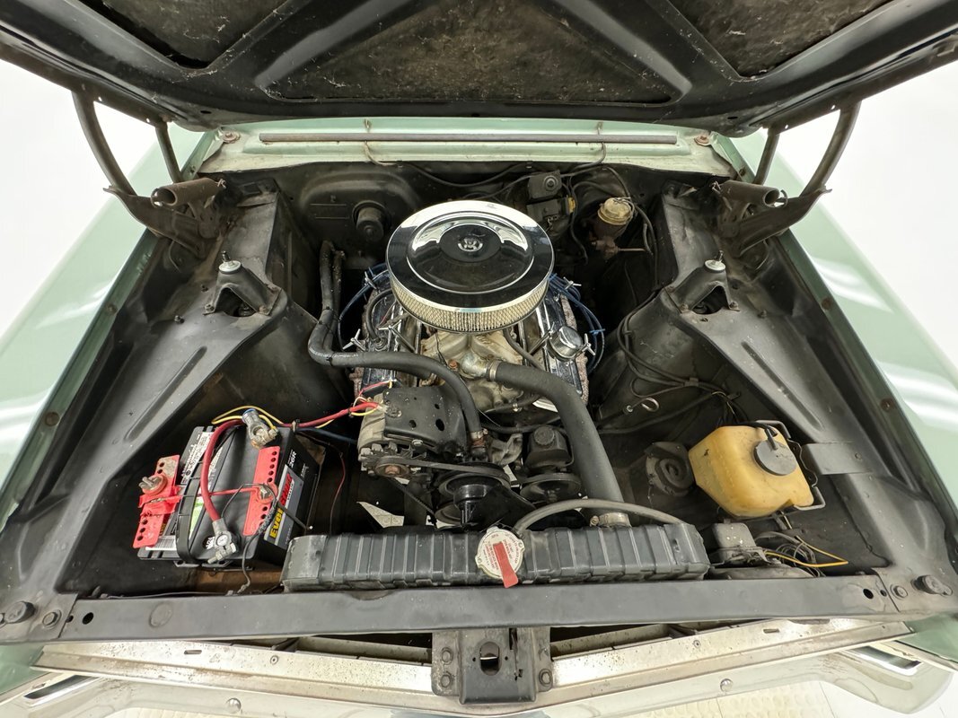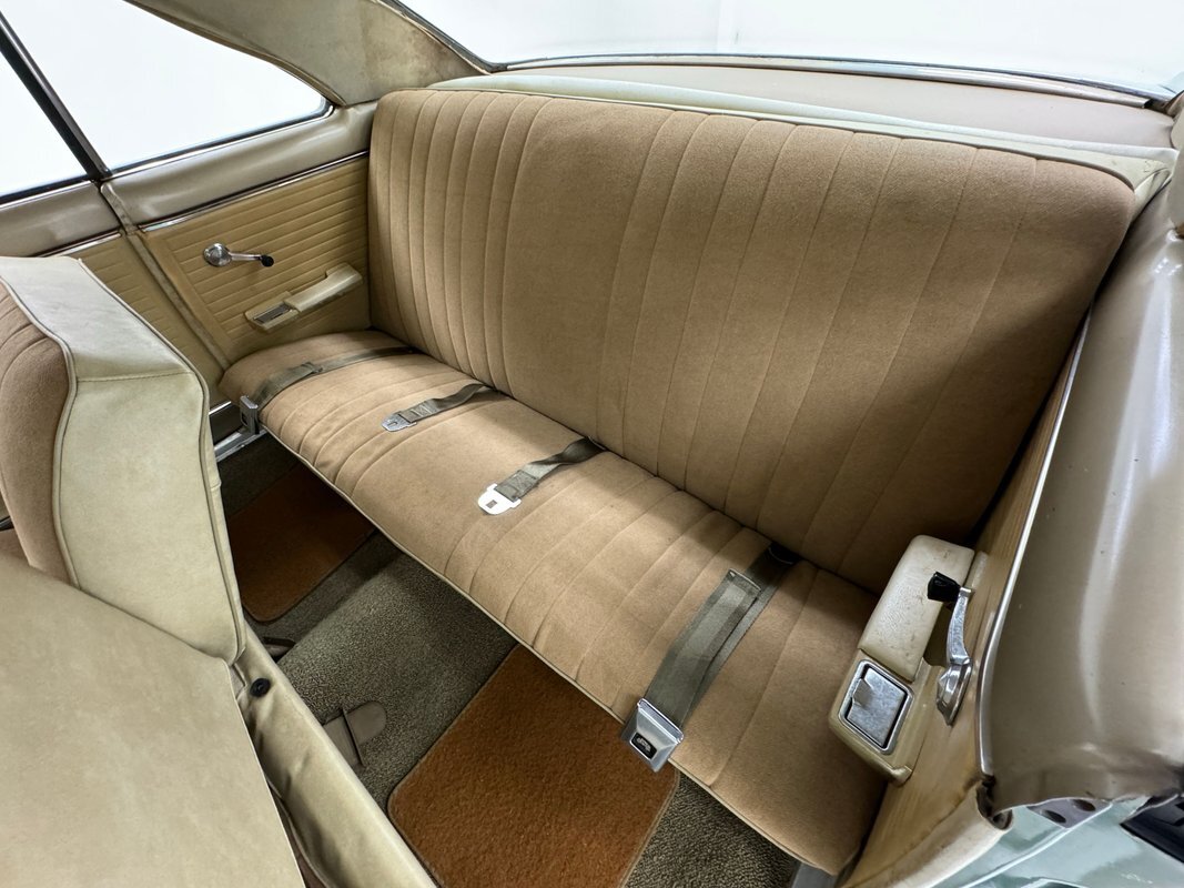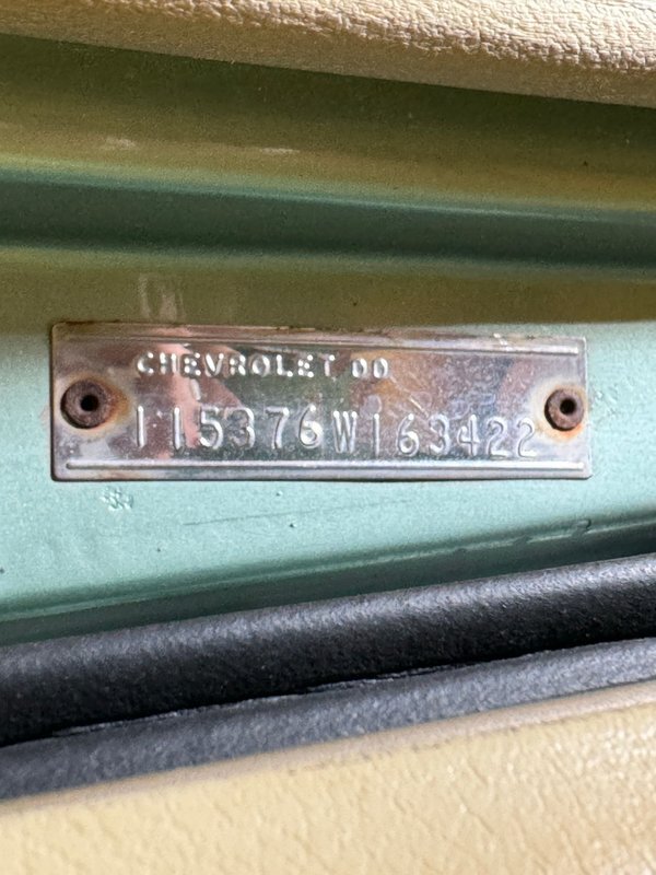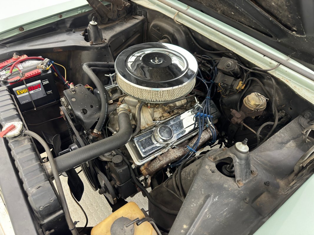Resprayed in Willow Green, one can imagine this car being a daily commuter and completely flying under the radar back in the day. Its simple design has endured all these years with single headlights, straight panels, basic lines, and a shoulder line that lends itself to a subtly muscular profile. Modest vertical taillights flank a flat trim piece on the square decklid over a wide chrome bumper. There's also a trim piece that intersects the green paint and travels from nose to tail down the sides, more cosmetic than door guard but works that way as well. Some of the metal work is in great shape while other pieces are pitted and will need restoration if that is the direction of the next owner. There are only minor imperfections with the paint with a few bubbles and some painted over unevenness, but overall things are in very good condition. 14-inch Chevrolet Rally wheels carry 75 series tires and look ideal for the car.