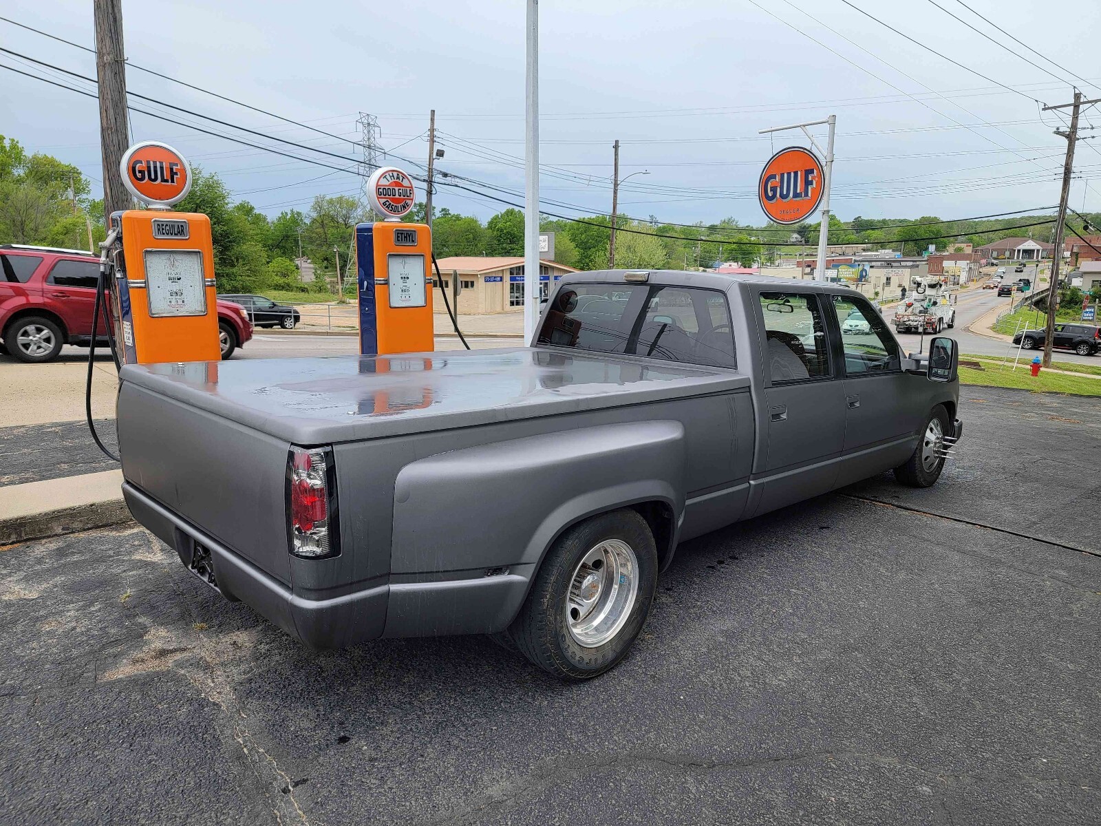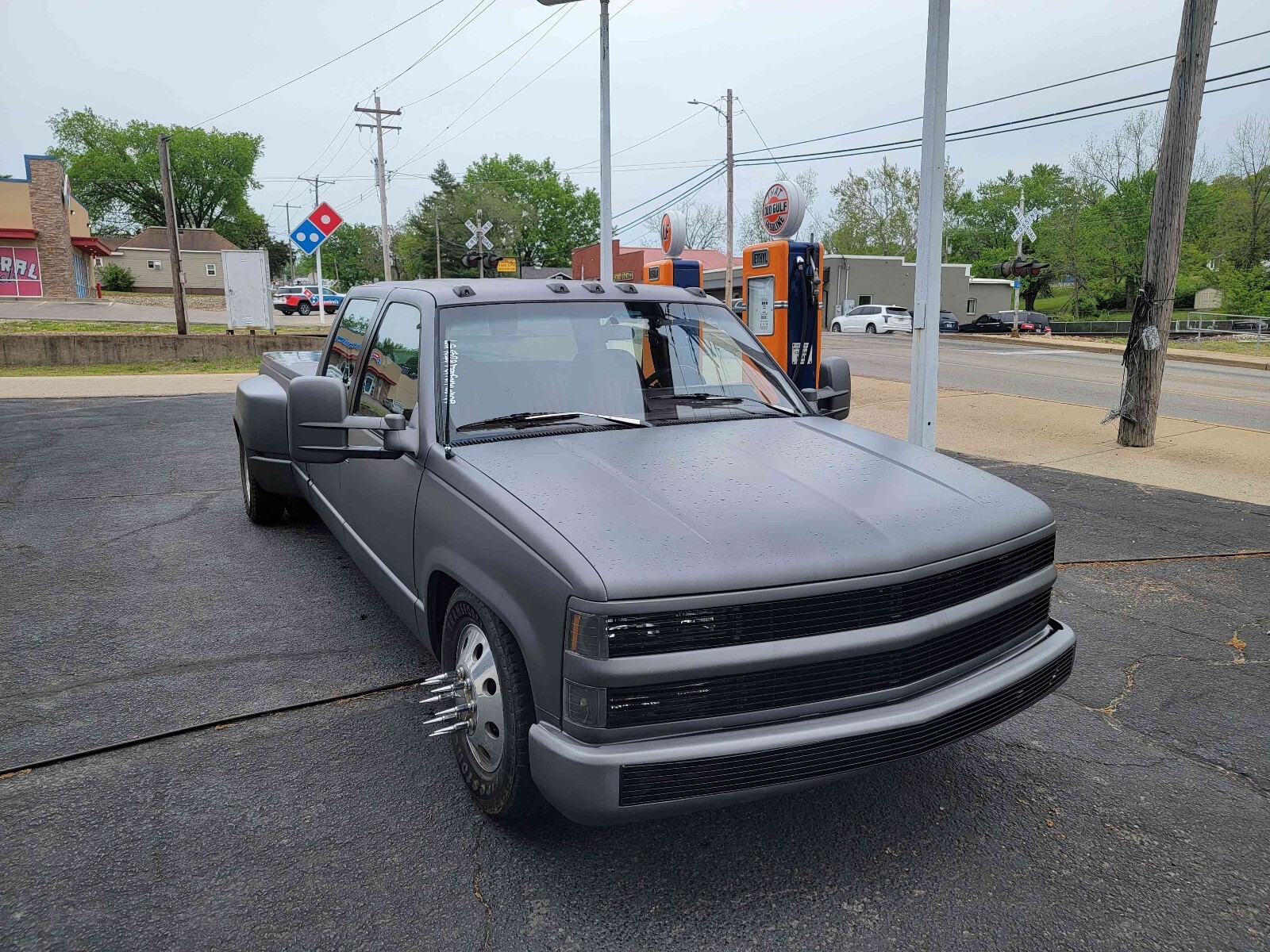 1992 4 door chevy dually. 454 with brand new 4l80e and converter. New steering gearbox and several suspension and brake parts. New radio with custom sub/speaker center console (not professional) but works and sounds good. Newer paint it's HotRodz flat grey Mettalic. Runs and drives great! Paint has some flaws (chips and a couple popping spots) and arm rest won't stay on drivers door but solid mechanically. Lowered with belltech parts has helper air bags in the back. Alcoa wheels with spike lug nuts. True phantom grille with custom matching bumper. Shaved tail gate with relocated handle. Will be continuing to tinker with it till it sales. Got about 12mpg on the last 200 mile trip. Cash talks make a good offer, trying to downsize the fleet