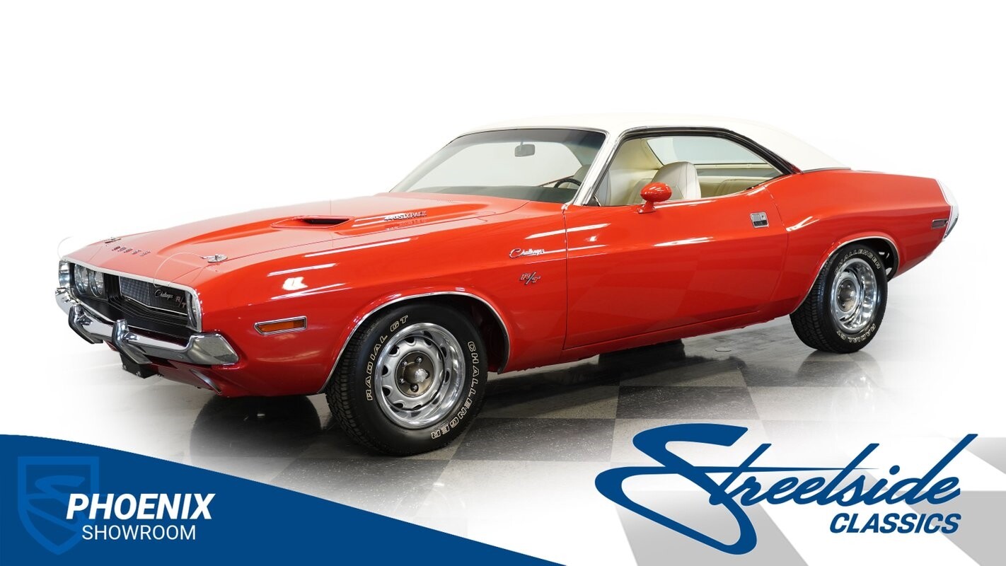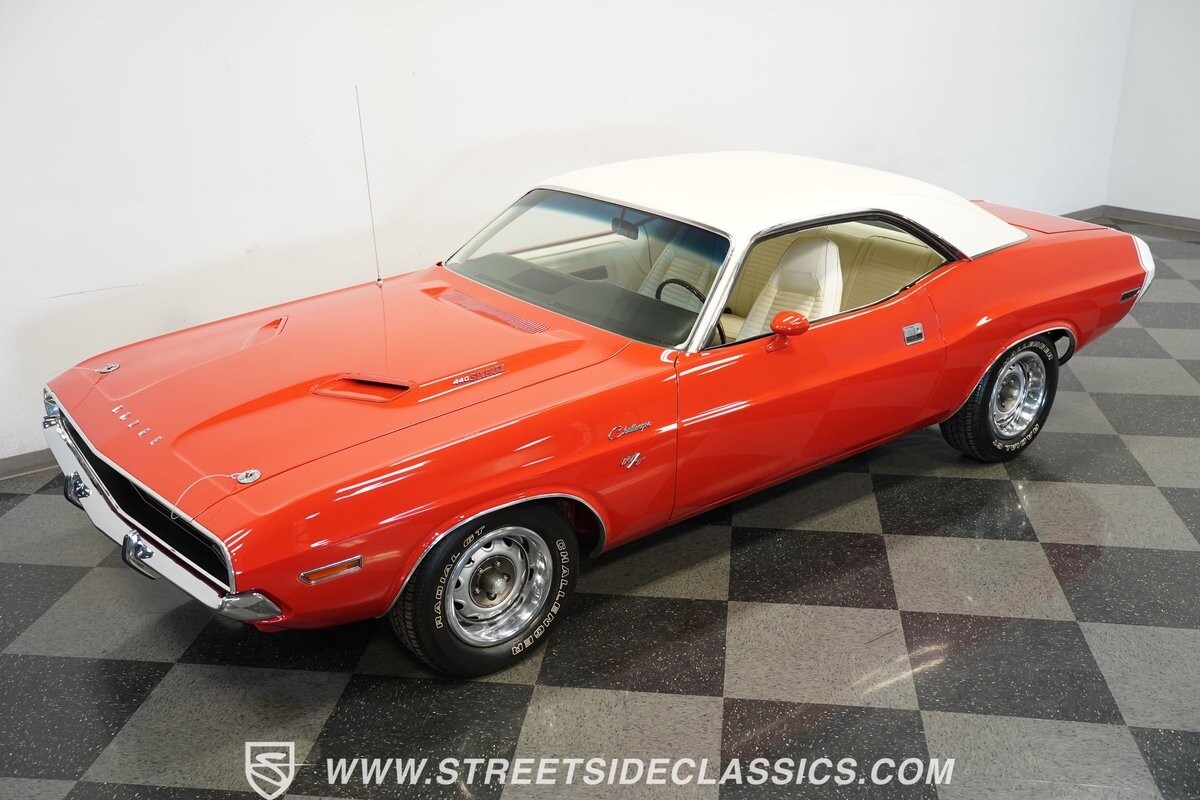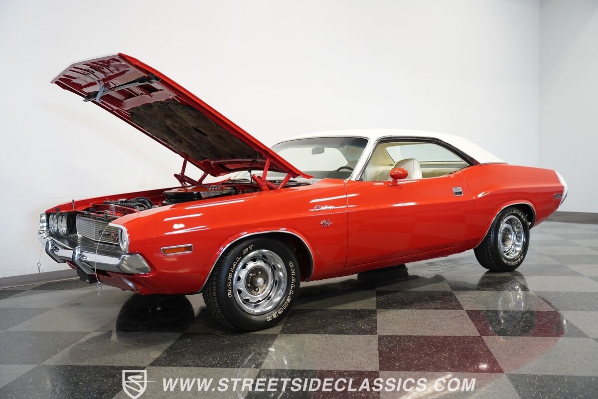 The 1970 Dodge Challenger R/T 440 6-Pack's enduring appeal stems not only from its handsome styling, but also its ability to accommodate the entire Chrysler engine range by virtue of the front sub-frame, which was borrowed from the B-bodied Charger/Coronet. In addition, the use of the Charger/Coronet rear suspension layout provided a wide rear track that could house larger wheels and tires. The result was the so-called E-body, which would underpin both the Dodge Challenger and Plymouth Barracuda. Launched for the 1970 model year in coupe and convertible variants, the Challenger was a late arrival to the muscle-car scene. Despite being tardy, it did gain popularity with wild colors, vast options, and an impressive roster of powertrain combinations. One of the more appealing trim levels was the high-performance R/T or "Road and Track" option package. It included all the standard Challenger features and added an electric clock, Rallye gauge cluster, Rallye suspension with front and rear sway bars, heavy-duty front disc and rear drum brakes, fiberglass belted tires with raised white letters, and special striping.