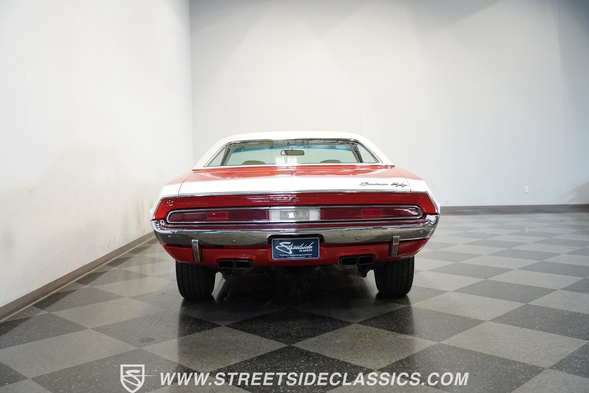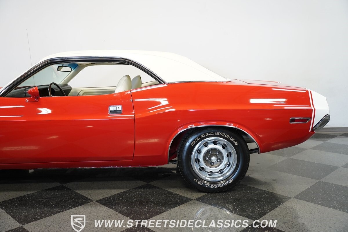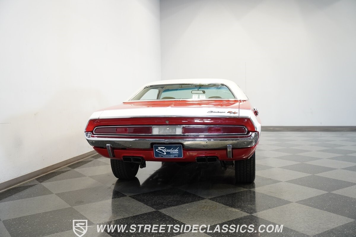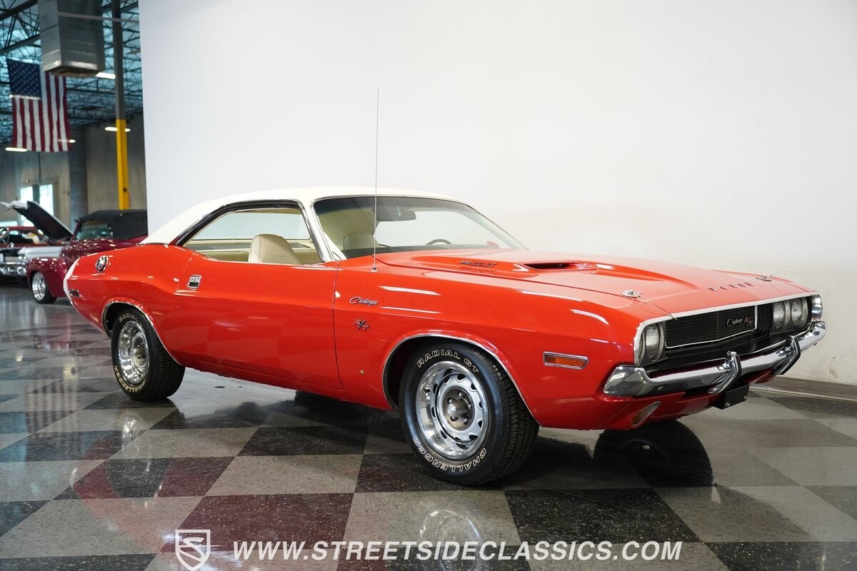 The 1970 Dodge Challenger R/T 440 6-Pack's enduring appeal stems not only from its handsome styling, but also its ability to accommodate the entire Chrysler engine range by virtue of the front sub-frame, which was borrowed from the B-bodied Charger/Coronet. In addition, the use of the Charger/Coronet rear suspension layout provided a wide rear track that could house larger wheels and tires. The result was the so-called E-body, which would underpin both the Dodge Challenger and Plymouth Barracuda. Launched for the 1970 model year in coupe and convertible variants, the Challenger was a late arrival to the muscle-car scene. Despite being tardy, it did gain popularity with wild colors, vast options, and an impressive roster of powertrain combinations. One of the more appealing trim levels was the high-performance R/T or "Road and Track" option package. It included all the standard Challenger features and added an electric clock, Rallye gauge cluster, Rallye suspension with front and rear sway bars, heavy-duty front disc and rear drum brakes, fiberglass belted tires with raised white letters, and special striping.