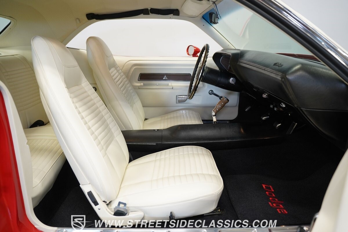 This beautifully and authentically restored, number-matching example is believed to be just one of 2,035 R/T coupes produced for the 1970 model year. It left the factory finished in Rally Red over a white vinyl interior with a white vinyl top and was equipped with the optional 440 cu.-in. "Six-Pack" V-8 engine. Breathing through no less than three Holley two-barrel carburetors on a Edelbrock intake, this desirable, high-output engine was rated to produce an impressive 390 horsepower. In this example, it is paired with a 4-speed manual transmission with the iconic pistol grip shifter that sends power back to a 4:10 limited-slip Dana 60 rear end.