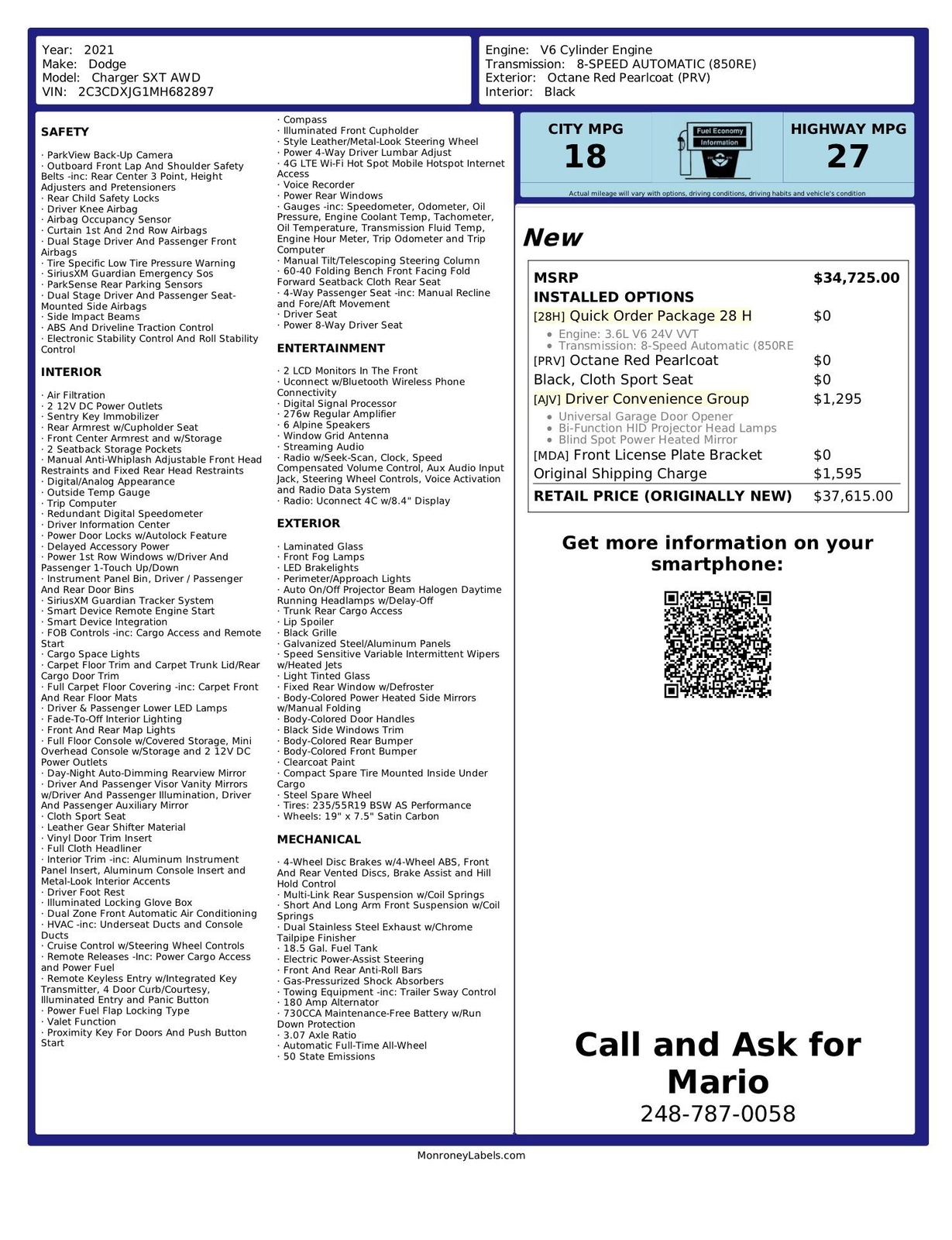 Has an Octane Red PearlCoat Exterior Color that shines like no other, matched with a Black Cloth interior….