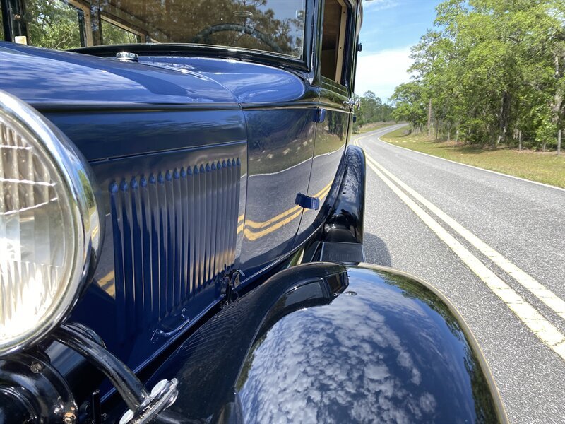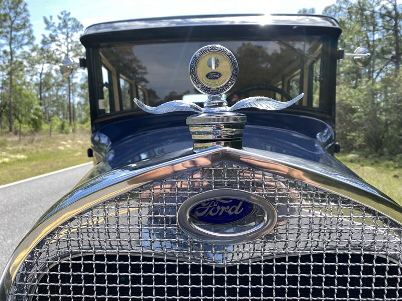 Inside, the brown interior contrasts well with the body color. Henry Ford still believed in keeping things simple, as the speedometer, odometer and trip odometer testify. With the Fordor body style, there is room for up to five people.