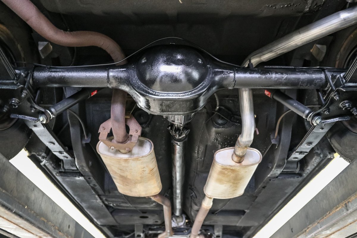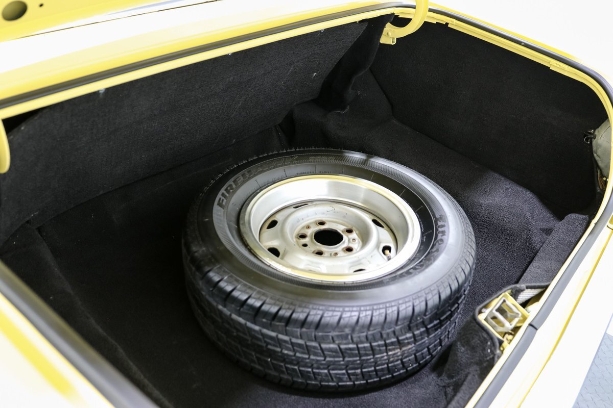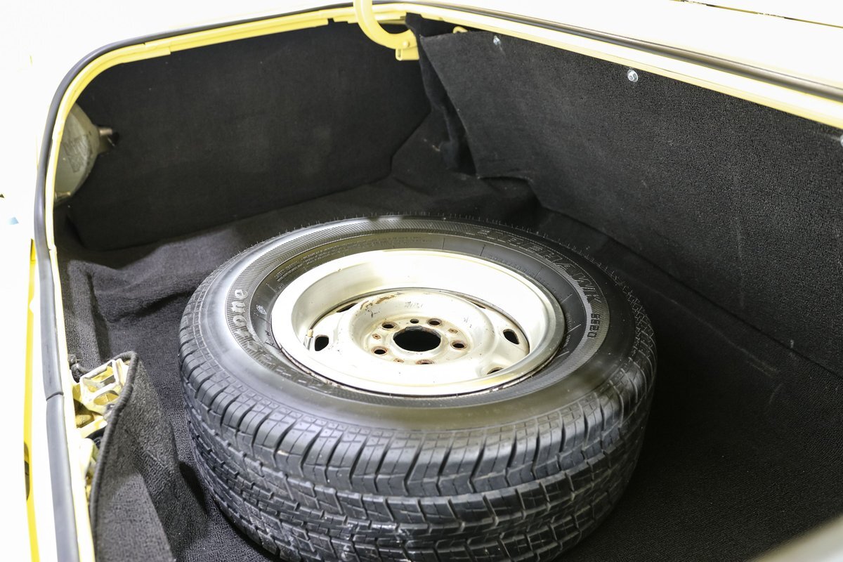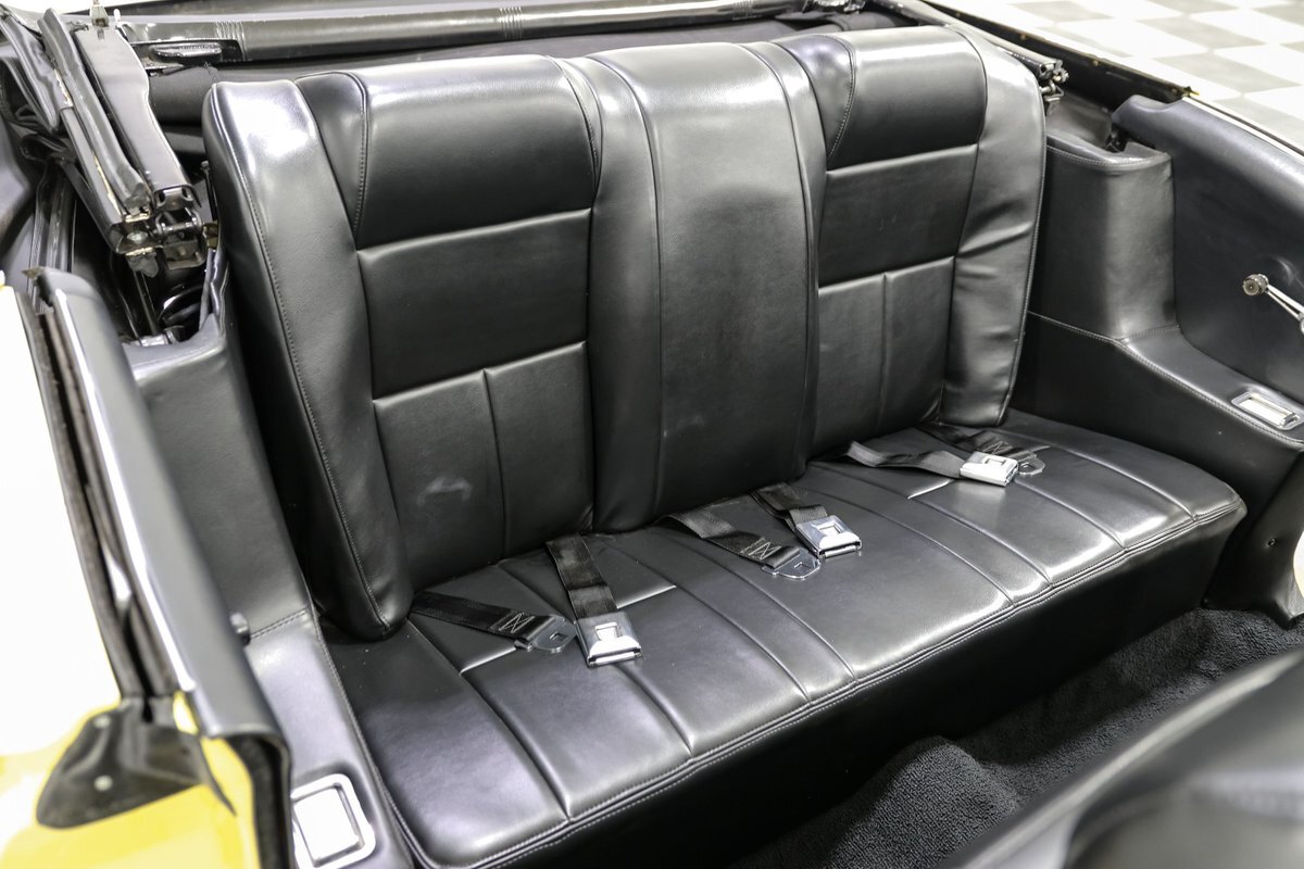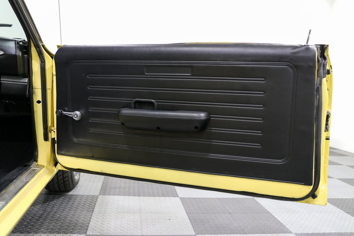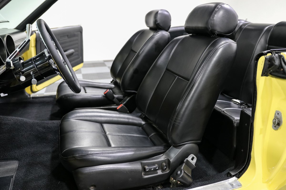 Inside, the aftermarket bucket seats provide a comfortable and stylish upgrade from the original setup, while the billet shifter on the column and billet steering wheel add a touch of modern flair. The tilt steering column and power seats ensure a customizable and comfortable driving position. The Black vinyl interior contrasts beautifully with the Yellow exterior, creating a striking visual appeal.
