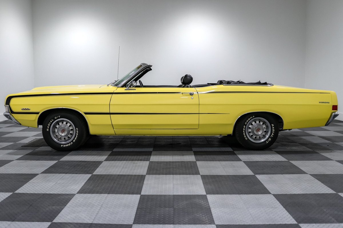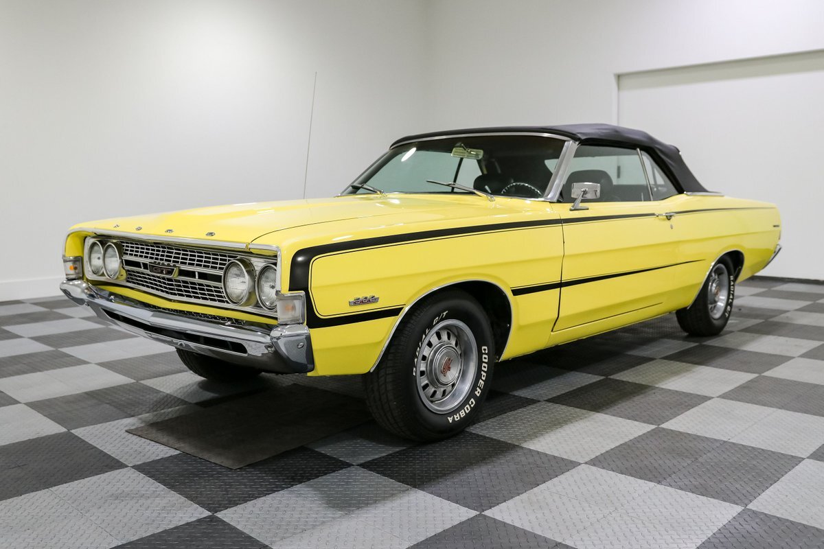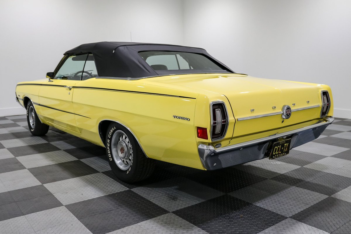 Get ready to turn heads with this iconic 1968 Ford Torino Convertible, a vibrant piece of muscle car history that perfectly captures the spirit of the late 1960s. Painted in a striking Yellow, this Torino stands out with its sleek Black vinyl interior and sporty GT side stripes. Under the hood, a robust 302 V8 engine, paired with a smooth C-4 automatic transmission, promises a driving experience that's both powerful and exhilarating.