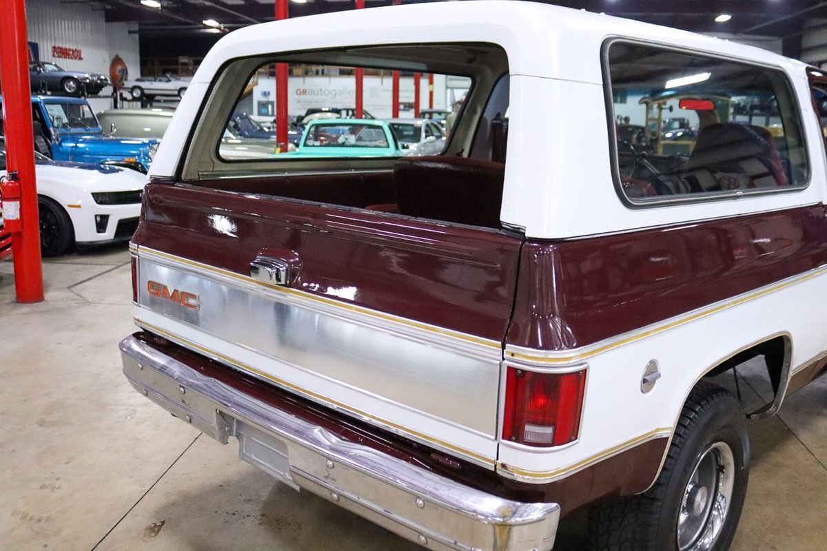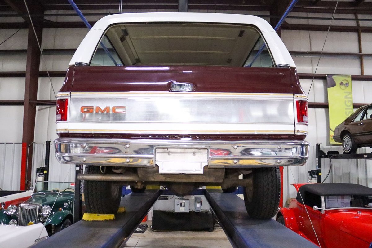 Offered here is a highly original 1977 GMC Jimmy High Sierra that is a blast to drive and gets plenty of looks. Some of the factory options according to the trim tag includes; soft ray tint glass, chrome bumpers, 31 gallon fuel tank, tilt wheel, front bucket seats, 15in wheels, 350 V8, removable hardtop, two tone paint and A/C. Also has the factory original AM radio with CB setup. The awesome Mahagony and Frost paint shows very nice.