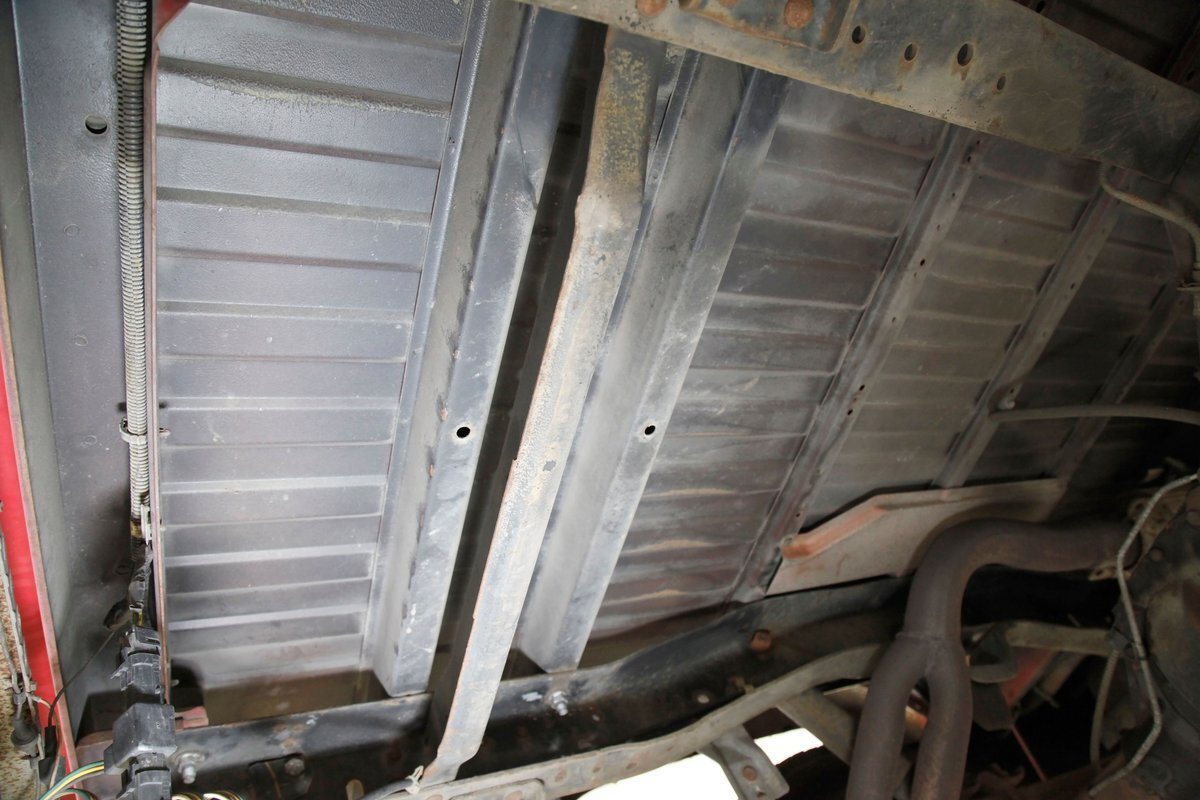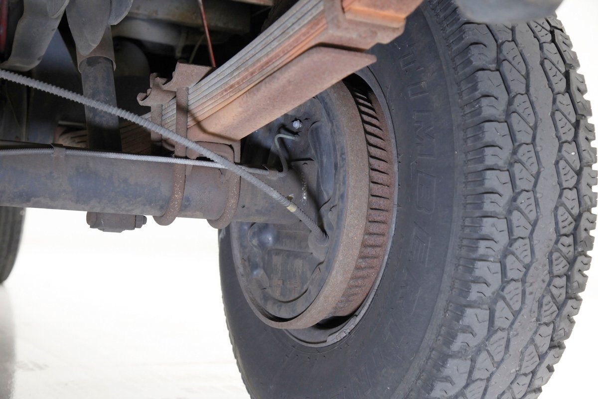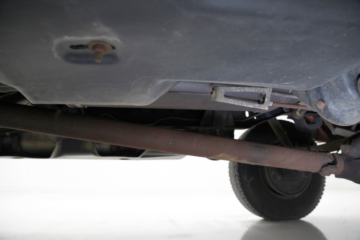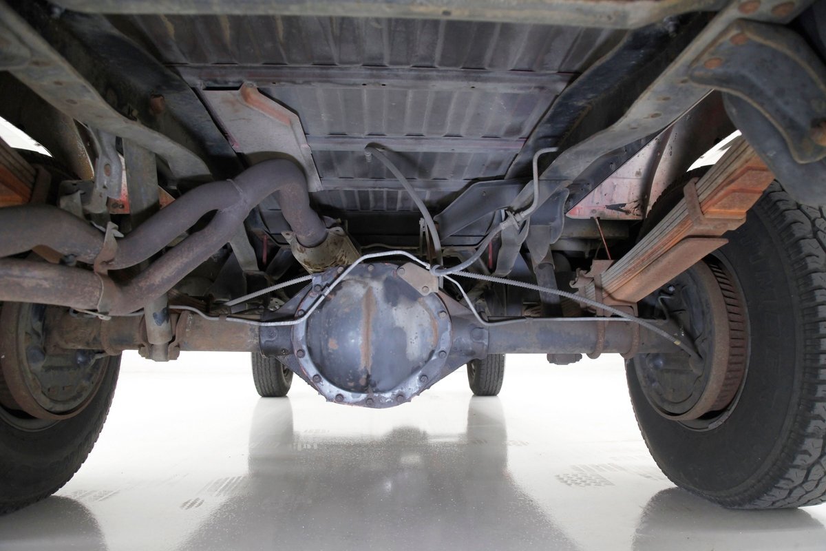 Not to be outdone by the topside, the undercarriage appears to have never seen bad weather, and presents as original. Straight rust-free steel for the flooring and frame and cab floors retain their factory undercoated finish, meanwhile light surface rust has appeared on the usual suspects. Providing the truck-like ride are leaf springs both fore and aft and power disc brakes are on front, and power drums for the rear. A lightly surface rusted stock style exhaust system is on for the exhale.