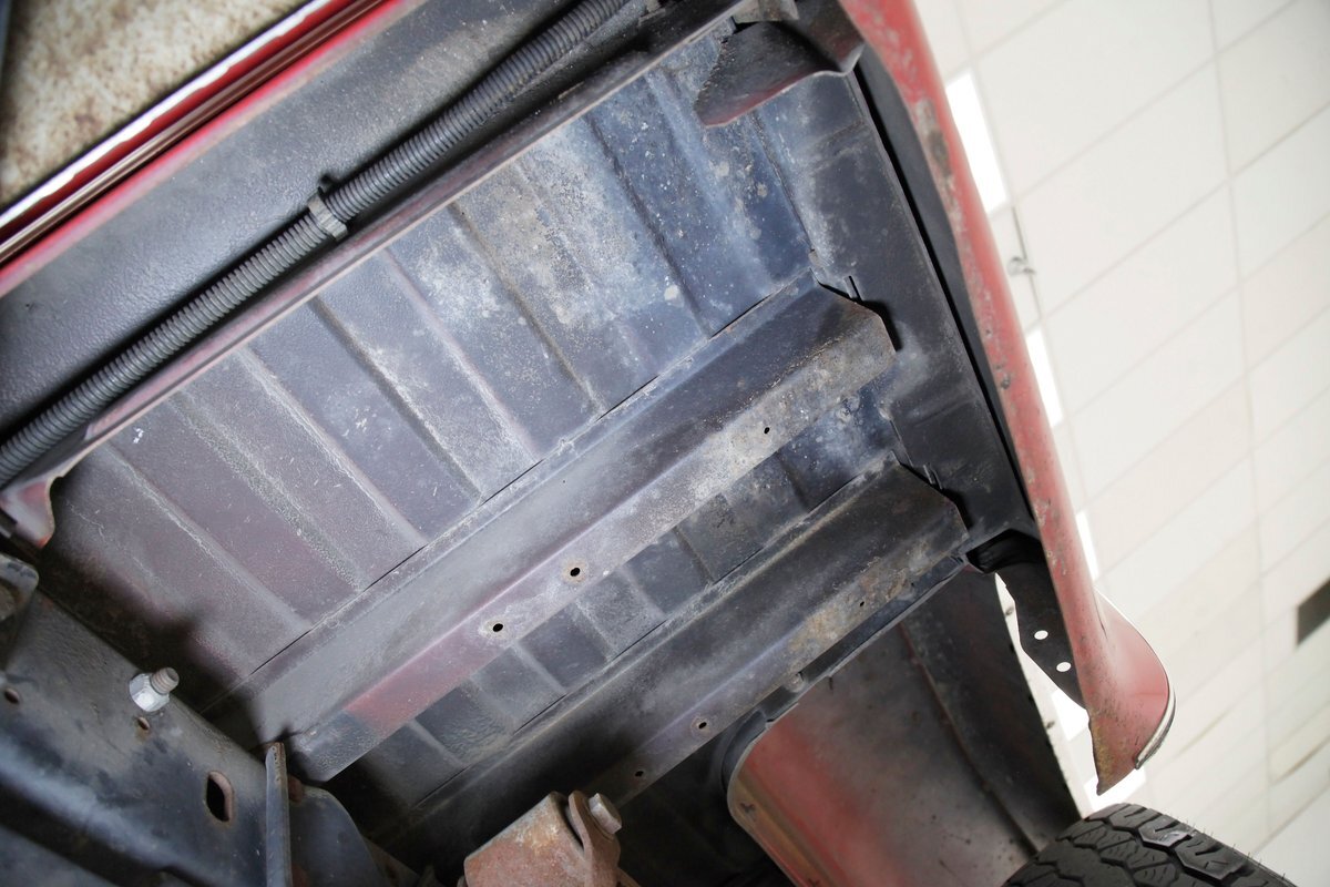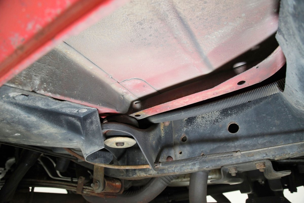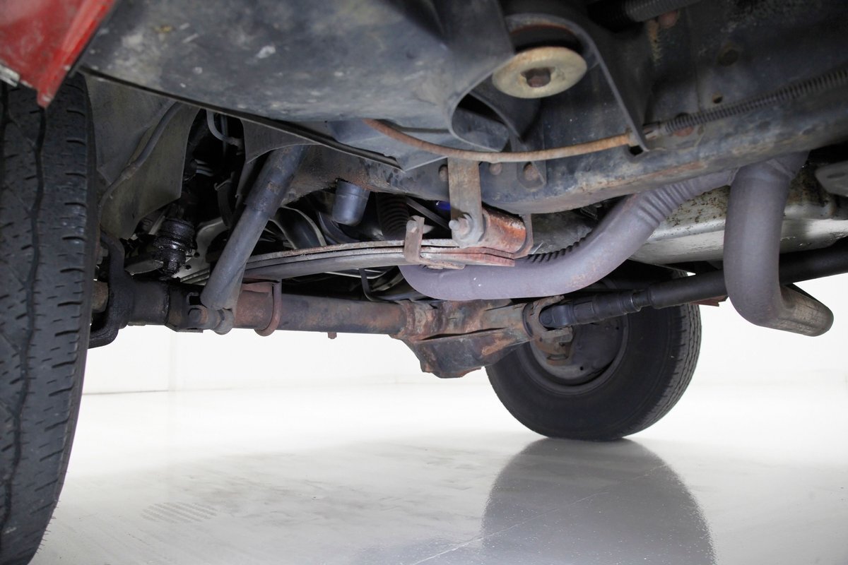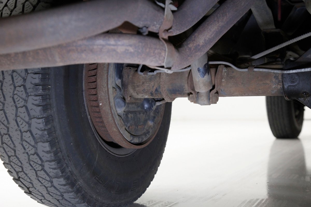 Not to be outdone by the topside, the undercarriage appears to have never seen bad weather, and presents as original. Straight rust-free steel for the flooring and frame and cab floors retain their factory undercoated finish, meanwhile light surface rust has appeared on the usual suspects. Providing the truck-like ride are leaf springs both fore and aft and power disc brakes are on front, and power drums for the rear. A lightly surface rusted stock style exhaust system is on for the exhale.