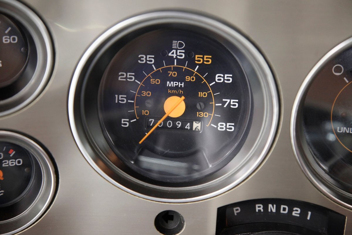 Under the hood within a clean and well-maintained engine bay is a 350ci V8 engine complete with EFI and a 700R4 4-speed automatic. 4.11 gears fill both the front and rear axles. Overall, the engine bay is free of any corroded parts and just shows some dirt and dust.
