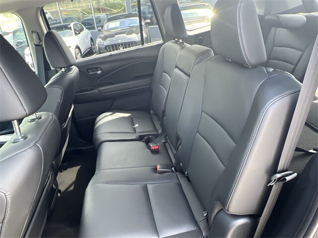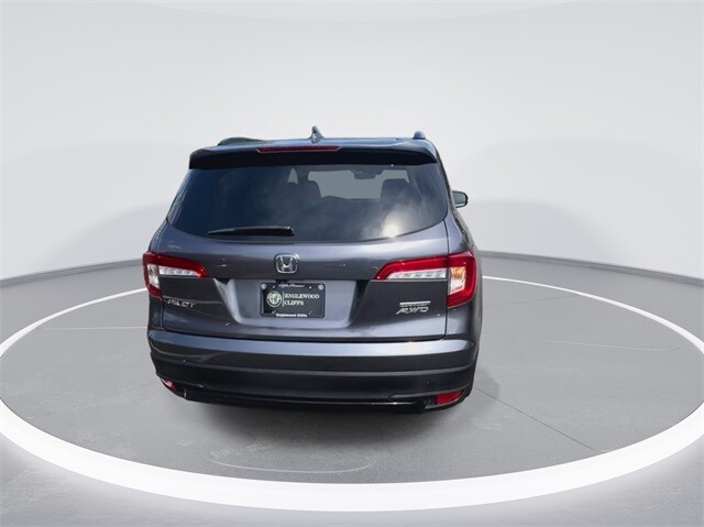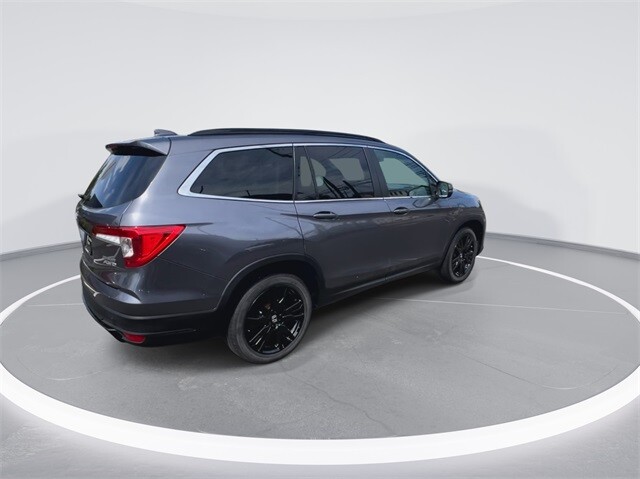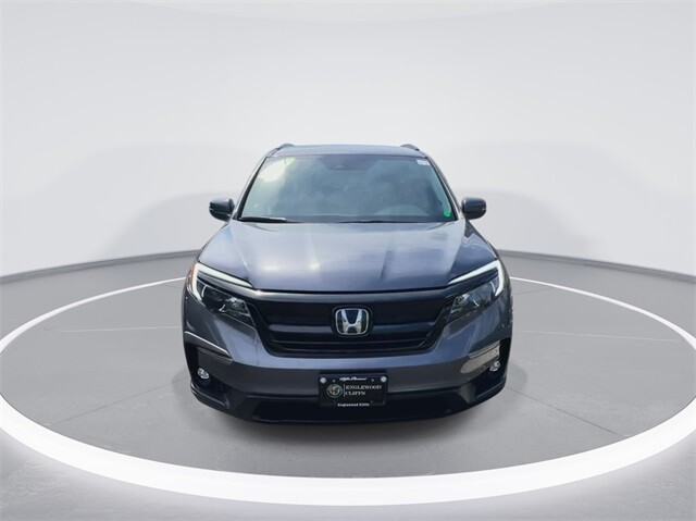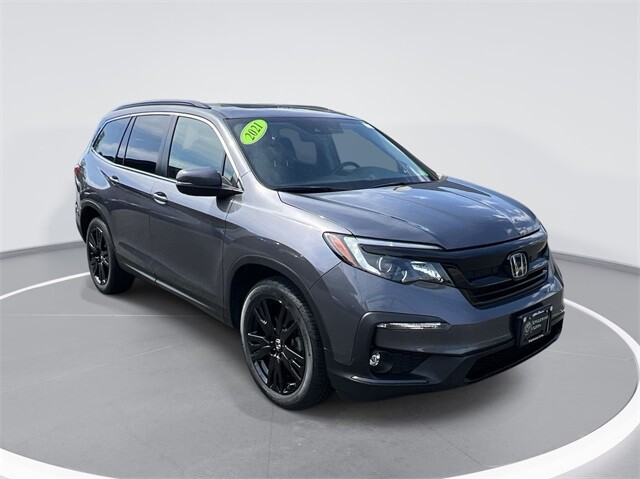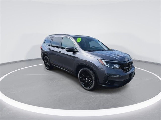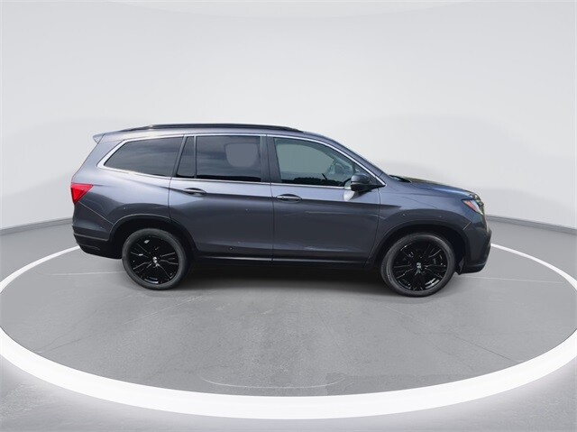 This Pilot Special Edition is nicely equipped with AWD, AM/FM radio: SiriusXM, Apple CarPlay/Android Auto, Auto High-beam Headlights, Auto-dimming Rear-View mirror, Automatic temperature control, Blind Spot Information (BSI) System warning, Brake assist, Electronic Stability Control, Exterior Parking Camera Rear, Forward collision: Collision Mitigation Braking System (CMBS) + FCW mitigation, Four wheel independent suspension, Front dual zone A/C, Fully automatic headlights, Garage door transmitter: HomeLink, Heated door mirrors, Heated Front Bucket Seats, Illuminated entry, Lane departure: Lane Keeping Assist System (LKAS) active, Memory seat, Outside temperature display, Overhead console, Panic alarm, Power door mirrors, Power driver seat, Power Liftgate, Power moonroof, Power passenger seat, Power steering, Power windows, Radio data system, Radio: 215-Watt Audio System, Rear air conditioning, Rear window defroster, Rear window wiper, Remote keyless entry, Security system, Speed control, Speed-sensing steering, Steering wheel mounted audio controls, Traction control, Turn signal indicator mirrors, 3rd row seats: split-bench, 4-Wheel Disc Brakes, 4.33 Axle Ratio, 7 Speakers, A/V remote: CabinControl, ABS brakes, Air Conditioning, Alloy wheels, Bumpers: body-color, Delay-off headlights, Driver door bin, Driver vanity mirror, Dual front impact airbags, Dual front side impact airbags, Emergency communication system: HondaLink Assist, Front anti-roll bar, Front Bucket Seats, Front Center Armrest, Front fog lights, Front reading lights, Heated front seats, Leather Seat Trim, Low tire pressure warning, Occupant sensing airbag, Overhead airbag, Passenger door bin, Passenger vanity mirror, Rear anti-roll bar, Rear reading lights, Rear seat center armrest, Reclining 3rd row seat, Roof rack: rails only, Speed-Sensitive Wipers, Split folding rear seat, Spoiler, Tachometer, Telescoping steering wheel, Tilt steering wheel, Trip computer, Variably intermittent wipers, and Wheels: 20 Exclusive Black-Painted Alloy.
