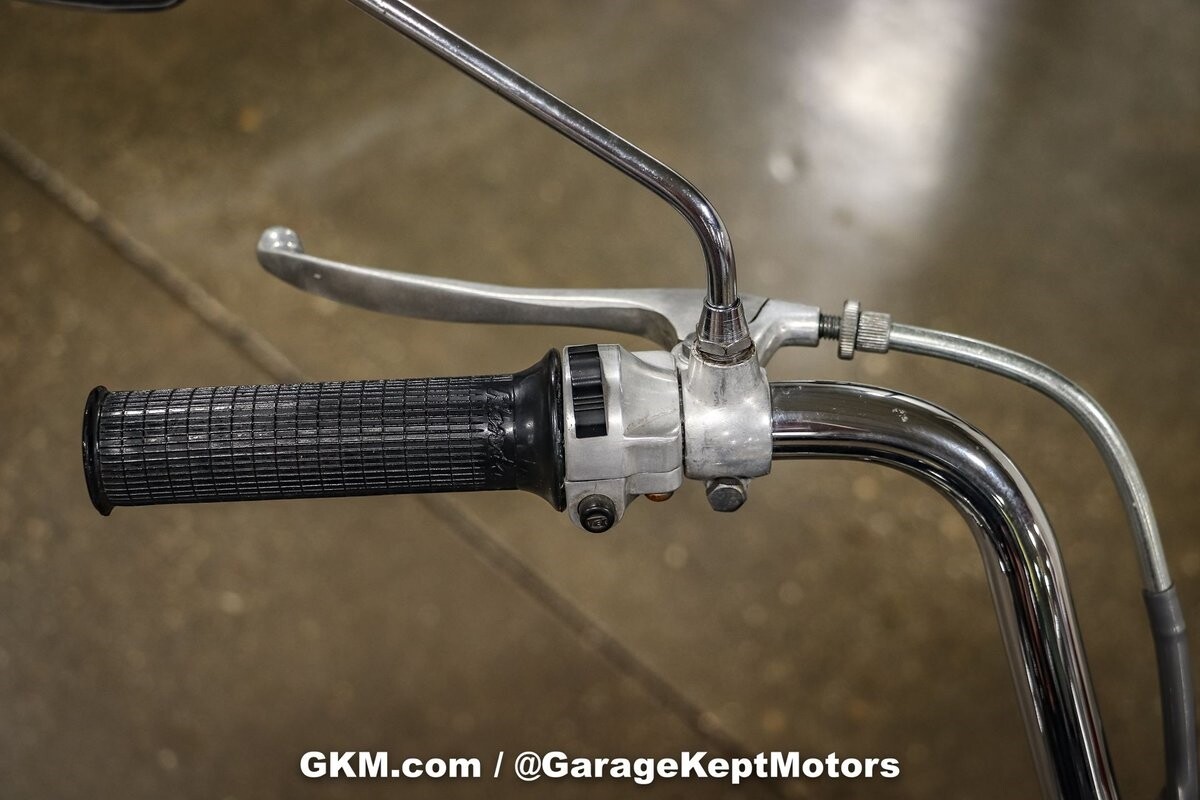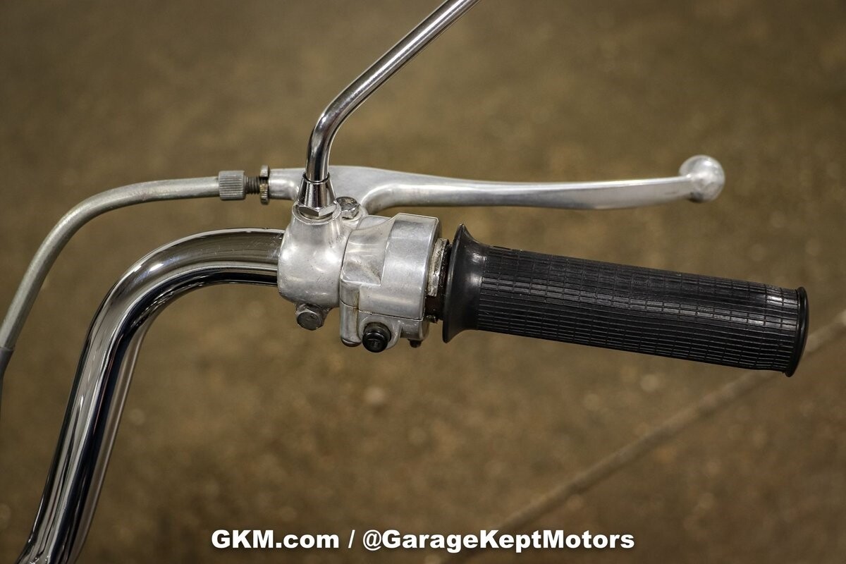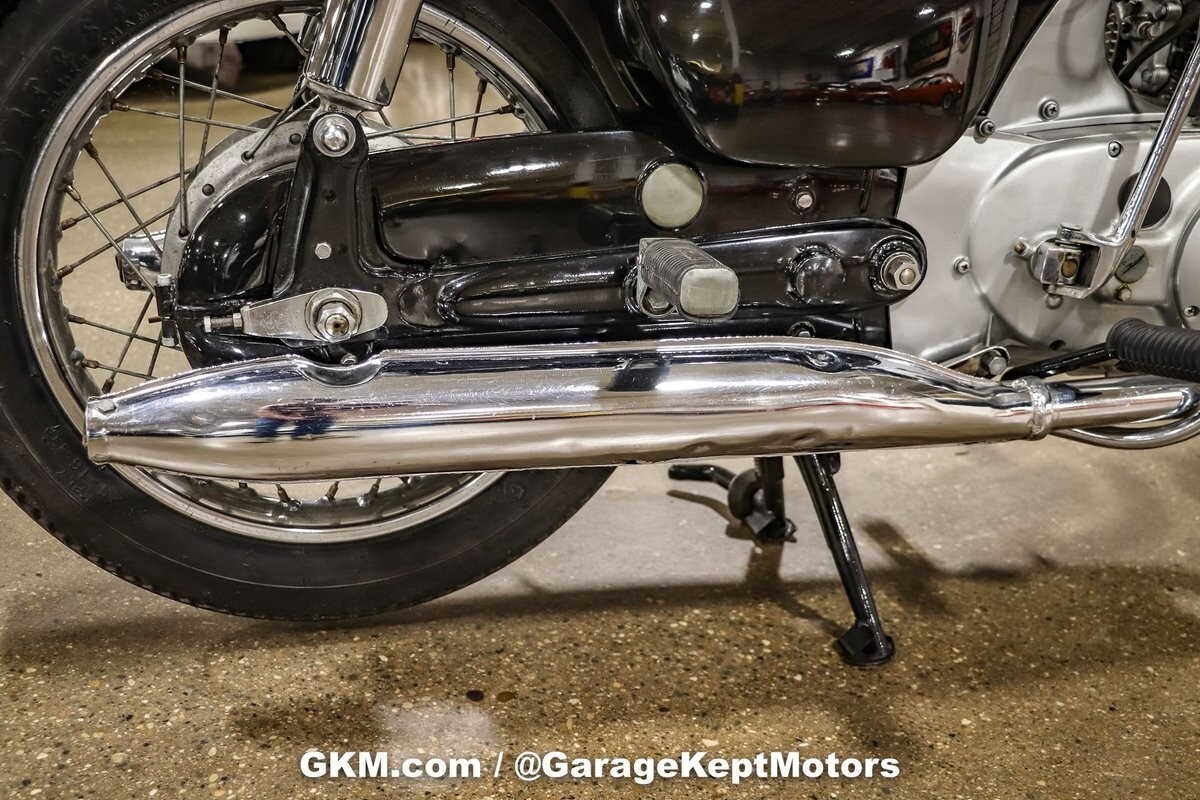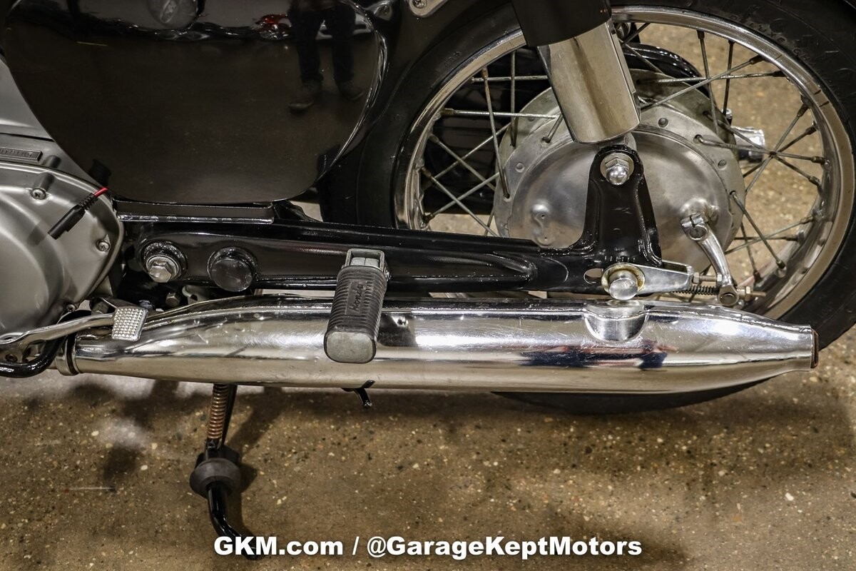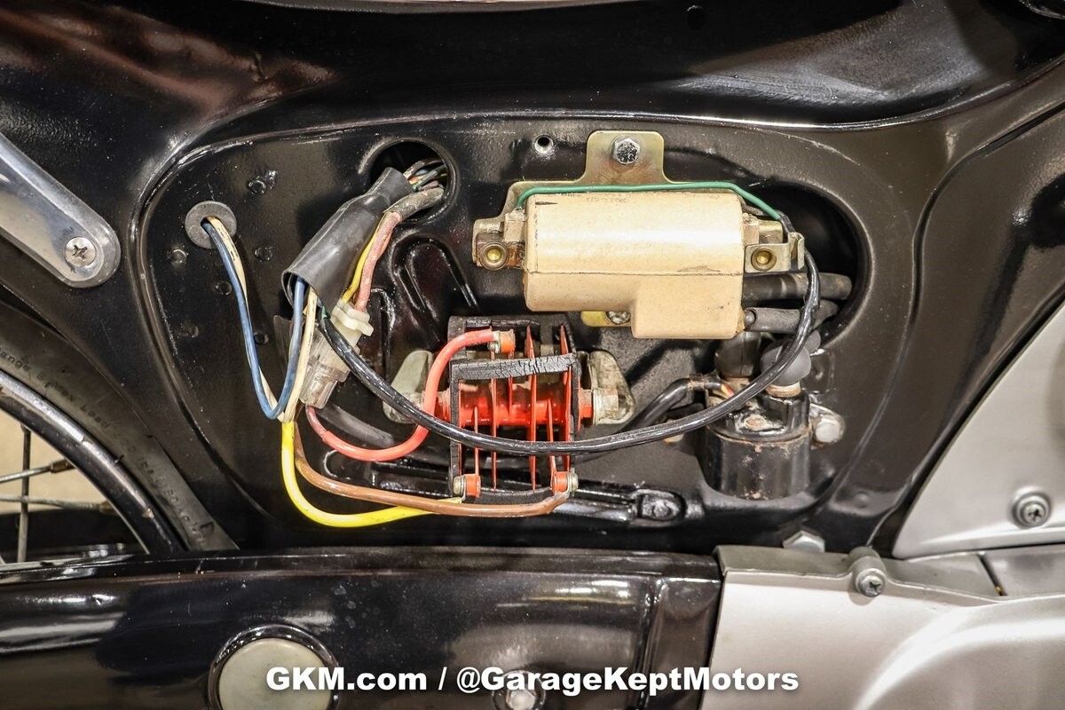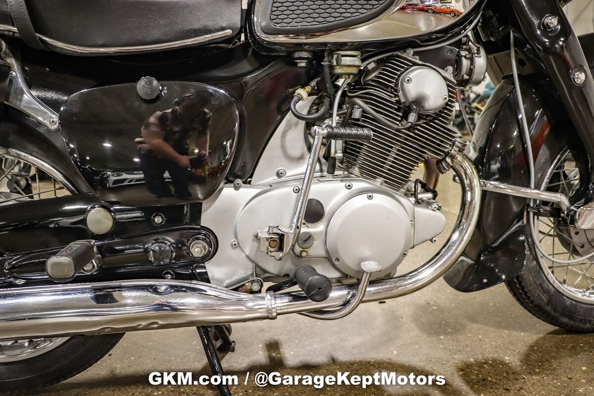 This motorcycle has been lightly restored and is largely in original condition and a very clean vintage motorcycle, originally from California with 27,000 miles on it. It is powered by a 305cc air-cooled OHC parallel twin-cylinder engine that is factory rated at 23hp @ 7,500rpm. Weighing just 350lbs this bike accelerates quickly to a top speed of 90mph. The lightweight of this motorcycle is due to a frame made up of metal stampings welded together to create the frame, headstock and rear bumper which integrates the motor acting as a stressed member. The front forks are also made of stamp steeled and utilize a leading-link front fork suspension which provides a soft ride. This unique construction also gives this bike its unique look along with its squared off headlight.