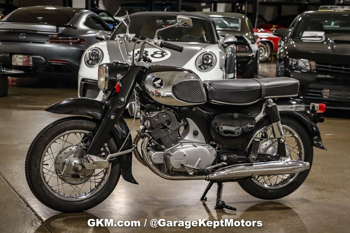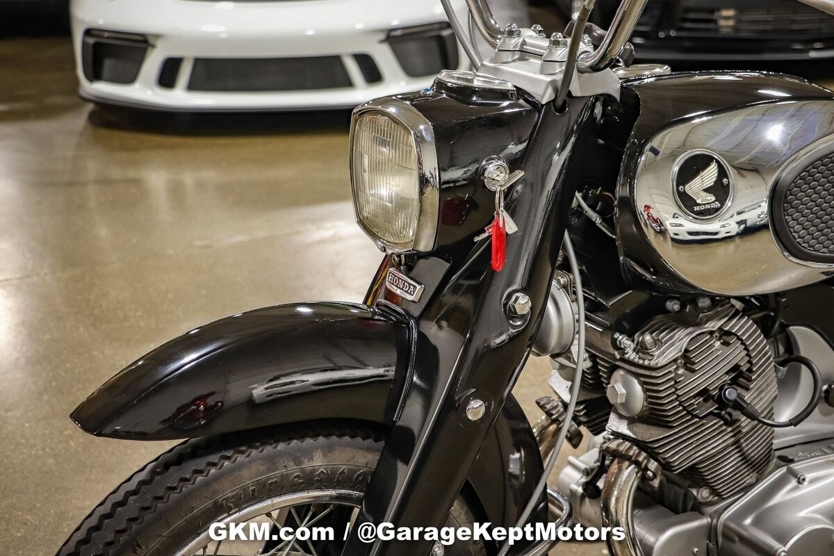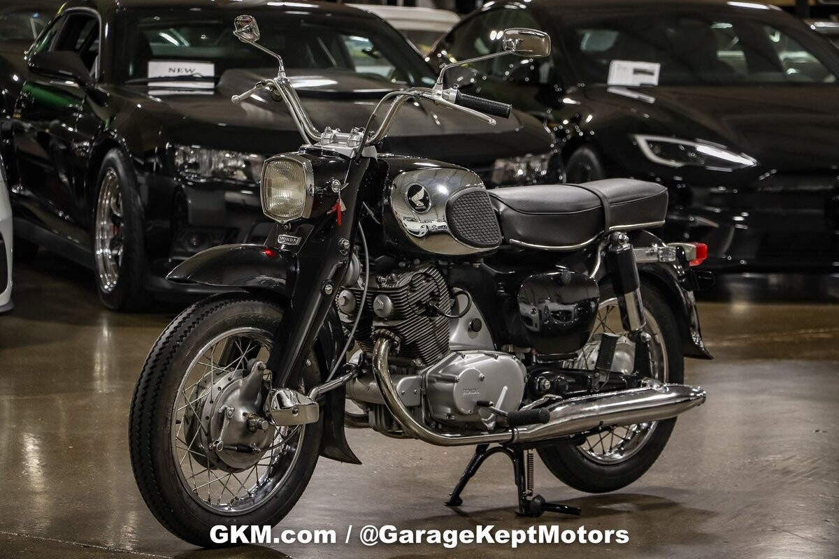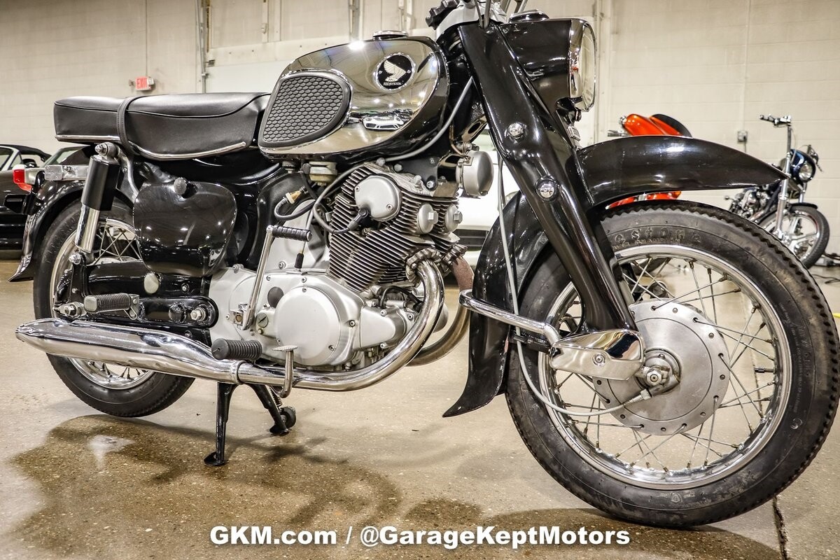 Soichiro Honda started out building mopeds after the end of World War II. Wildly popular, Soichiro soon grew his business producing his first D-type motorcycle in the early 1950's. These D-type motorcycles were built with a rigid pressed-steel frame and telescopic forks heavily influenced by BMW motorcycles of the 1930's. In 1955 Honda toured various European Motorcycle manufacturers studying their production facilities and processes and the design of their bikes. Once home, Soichiro who was a remarkable engineer, used the information he gathered on his trip to transform his moped business into one of the world's leading motorcycle companies. Honda created a new generation of lightweight, yet sturdy framed bikes utilizing a free revving twin-cylinder OHC design motor that was both fast and responsive, featuring electric starters and did not leak oil. Honda's designs transformed the industry making the Honda name a worldwide brand. Featured here for sale is a 1966 Honda Dream 305.