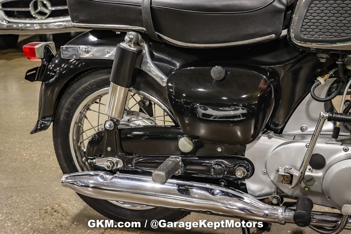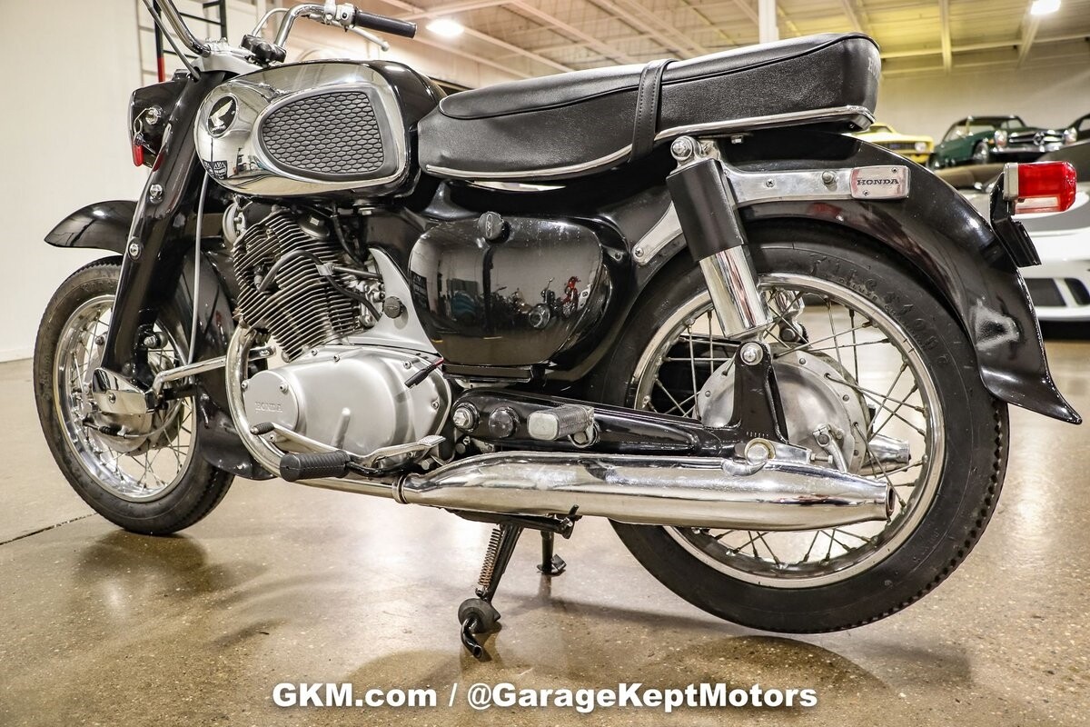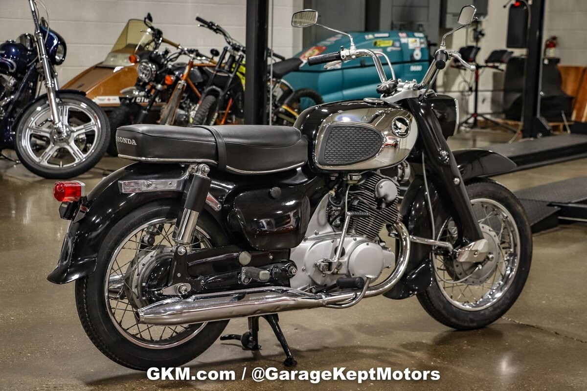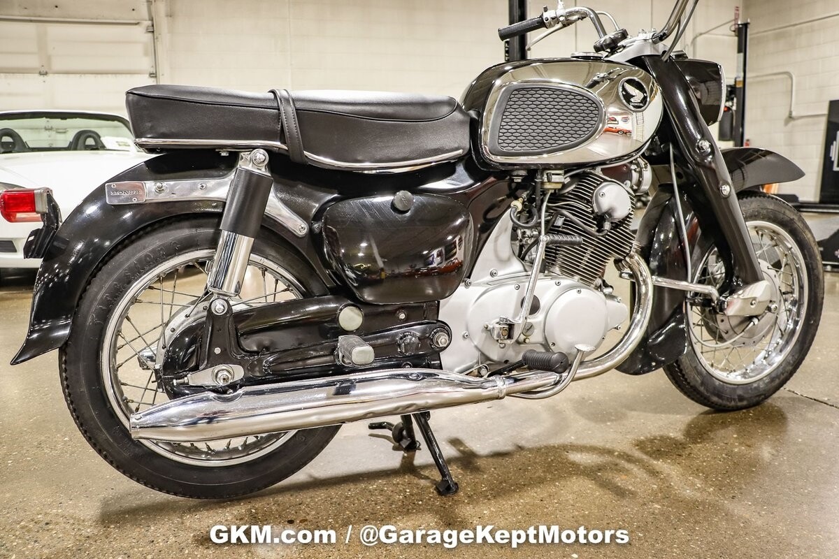 Soichiro Honda started out building mopeds after the end of World War II. Wildly popular, Soichiro soon grew his business producing his first D-type motorcycle in the early 1950's. These D-type motorcycles were built with a rigid pressed-steel frame and telescopic forks heavily influenced by BMW motorcycles of the 1930's. In 1955 Honda toured various European Motorcycle manufacturers studying their production facilities and processes and the design of their bikes. Once home, Soichiro who was a remarkable engineer, used the information he gathered on his trip to transform his moped business into one of the world's leading motorcycle companies. Honda created a new generation of lightweight, yet sturdy framed bikes utilizing a free revving twin-cylinder OHC design motor that was both fast and responsive, featuring electric starters and did not leak oil. Honda's designs transformed the industry making the Honda name a worldwide brand. Featured here for sale is a 1966 Honda Dream 305.