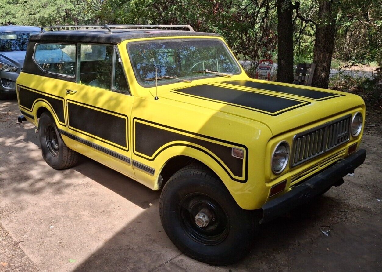 Auctions take time, money, and effort, only bid if you fully intend to complete the sale. This is a 1974 scout ii with some nice features and options. It has the 304 v-8, Dual exhaust, Auto Transmission, 4 wheel drive, power steering, power disc brakes, removable top with roof rack. The engine has a new carburetor, air filter, intake manifold gaskets, valve cover gaskets, oil pan gasket, fuel pump, radiator hose, spark plugs, wires, etc. There is also a new fuel tank/sender/lines/gas cap installed. The transmission is a 727 Torque flight, rebuilt recently with rebuilt torque converter. Brakes have all new hoses, new master, and wheel cylinders. the rear diff has a new 3.27 ring and pinion that matches the front diff with DANA 44 axles front and rear. IH lock-o-matics lock the front wheels when in 4 wheel drive, activated by a factory pull knob on the dash, which is functional. All 4 tires are new, 31x10.5 inch, with steel wheels rounding out the look. The interior has newly recovered 60/40 front bench, and bench rear seats, new ignition switch/key tumbler/turn signal switch. The exterior has recent paint in close to original yellow, black stripes, new windshield and windshield seal, new wiper blades, new door seals. The body is in above average condition, in my opinion, it appears to have spent most, if not all of its life in north Texas. floors look to be original and solid! The scout starts, runs, and stops well for an old truck! It has not been driven far, or fast because of the long expired tags. It is over 50 years old, it is not a new Toyota! It may need final details worked out. Scout was originally an A/C car, but most of it has been removed. Missing jack, unknown number of previous owners. Odometer shows around 53k miles, might be original, but have not attempted to verify either way. Fresh Texas title in hand. Be sure to have the funds and approval of any significant other before bidding. You are bidding to own the truck, not the right of first refusal. Deposit is due at the end of the auction and is non-refundable. buyer is responsible for shipping. I can take video and send to interested parties as well. Feel free to ask questions or set up a time to come see it and I will do my best to accommodate you. Thanks for looking!