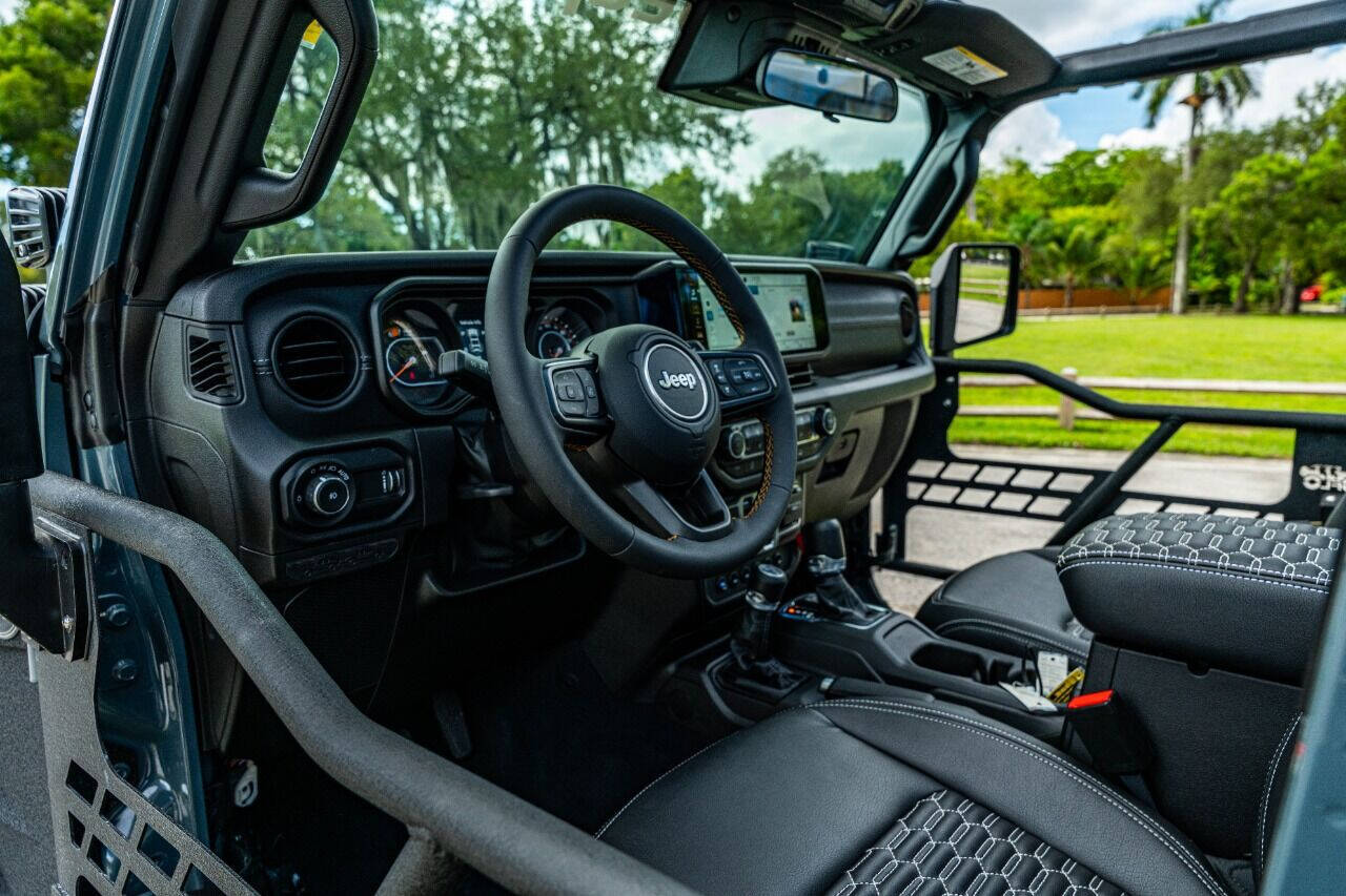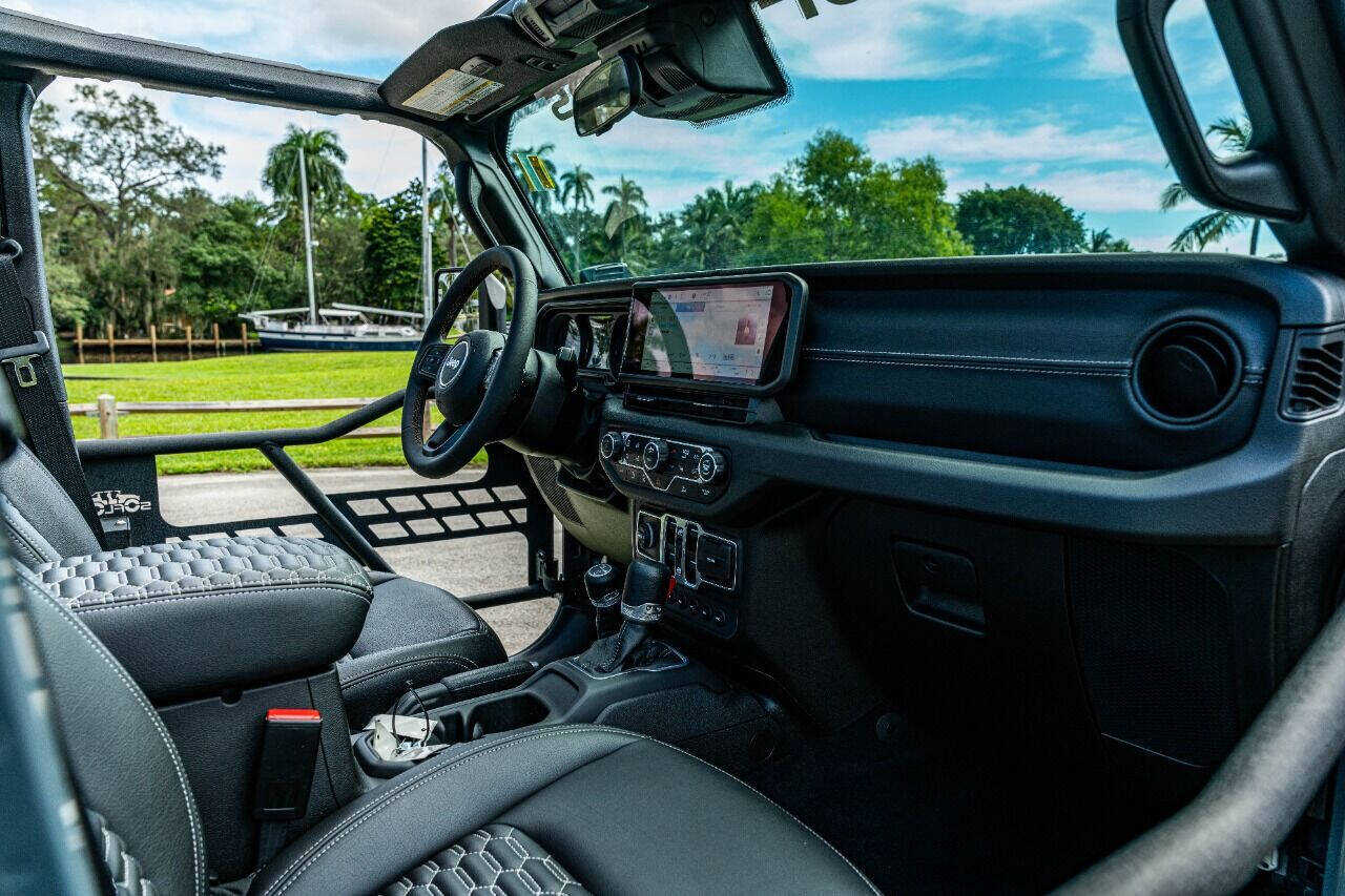 YEAR: 2024 Jeep Wrangler Willys 4xE COLOR: High Gloss Anvil (Rare Color) TRIM: SoFlo Lifted Custom Wrangler ROOF: Hardtop LIFT: 3.5” TIRES: 37 RIMS: 22 silver APOC HOOD: Raider Front and Rear Soflo Gen 1 Fenders Black Kevlar Cladding SIDESTEPS: Steel Side Steps A PILLAR: Double Stack Cube Light Brackets HEADLIGHTS: 9 RGB Halo Color Changing REAR BUMPER: Steel w DRINGS WEATHERPROOF INTERIOR: black with dark grey contrast stitch WHAT MAKES THIS TRUCK SPECIAL: This 2024 4xE comes with the big horizontal infotainment screen and several awesome SoFlo Customs add-ons that create the ultimate off road and on road vehicle. Light up the road around you with the LED aftermarket add ons included in this awesome build. A hybrid Jeep with all the Looks. CALL US OR COME SEE THESE CUSTOM TRUCKS IN PERSON Location 1: 1430 W Broward, BLVD Fort Lauderdale, FL 33312 855-873-7632 Location 2: 2720 Okeechobee BLVD West Palm Beach, FL 33406 855-873-7632 NEW E-PURCHASE SYSTEM - Customers never have to leave the comfort of their home couch to purchase a SoFlo Jeeps or Apocalypse 6x6 truck. We offer online payment, financing and video walkarounds. We ship our trucks worldwide to any and every location. Have a trade-in? Not a problem at all, as WE ACCEPT TRADE-INS NATIONWIDE AND YOU NEVER PAY TO SHIP IT. We make buying and receiving your dream truck beyond simple. ****ALL PIPE DOORS ARE EXTRA AND NOT INCLUDED IN PRICE OF THE TRUCK****