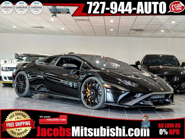 ***1 OWNER CLEAN CARFAX REPORT******NERO NOCTIS BLACK EXTERIOR WITH NERO COSMUS/ARANCIO ORANGE INTERIOR******631HP 5.2L V10 ENGINE WITH 7 SPEED AUTOMATED TRANSMISSION RWD******MAINTENANCE 3 YEAR PACKAGE FROM LAMBORGHINI******FRONT LIFTING SYSTEM******HEK 20 INCH FORGED CENTERLOCK WHEELS******TRAVEL PACKAGE******BI COLOR SPORT SEATS******SPORTIVO STO TRIM******CCMR BRAKE CALIPERS IN ARANCIO ORANGE******SEAT BELTS IN ARANCIO ORANGE***CARFAX One-Owner. Clean CARFAX. 2D Coupe, 5.2L V10, 7-Speed Manual, RWD, Nero Noctis Metallic, Nero Cosmus/Arancio Dryope w/Sportivo Alcantara Bicolor Seat Trim, 12V Plug w/Lighter, 4 Speakers, 4-Wheel Disc Brakes, ABS brakes, Adaptive suspension, Air Conditioning, Alloy wheels, AM/FM radio, Apple CarPlay/Android Auto, Auto-dimming Rear-View mirror, Automatic temperature control, CCMR Orange Brake Calipers, Central Lock in Black, Ceramic disc brakes: front and rear, Cup Holder & Ash Tray, Digital Audio Broadcasting (DAB), Driver vanity mirror, Dual front impact airbags, Dual front side impact airbags, Electronic Stability Control, Exterior Parking Camera Rear, Floor Mats in Aluminum, Four wheel independent suspension, Front anti-roll bar, Front Bucket Seats, Front Center Armrest, Front dual zone A/C, Front reading lights, Fully automatic headlights, Garage door transmitter, Headlight cleaning, Heated door mirrors, Illuminated entry, Lamborghini Smartphone Interface, Lifting System, Low tire pressure warning, Navigation System, Occupant sensing airbag, Outside temperature display, Passenger vanity mirror, Power door mirrors, Power steering, Power windows, Radio data system, Radio: Lamborghini Touch-Screen Infotainment System, Rear anti-roll bar, Remote keyless entry, Seat Belts - Arancio Leonis, Speed-sensing steering, Spoiler, Sport Seats, Sport steering wheel, Sportivo Alcantara Bicolor Seat Trim, Tachometer, Telescoping steering wheel, Tilt steering wheel, Traction control, Travel Nets, Travel Package, Trip computer, Variably intermittent wipers, Voltmeter, Wheels: 20 x 8.5J Fr & 20 x 11J Rr Matt Black.Nero Noctis Metallic 2023 Lamborghini Huracan STO RWD 5.2L V10Odometer is 774 miles below market average!Here at Jacobs Mitsubishi our goal is to make you a customer for life. We want you to have the most enjoyable car buying experience possible . All prices displayed do not include additional accessories or fees and costs of closing including any government, additional packages applied to vehicle, including but not limited to Jacobs Care, Reconditioning fees,federal, dealer fees, taxes, registration, dealer document, cost of accessories, emissions testing, or any other fees. All prices, specifications and availability are subject to change at any time, without notice. Not all applicants will be approved, offers may change at any time and may not reflect accuracy online, see dealer for most updated offers. Not all offers can be combined. Applicant may qualify for partial discount displayed by financing with another approved lender through and provided by Jacobs Mitsubishi. Contact dealer for most current information, availability, or details.