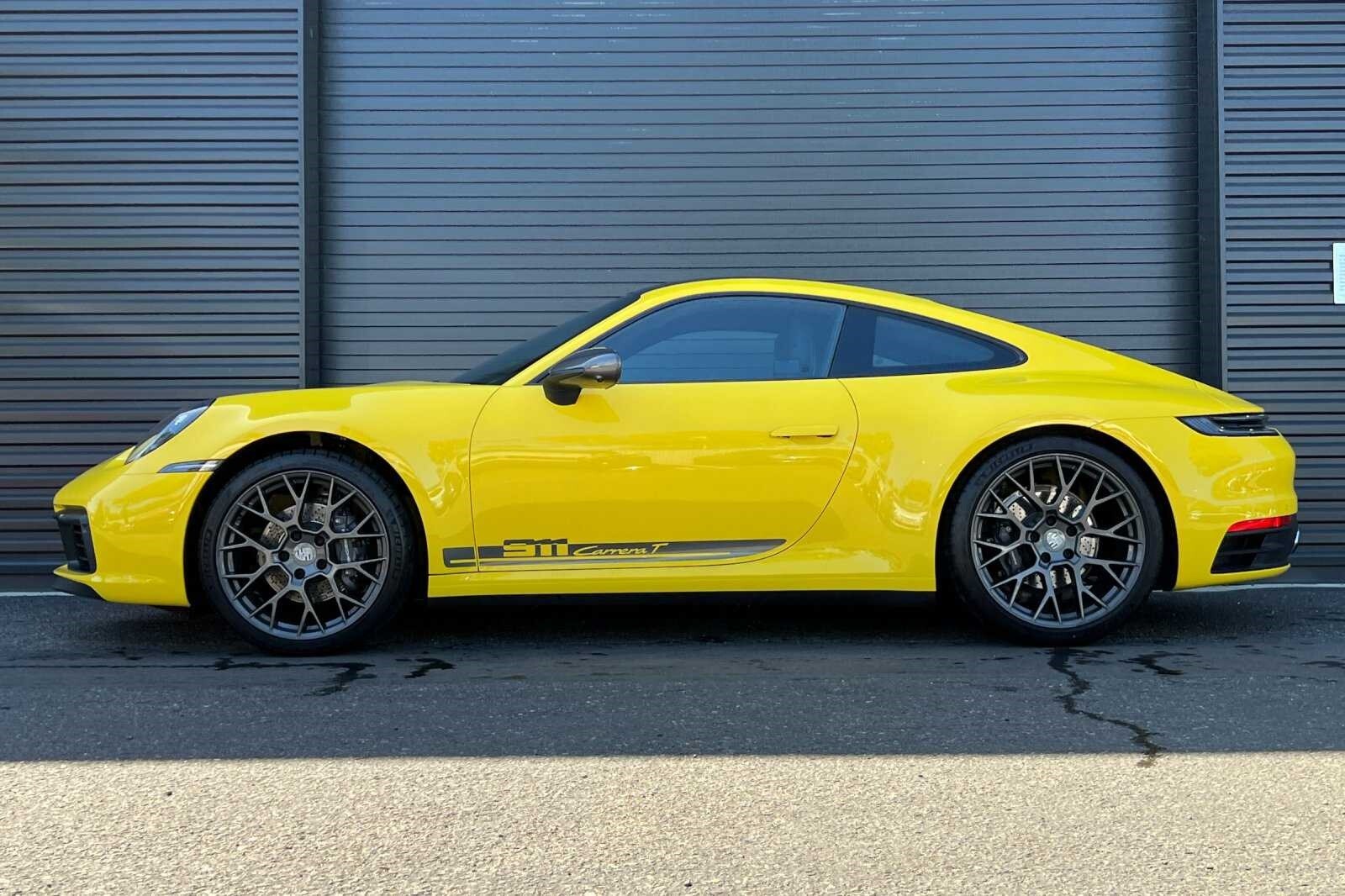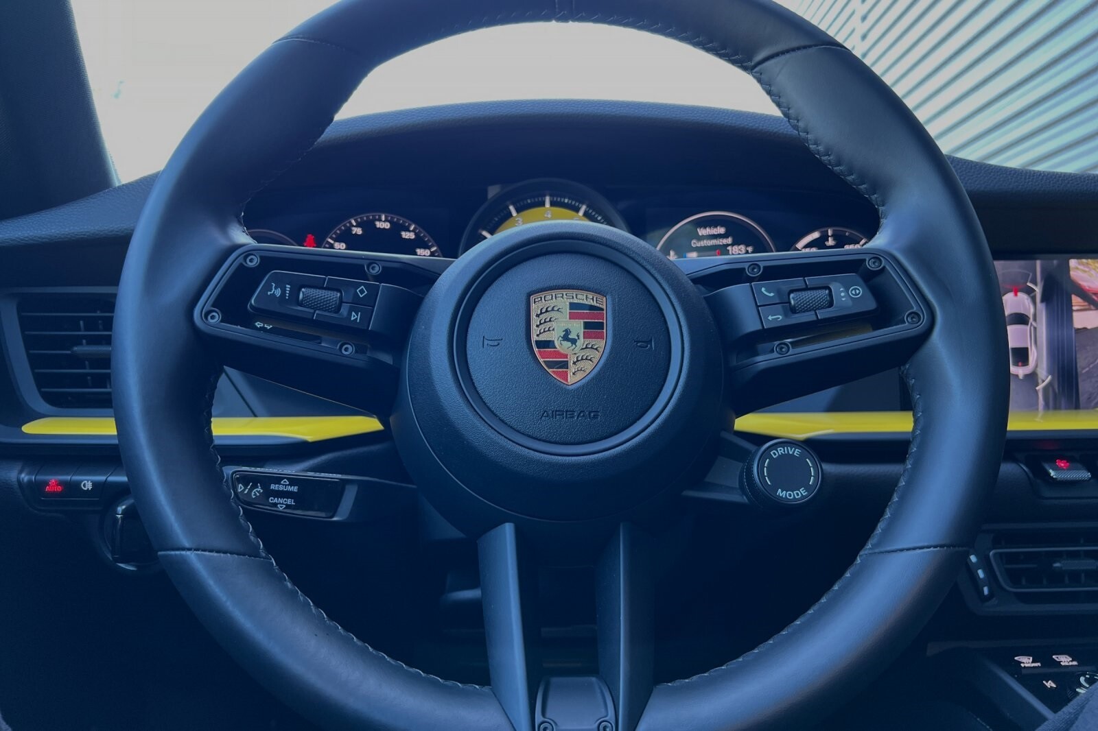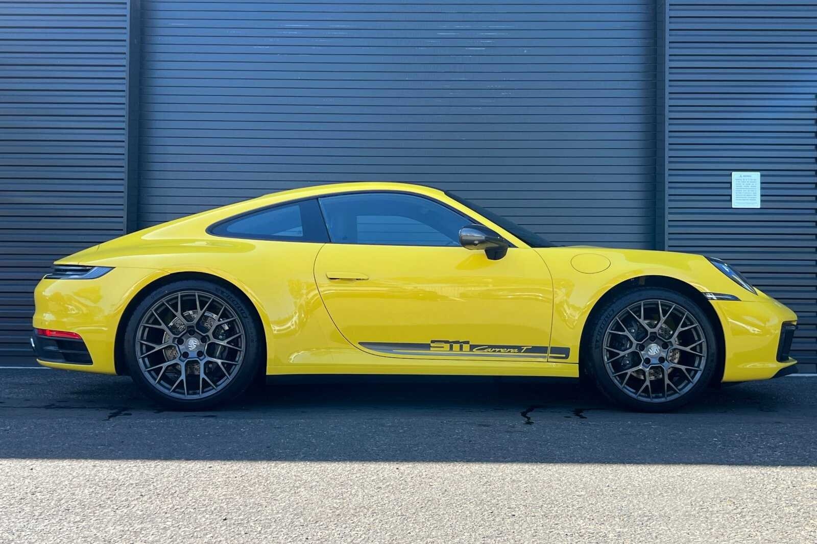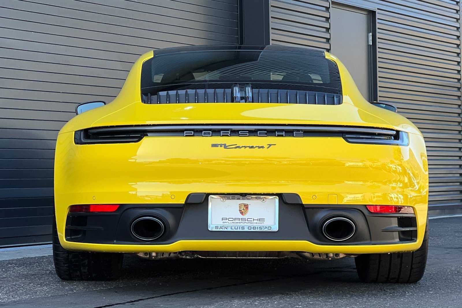 This Porsche San Luis Obispo 2023 Racing Yellow Porsche 911 Carrera T is well equipped and includes these features and benefits: Porsche Approved Certified Pre-Owned Certified, 23.7 Gal. Extended Range Fuel Tank, Electric Slide/Tilt Sunroof in Glass, Interior Trim Inlays in Exterior Color, Power Steering Plus, Rear Axle Steering, Seat Belts in Racing Yellow, Sport Chrono Stopwatch Dial in Racing Yellow, Surround View, Wheels: 20 Front/21 Rear RS Spyder Design, 4-Wheel Disc Brakes, 8 Speakers, ABS brakes, Adaptive suspension, Air Conditioning, Alloy wheels, Auto-dimming door mirrors, Auto-dimming Rear-View mirror, Automatic temperature control, Brake assist, Bumpers: body-color, Delay-off headlights, Driver door bin, Driver vanity mirror, Dual front impact airbags, Dual front side impact airbags, Electronic Stability Control, Exterior Parking Camera Rear, Four wheel independent suspension, Front anti-roll bar, Front Bucket Seats, Front Center Armrest, Front dual zone A/C, Front reading lights, Fully automatic headlights, Garage door transmitter: HomeLink, Heated door mirrors, Heated front seats, Illuminated entry, Leather steering wheel, Low tire pressure warning, Navigation system: Porsche Communication Management (PCM), Occupant sensing airbag, Outside temperature display, Overhead airbag, Overhead console, Passenger door bin, Passenger vanity mirror, Porsche Communication Management, Power door mirrors, Power driver seat, Power passenger seat, Power steering, Power windows, Radio data system, Rain sensing wipers, Rear anti-roll bar, Rear fog lights, Rear window defroster, Remote keyless entry, Security system, Speed control, Spoiler, Sport steering wheel, Steering wheel mounted audio controls, Tachometer, Telescoping steering wheel, Tilt steering wheel, Traction control, Trip computer, and Variably intermittent wipers. 360 Camera, Active Parking Assist, Adaptive Cruise Control, Adaptive Headlights, Android Auto, Apple Carplay, Automatic Headlights, Blind-Spot Monitors, Bluetooth, Collision Avoidance System, Collision Warning Alert System, Drowsiness Alert, Heads-Up Display, Heated/Cooled Seats, Keyless Access w/Push Button Start, Lane Keeping Assist, Navigation, Smartphone App Integration, Touchscreen Controls, Voice Recognition, Wi-Fi Hotspot, 23.7 Gal. Extended Range Fuel Tank, Electric Slide/Tilt Sunroof in Glass, Interior Trim Inlays in Exterior Color, Power Steering Plus, Rear Axle Steering, Seat Belts in Racing Yellow, Sport Chrono Stopwatch Dial in Racing Yellow, Surround View, Wheels: 20 Front/21 Rear RS Spyder Design.