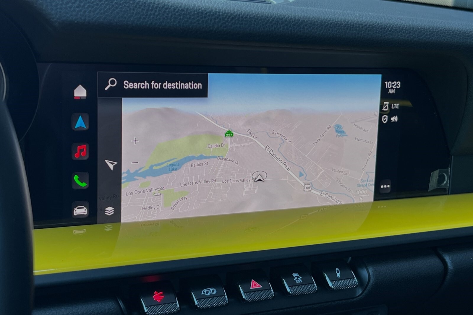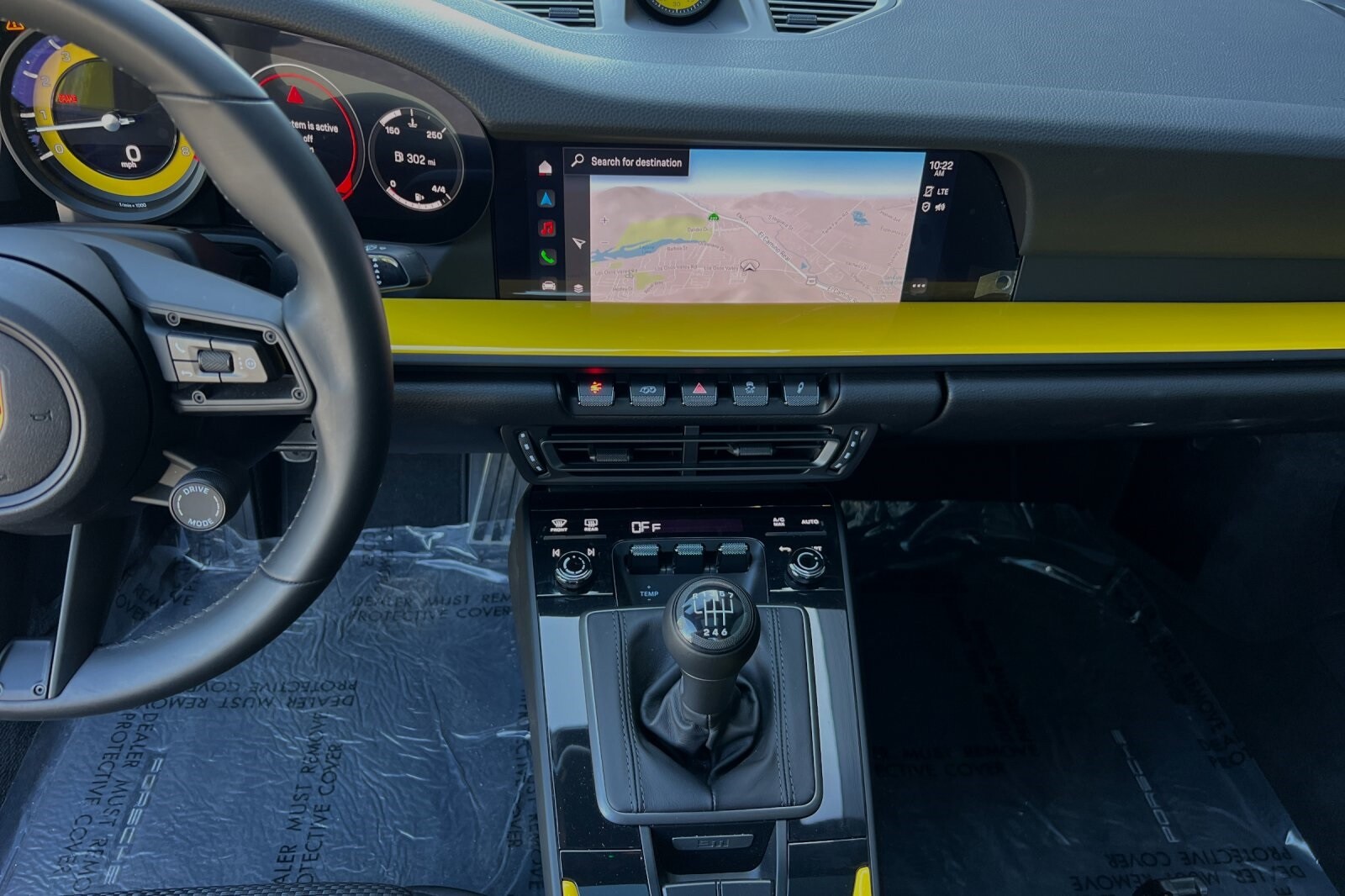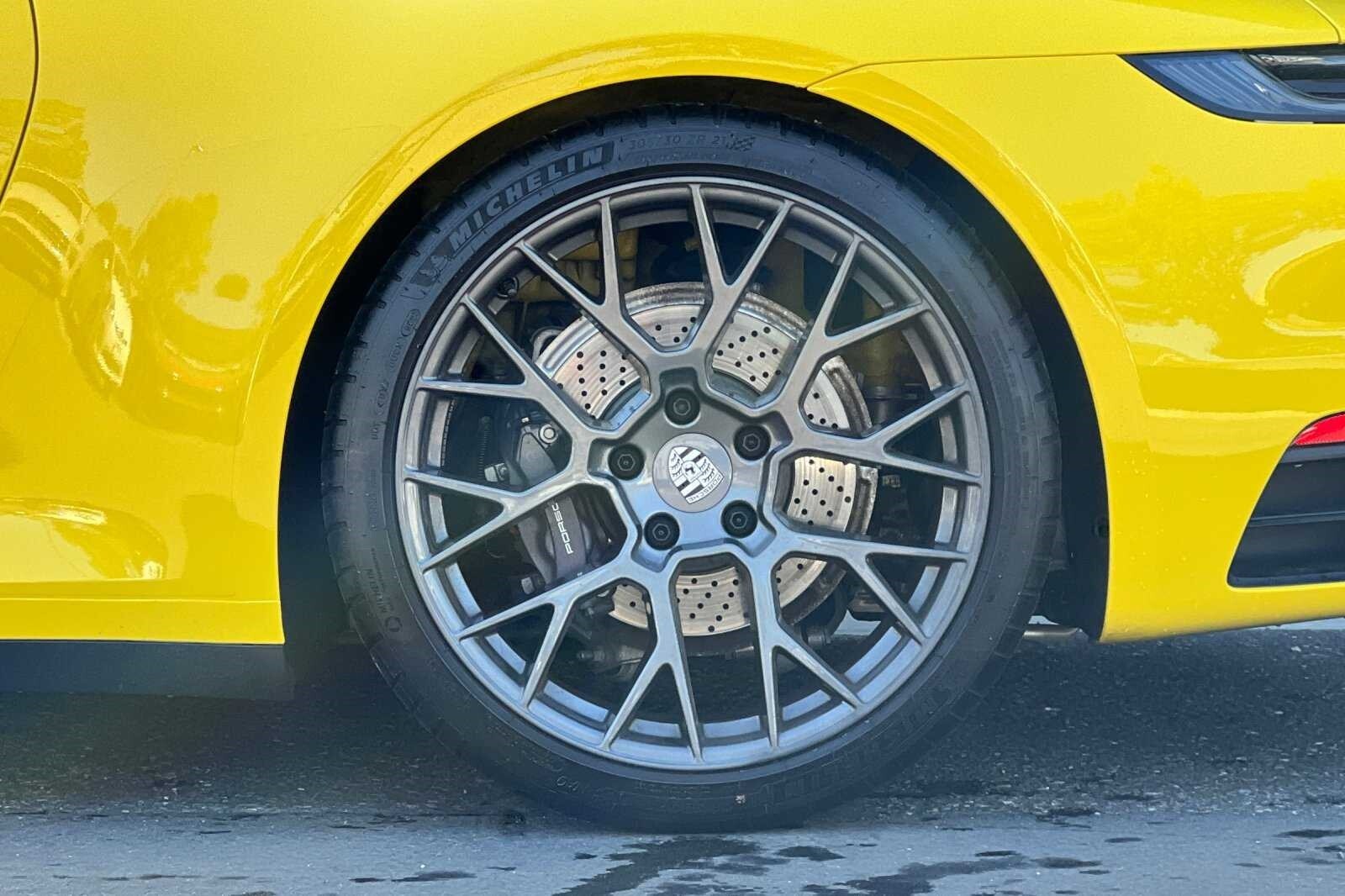 This Porsche San Luis Obispo 2023 Racing Yellow Porsche 911 Carrera T is well equipped and includes these features and benefits: Porsche Approved Certified Pre-Owned Certified, 23.7 Gal. Extended Range Fuel Tank, Electric Slide/Tilt Sunroof in Glass, Interior Trim Inlays in Exterior Color, Power Steering Plus, Rear Axle Steering, Seat Belts in Racing Yellow, Sport Chrono Stopwatch Dial in Racing Yellow, Surround View, Wheels: 20 Front/21 Rear RS Spyder Design, 4-Wheel Disc Brakes, 8 Speakers, ABS brakes, Adaptive suspension, Air Conditioning, Alloy wheels, Auto-dimming door mirrors, Auto-dimming Rear-View mirror, Automatic temperature control, Brake assist, Bumpers: body-color, Delay-off headlights, Driver door bin, Driver vanity mirror, Dual front impact airbags, Dual front side impact airbags, Electronic Stability Control, Exterior Parking Camera Rear, Four wheel independent suspension, Front anti-roll bar, Front Bucket Seats, Front Center Armrest, Front dual zone A/C, Front reading lights, Fully automatic headlights, Garage door transmitter: HomeLink, Heated door mirrors, Heated front seats, Illuminated entry, Leather steering wheel, Low tire pressure warning, Navigation system: Porsche Communication Management (PCM), Occupant sensing airbag, Outside temperature display, Overhead airbag, Overhead console, Passenger door bin, Passenger vanity mirror, Porsche Communication Management, Power door mirrors, Power driver seat, Power passenger seat, Power steering, Power windows, Radio data system, Rain sensing wipers, Rear anti-roll bar, Rear fog lights, Rear window defroster, Remote keyless entry, Security system, Speed control, Spoiler, Sport steering wheel, Steering wheel mounted audio controls, Tachometer, Telescoping steering wheel, Tilt steering wheel, Traction control, Trip computer, and Variably intermittent wipers. 360 Camera, Active Parking Assist, Adaptive Cruise Control, Adaptive Headlights, Android Auto, Apple Carplay, Automatic Headlights, Blind-Spot Monitors, Bluetooth, Collision Avoidance System, Collision Warning Alert System, Drowsiness Alert, Heads-Up Display, Heated/Cooled Seats, Keyless Access w/Push Button Start, Lane Keeping Assist, Navigation, Smartphone App Integration, Touchscreen Controls, Voice Recognition, Wi-Fi Hotspot, 23.7 Gal. Extended Range Fuel Tank, Electric Slide/Tilt Sunroof in Glass, Interior Trim Inlays in Exterior Color, Power Steering Plus, Rear Axle Steering, Seat Belts in Racing Yellow, Sport Chrono Stopwatch Dial in Racing Yellow, Surround View, Wheels: 20 Front/21 Rear RS Spyder Design.