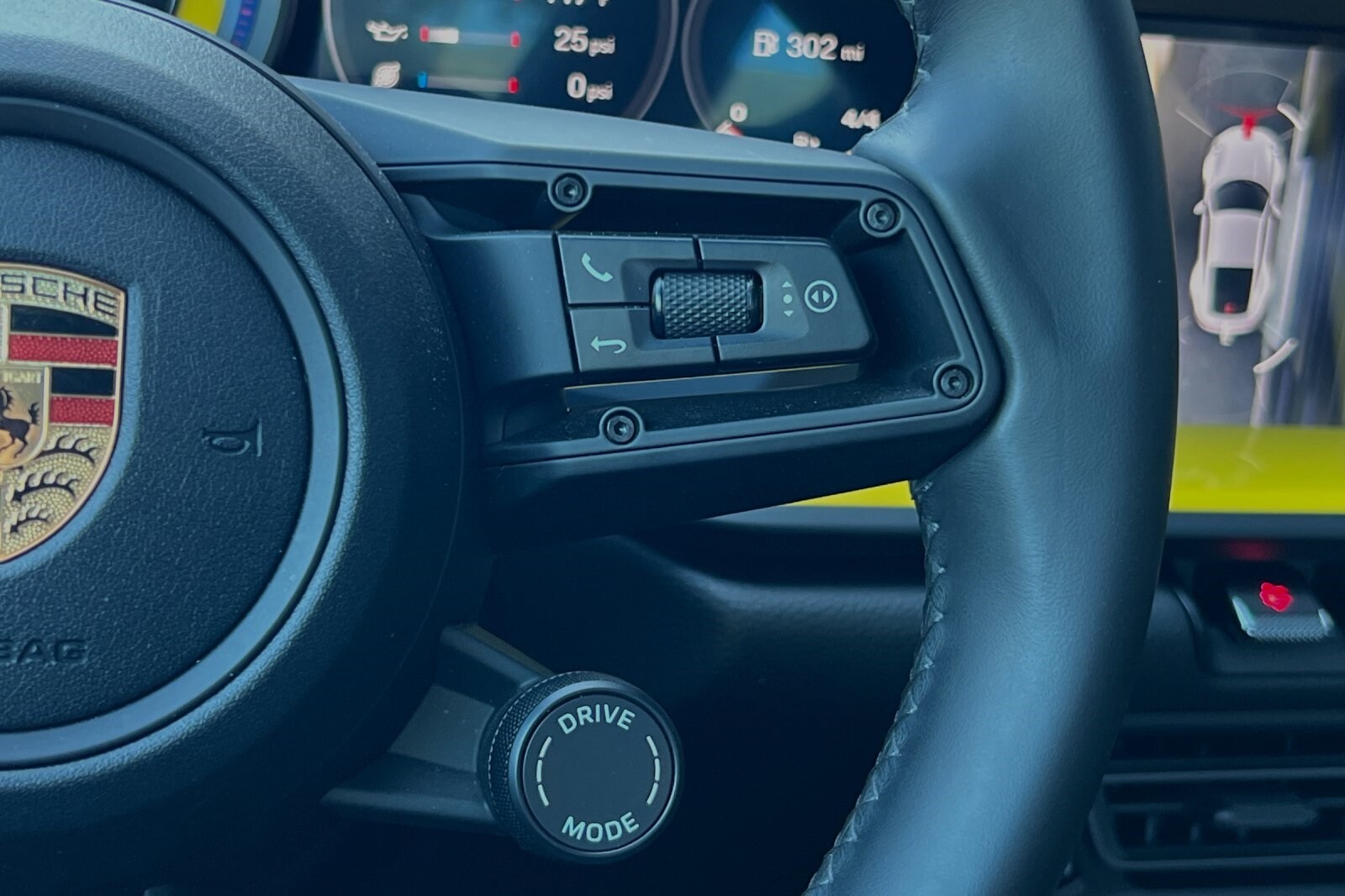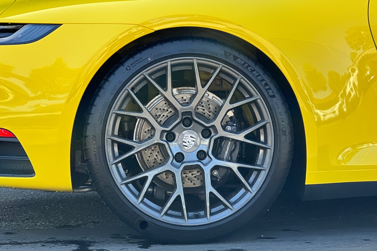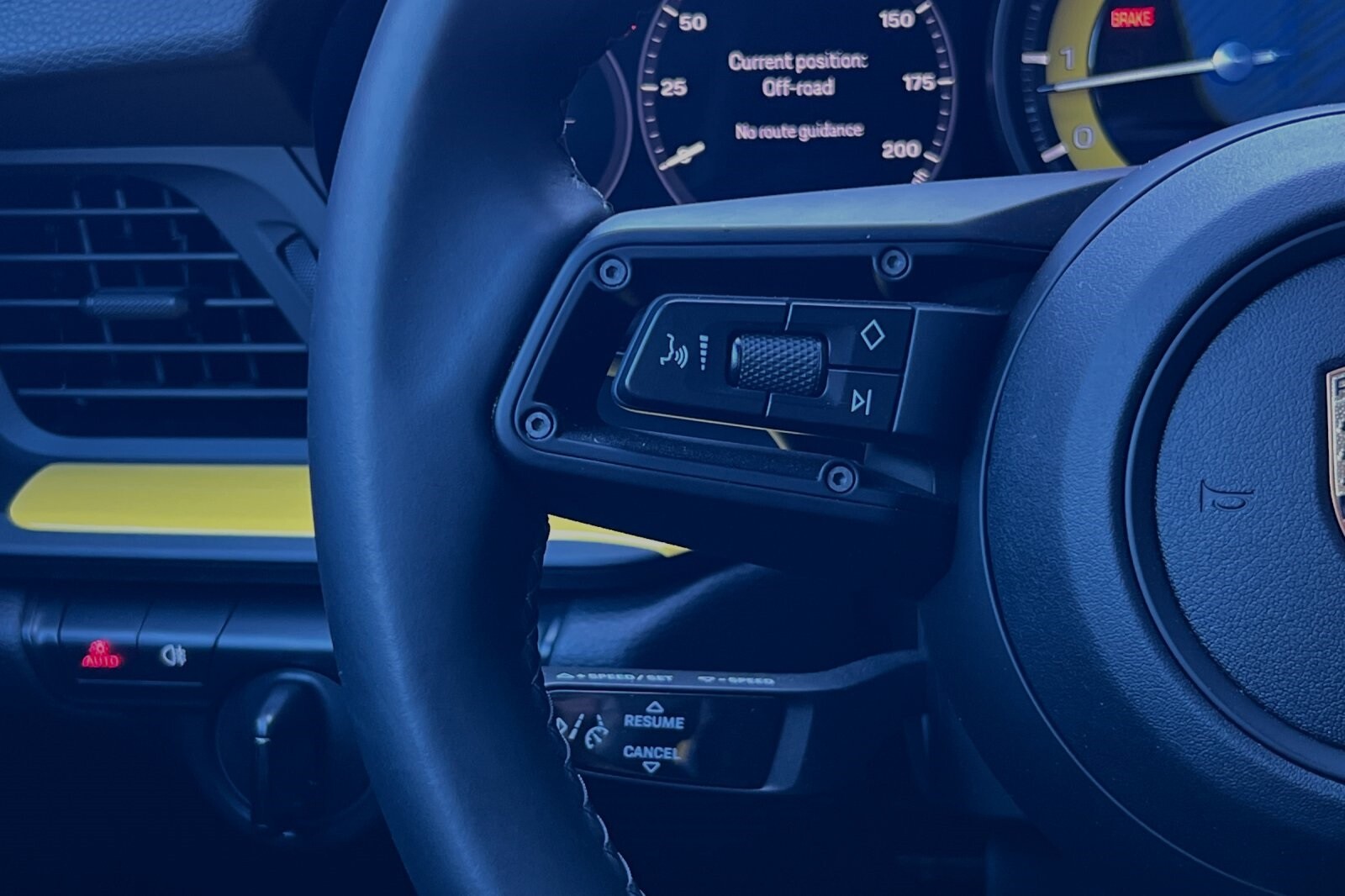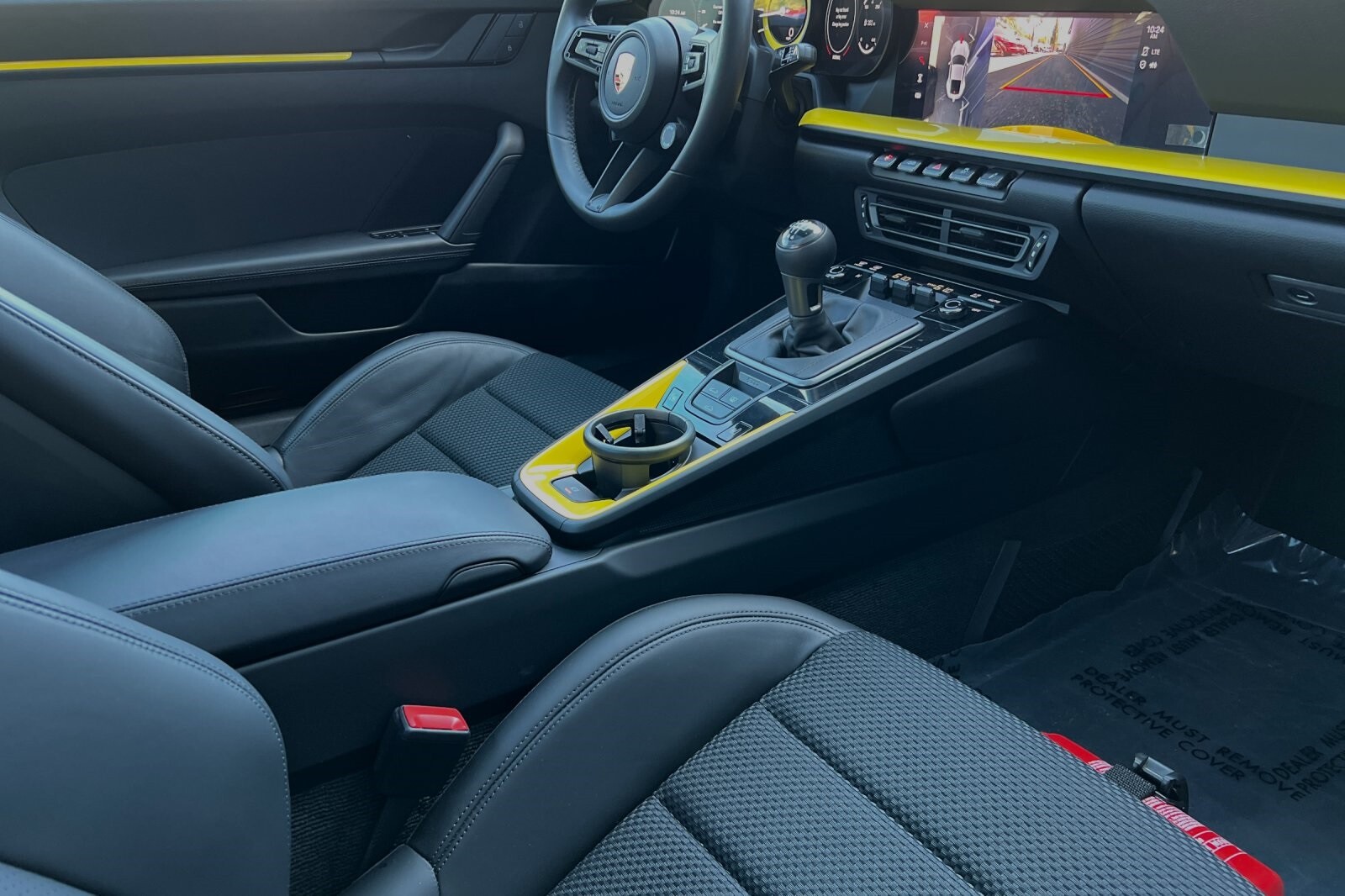 This Porsche San Luis Obispo 2023 Racing Yellow Porsche 911 Carrera T is well equipped and includes these features and benefits: Porsche Approved Certified Pre-Owned Certified, 23.7 Gal. Extended Range Fuel Tank, Electric Slide/Tilt Sunroof in Glass, Interior Trim Inlays in Exterior Color, Power Steering Plus, Rear Axle Steering, Seat Belts in Racing Yellow, Sport Chrono Stopwatch Dial in Racing Yellow, Surround View, Wheels: 20 Front/21 Rear RS Spyder Design, 4-Wheel Disc Brakes, 8 Speakers, ABS brakes, Adaptive suspension, Air Conditioning, Alloy wheels, Auto-dimming door mirrors, Auto-dimming Rear-View mirror, Automatic temperature control, Brake assist, Bumpers: body-color, Delay-off headlights, Driver door bin, Driver vanity mirror, Dual front impact airbags, Dual front side impact airbags, Electronic Stability Control, Exterior Parking Camera Rear, Four wheel independent suspension, Front anti-roll bar, Front Bucket Seats, Front Center Armrest, Front dual zone A/C, Front reading lights, Fully automatic headlights, Garage door transmitter: HomeLink, Heated door mirrors, Heated front seats, Illuminated entry, Leather steering wheel, Low tire pressure warning, Navigation system: Porsche Communication Management (PCM), Occupant sensing airbag, Outside temperature display, Overhead airbag, Overhead console, Passenger door bin, Passenger vanity mirror, Porsche Communication Management, Power door mirrors, Power driver seat, Power passenger seat, Power steering, Power windows, Radio data system, Rain sensing wipers, Rear anti-roll bar, Rear fog lights, Rear window defroster, Remote keyless entry, Security system, Speed control, Spoiler, Sport steering wheel, Steering wheel mounted audio controls, Tachometer, Telescoping steering wheel, Tilt steering wheel, Traction control, Trip computer, and Variably intermittent wipers. 360 Camera, Active Parking Assist, Adaptive Cruise Control, Adaptive Headlights, Android Auto, Apple Carplay, Automatic Headlights, Blind-Spot Monitors, Bluetooth, Collision Avoidance System, Collision Warning Alert System, Drowsiness Alert, Heads-Up Display, Heated/Cooled Seats, Keyless Access w/Push Button Start, Lane Keeping Assist, Navigation, Smartphone App Integration, Touchscreen Controls, Voice Recognition, Wi-Fi Hotspot, 23.7 Gal. Extended Range Fuel Tank, Electric Slide/Tilt Sunroof in Glass, Interior Trim Inlays in Exterior Color, Power Steering Plus, Rear Axle Steering, Seat Belts in Racing Yellow, Sport Chrono Stopwatch Dial in Racing Yellow, Surround View, Wheels: 20 Front/21 Rear RS Spyder Design.
