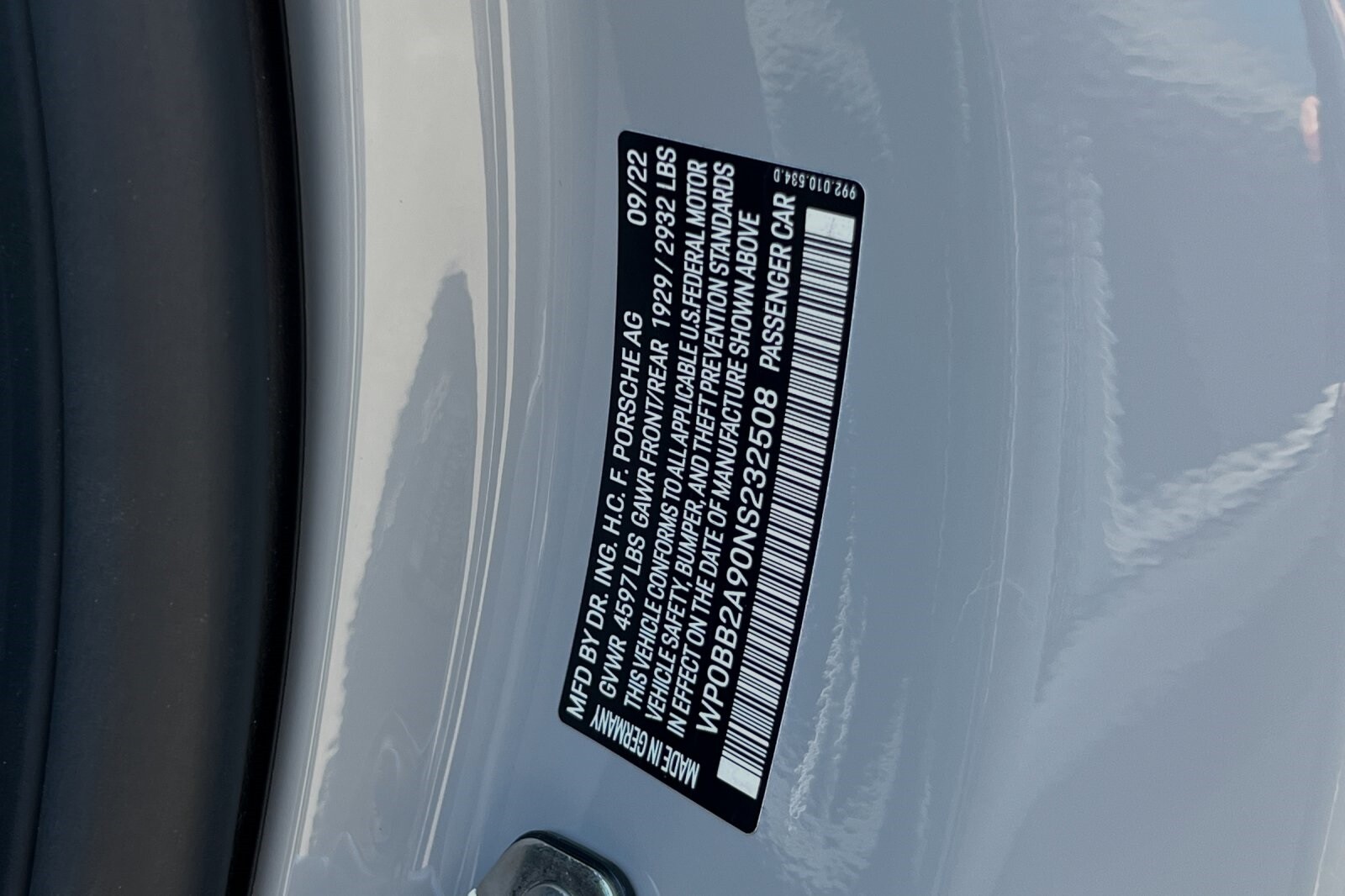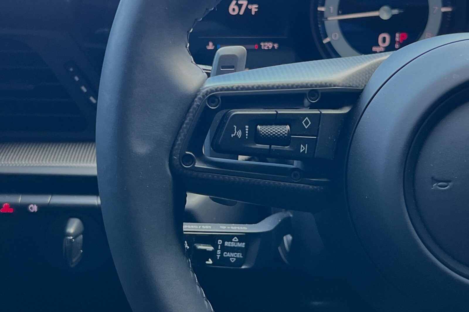 This Porsche San Luis Obispo 2022 Chalk Porsche 911 Targa 4 GTS AWD is well equipped and includes these features and benefits: 18-Way Adaptive Sport Seats Plus w/Memory Package, Premium Package (Ambient Lighting, BOSE Surround Sound System, Lane Change Assist (LCA), Power Folding Exterior Mirrors, and Surround View), Storage Package, Porsche Approved Certified Pre-Owned Certified, AWD, Adaptive Cruise Control, Brake Calipers in High Gloss Black, Sport Exhaust System, SportDesign Side Skirts, Wheels: 20 Front/21 Rear RS Spyder Design, 4-Wheel Disc Brakes, 8 Speakers, ABS brakes, Adaptive suspension, Air Conditioning, Alloy wheels, Auto-dimming door mirrors, Auto-dimming Rear-View mirror, Automatic temperature control, Brake assist, Bumpers: body-color, Convertible roof lining, Delay-off headlights, Driver door bin, Driver vanity mirror, Dual front impact airbags, Dual front side impact airbags, Electronic Stability Control, Exterior Parking Camera Rear, Four wheel independent suspension, Front anti-roll bar, Front Bucket Seats, Front Center Armrest, Front dual zone A/C, Front reading lights, Fully automatic headlights, Garage door transmitter: HomeLink, Glass rear window, Heated door mirrors, Heated front seats, Illuminated entry, Integrated roll-over protection, Low tire pressure warning, Navigation system: Porsche Communication Management (PCM), Occupant sensing airbag, Outside temperature display, Overhead airbag, Overhead console, Passenger door bin, Passenger vanity mirror, Porsche Communication Management, Power convertible roof, Power door mirrors, Power driver seat, Power passenger seat, Power steering, Power windows, Radio data system, Rain sensing wipers, Rear anti-roll bar, Rear fog lights, Rear window defroster, Remote keyless entry, Security system, Speed control, Split folding rear seat, Spoiler, Sport steering wheel, Steering wheel mounted audio controls, Tachometer, Telescoping steering wheel, Tilt steering wheel, Traction control, Trip computer, and Variably intermittent wipers. 360 Camera, Active Parking Assist, Adaptive Cruise Control, Adaptive Headlights, Android Auto, Apple Carplay, Automatic Headlights, Blind-Spot Monitors, Bluetooth, Collision Avoidance System, Collision Warning Alert System, Drowsiness Alert, Heads-Up Display, Heated/Cooled Seats, Keyless Access w/Push Button Start, Lane Keeping Assist, Navigation, Smartphone App Integration, Touchscreen Controls, Voice Recognition, Wi-Fi Hotspot, AWD, 18-Way Adaptive Sport Seats Plus w/Memory Package, Adaptive Cruise Control, Ambient Lighting, BOSE Surround Sound System, Brake Calipers in High Gloss Black, Lane Change Assist (LCA), Power Folding Exterior Mirrors, Premium Package, Sport Exhaust System, SportDesign Side Skirts, Storage Package, Surround View, Wheels: 20 Front/21 Rear RS Spyder Design.