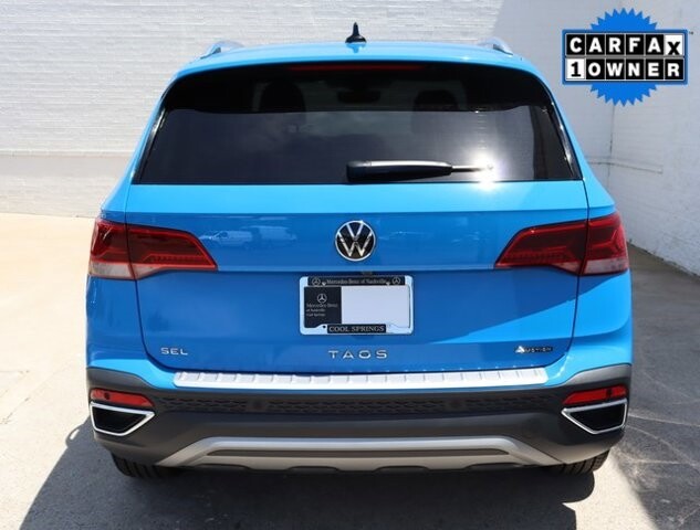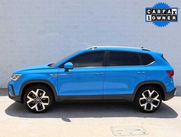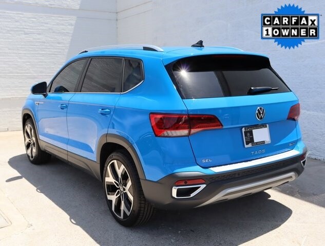 Our terrific 2023 Volkswagen Taos SEL 4MOTION is a top choice for taking on daily driving and more in Cornflower Blue! Powered by a TurboCharged 1.5 Liter 4 Cylinder offering 158hp to a 7 Speed Automatic transmission for sporty performance. Responsive handling is another benefit of our All Wheel Drive SUV, which achieves nearly 32mpg on the highway. Our streamlined Taos also appeals to owners with a panoramic sunroof, adaptive front lighting, 19-inch alloy wheels, silver roof rails, and an integrated lightbar on the grille.Designed for daily comfort, our SEL cabin treats you to heated/ventilated leather front seats, eight-way power for the driver, a heated leatherette steering wheel, remote start, keyless access/ignition, and clever cargo solutions. A BeatsAudio sound system delivers a dynamic listening experience, complementing the digital advantages of a 10.25-inch driver display, an 8-inch touchscreen, full-color navigation, wireless Android Auto/Apple CarPlay, WiFi compatibility, and wireless charging.Drive confidently knowing Volkswagen has your back with semi-autonomous Travel Assist, adaptive cruise control, automatic braking, forward collision warning, pedestrian detection, blind-spot monitoring, a rearview camera, lane-keeping assistance, rear cross-traffic alert, and more. With all that, it's no wonder our Taos SEL is so rewarding! Save this Page and Call for Availability. We Know You Will Enjoy Your Test Drive Towards Ownership!