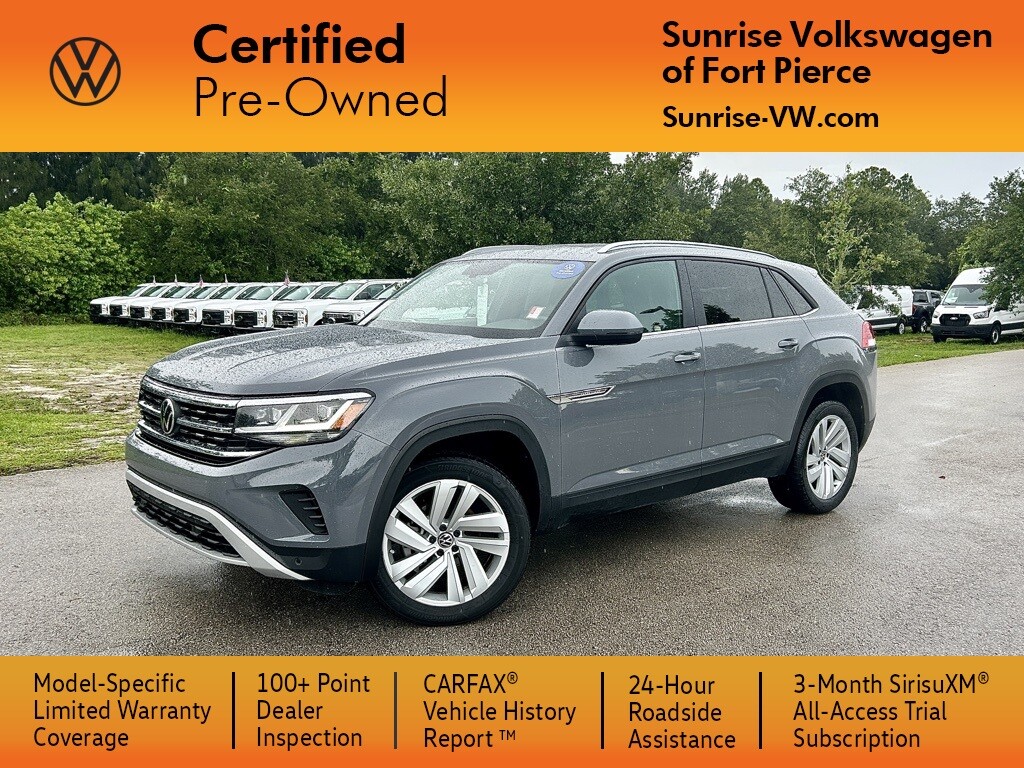 Certified. 2022 Volkswagen Atlas Cross Sport 4D Sport Utility Pure Gray 8-Speed Automatic with Tiptronic 3.6L V6 SE w/Technology Clean CARFAX. CARFAX One-Owner. MOONROOF, VW FACTORY CERTIFIED PRE-OWNED, Panoramic Sunroof Package, Power Tilting & Sliding Panoramic Sunroof, Trailer Hitch Extras. FWD 3.6L VR6