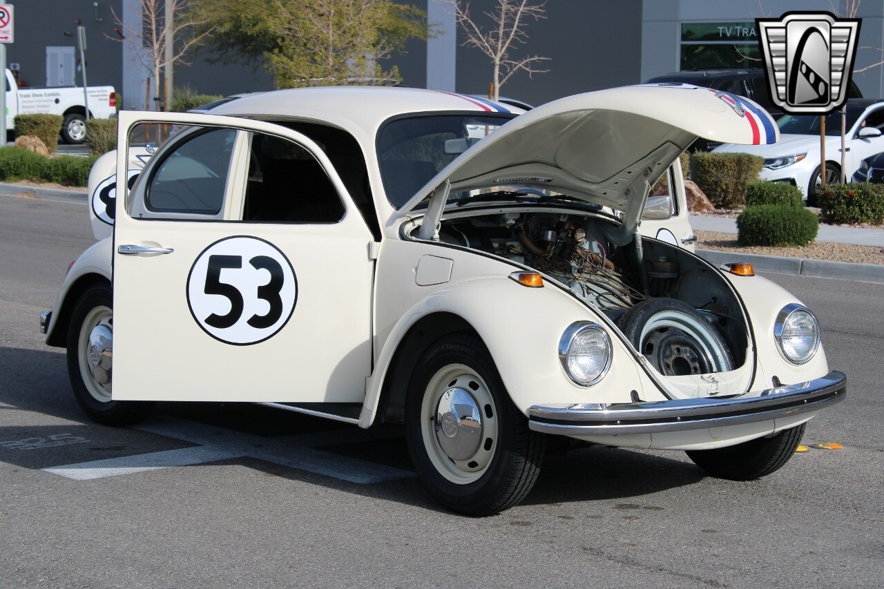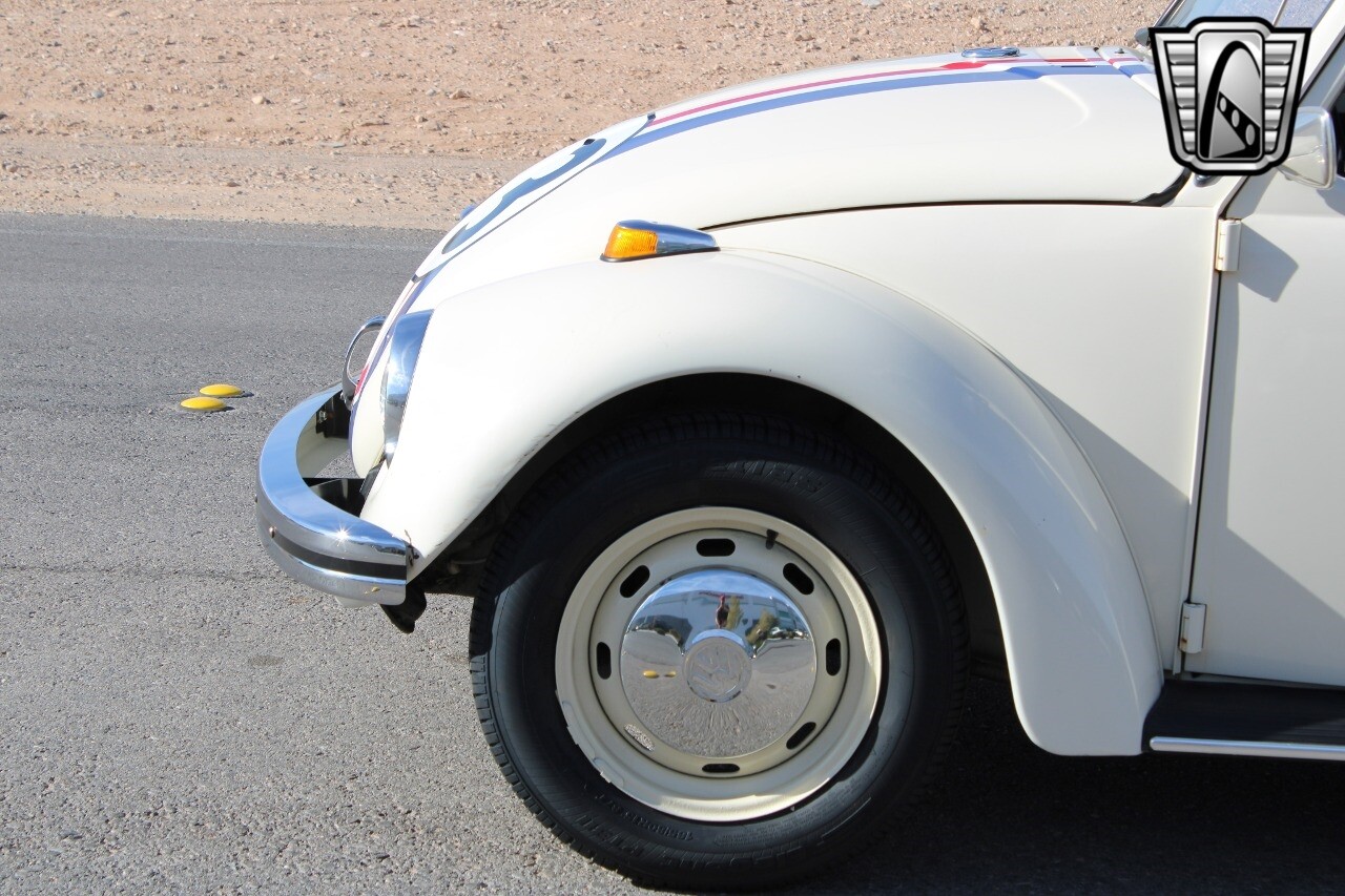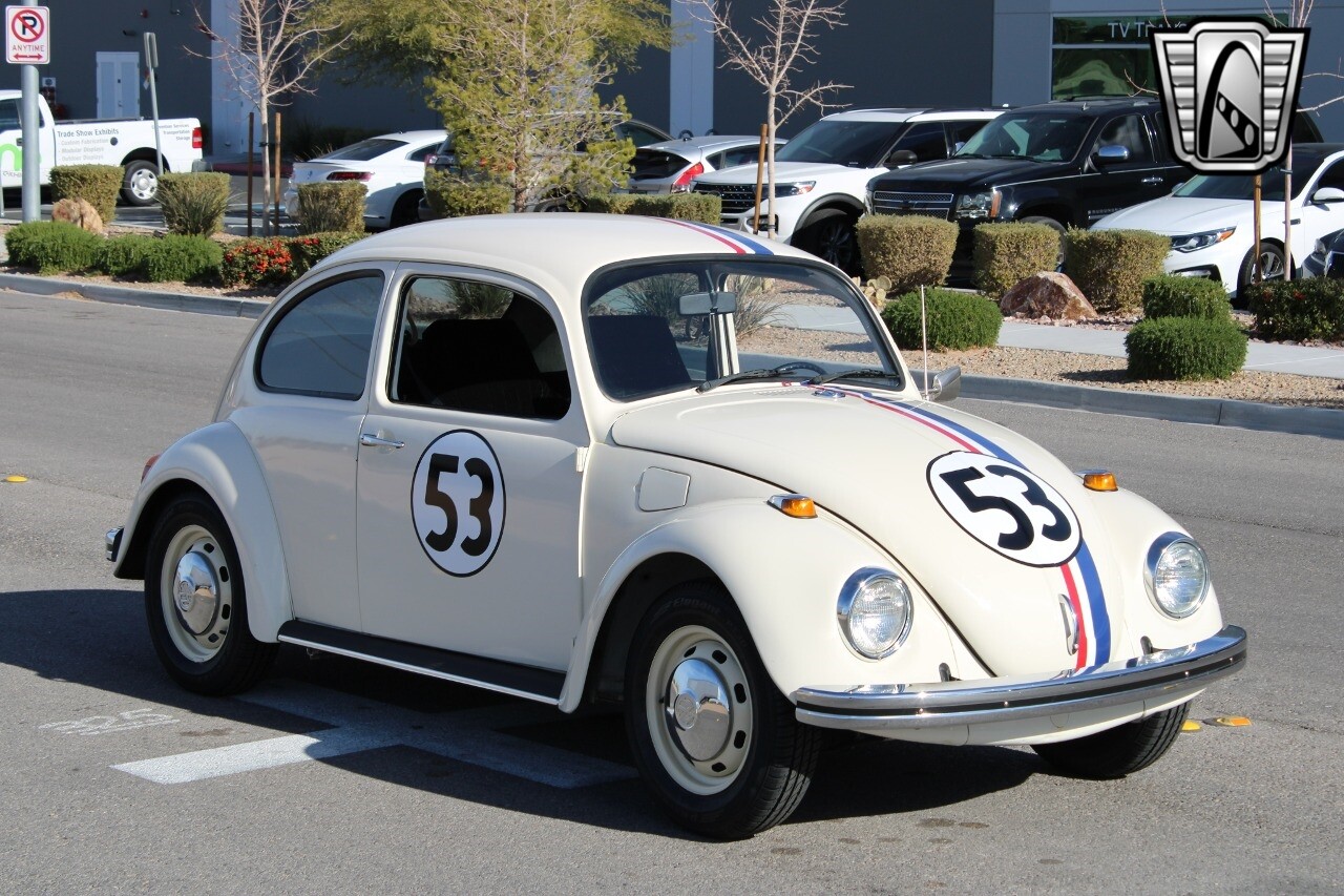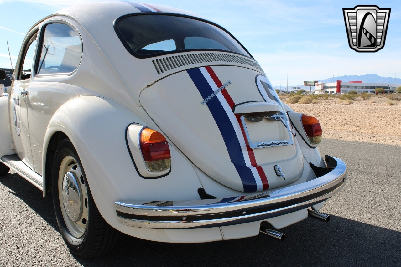 Gateway Classic Cars of Las Vegas presents this 1968 Volkswagen Beetle, a timeless icon of automotive design. This particular model comes in a striking white exterior color with Herbie graphics that complements its black cloth interior, creating a visually appealing contrast that is sure to turn heads.