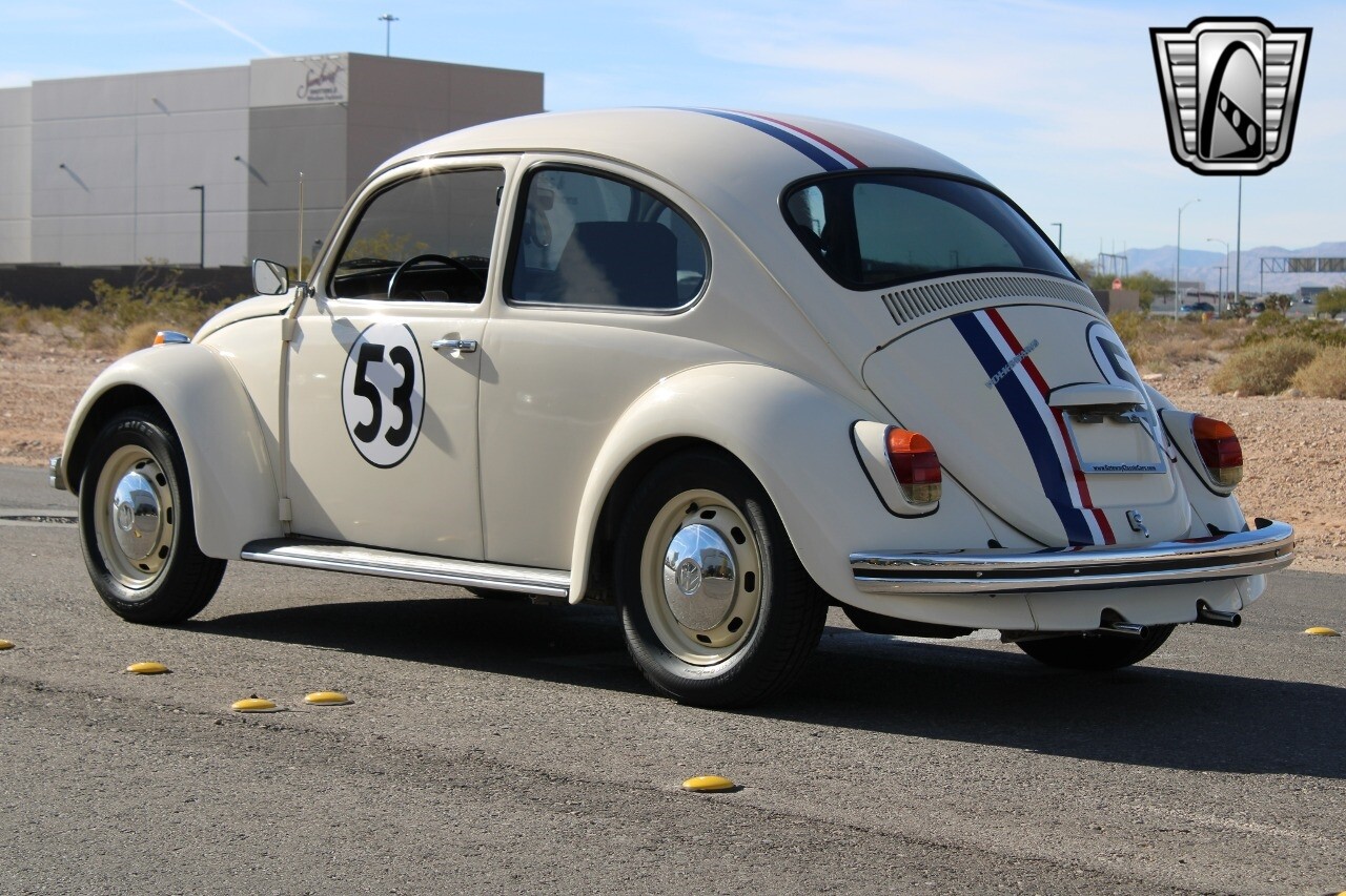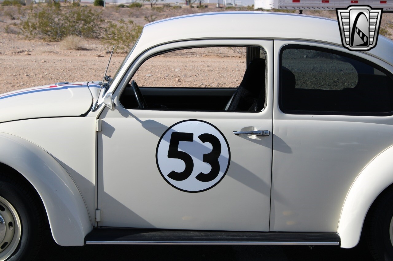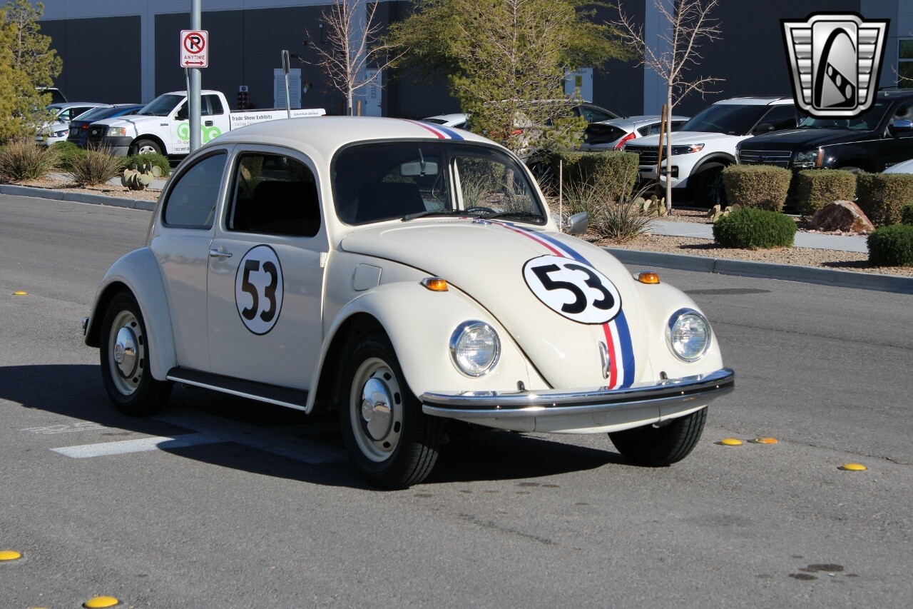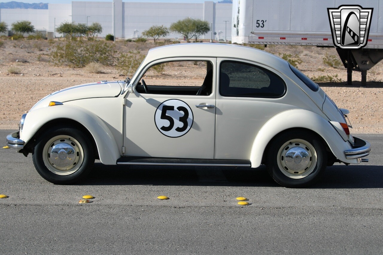 Gateway Classic Cars of Las Vegas presents this 1968 Volkswagen Beetle, a timeless icon of automotive design. This particular model comes in a striking white exterior color with Herbie graphics that complements its black cloth interior, creating a visually appealing contrast that is sure to turn heads.