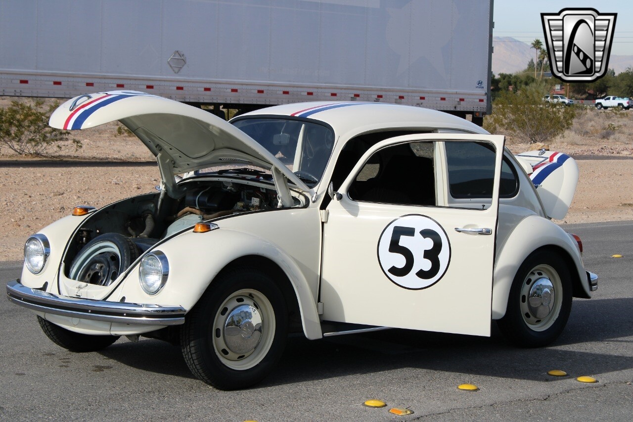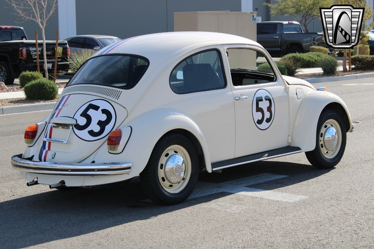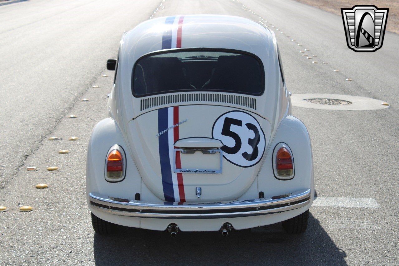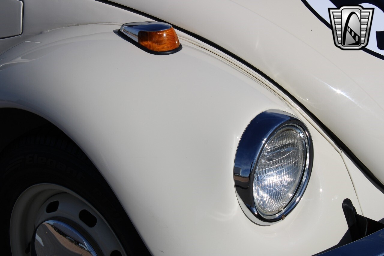 Gateway Classic Cars of Las Vegas presents this 1968 Volkswagen Beetle, a timeless icon of automotive design. This particular model comes in a striking white exterior color with Herbie graphics that complements its black cloth interior, creating a visually appealing contrast that is sure to turn heads.