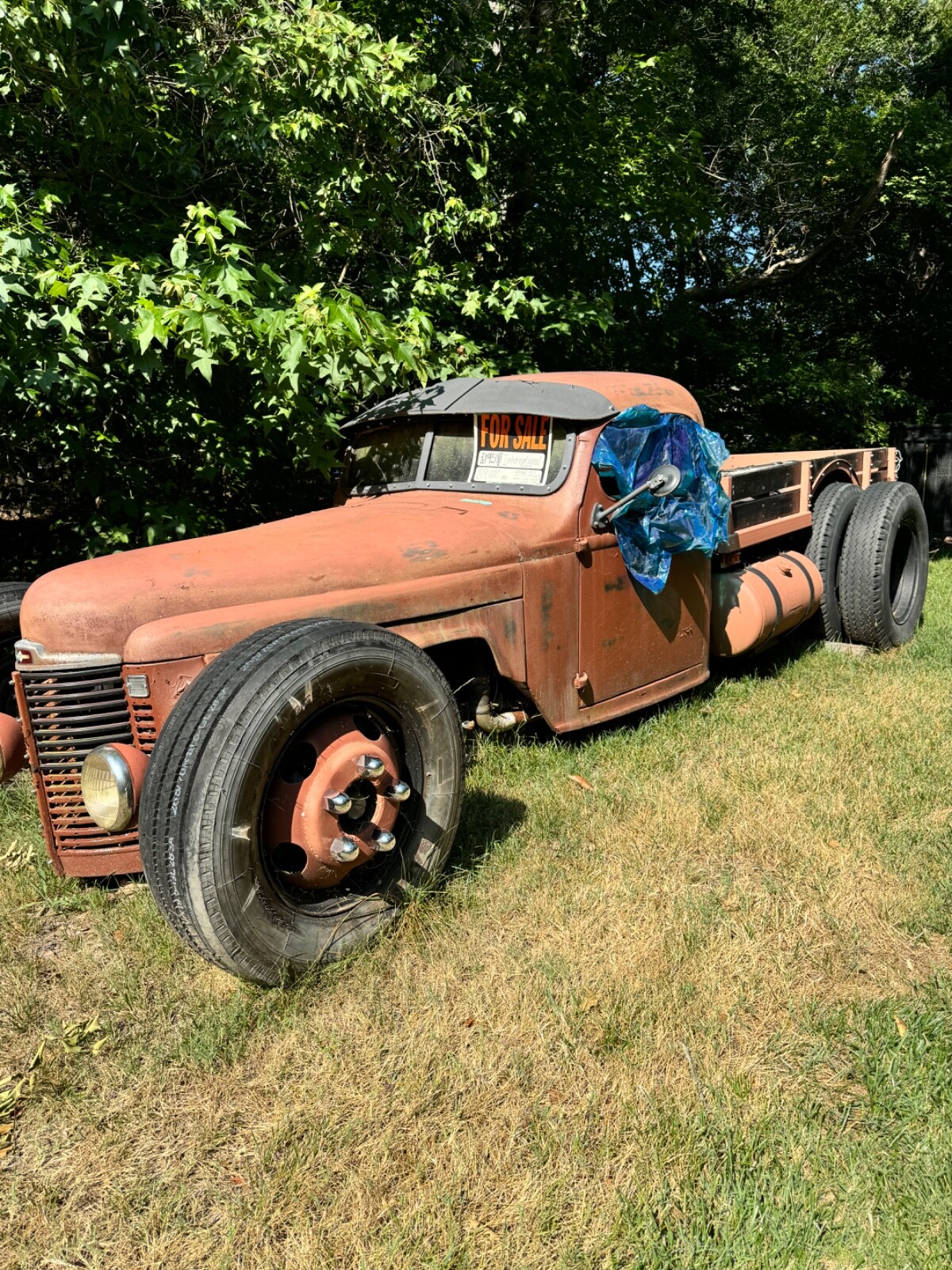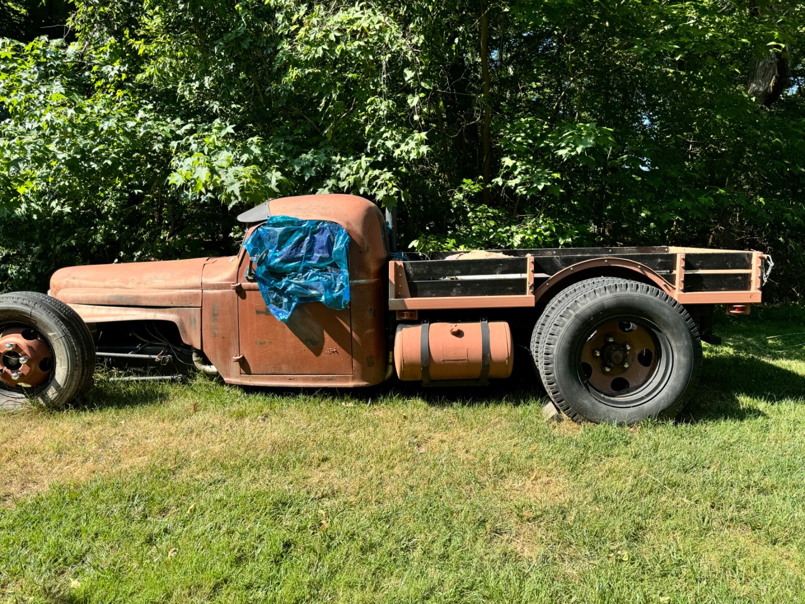Unfinished 1950 International Truck with a 1947 front end. First gen Cummins 1 wire motor. Getrag 5 speed transmission. Rear end is a 3.5 ton split with electronic actuator. Looking for 15k/obo.