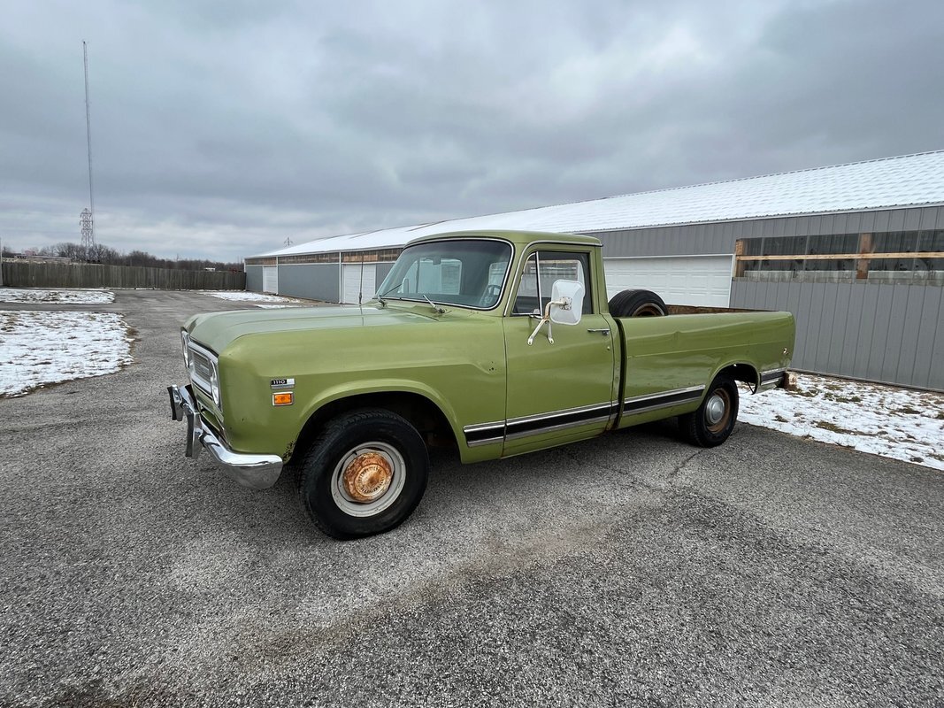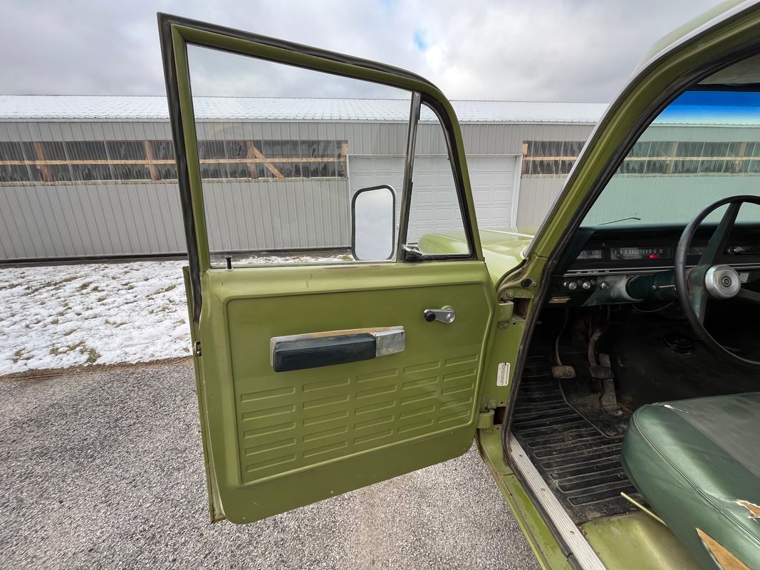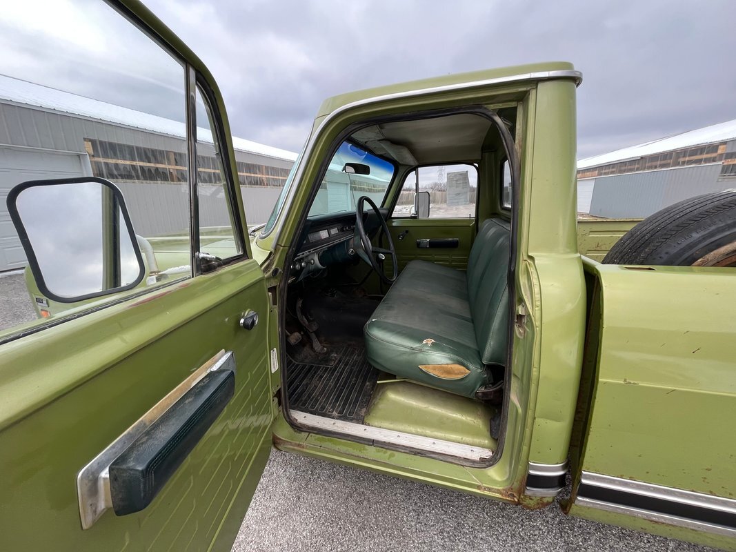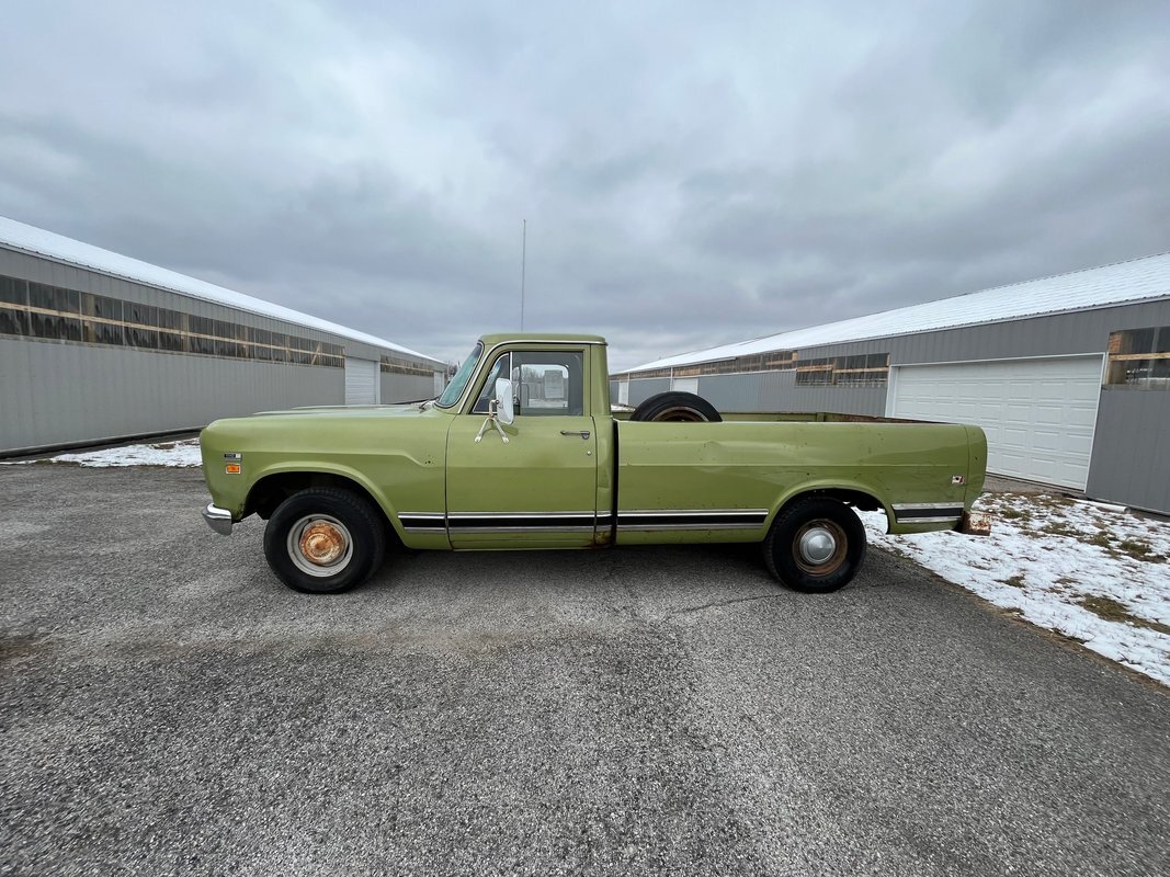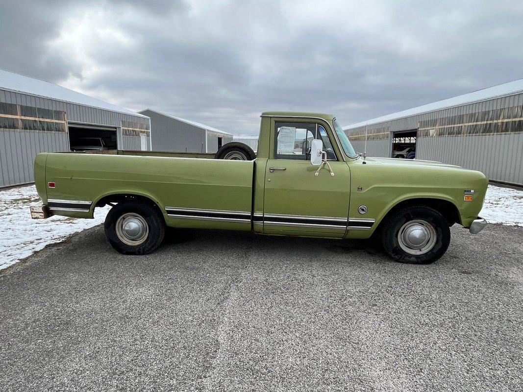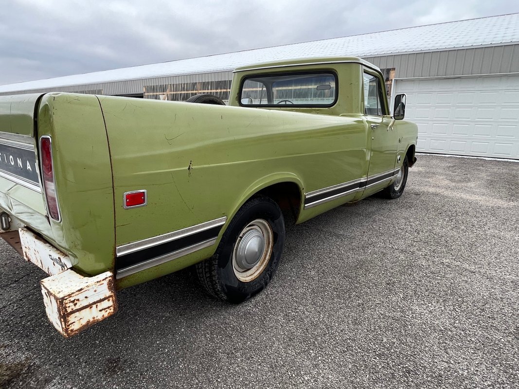 1971 International 110 pickup long bed, good honest old survivor, good body, original paint, good original interior, v8 4speed, runs and drives