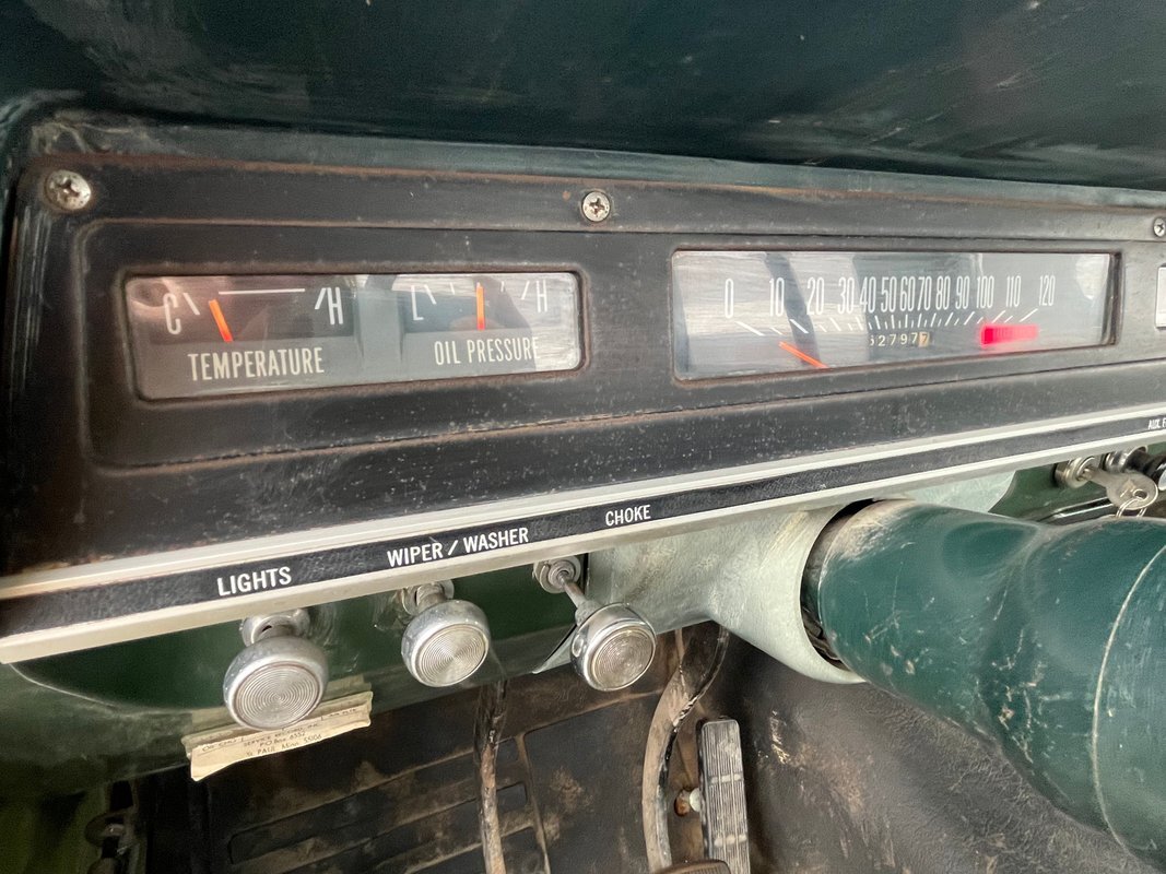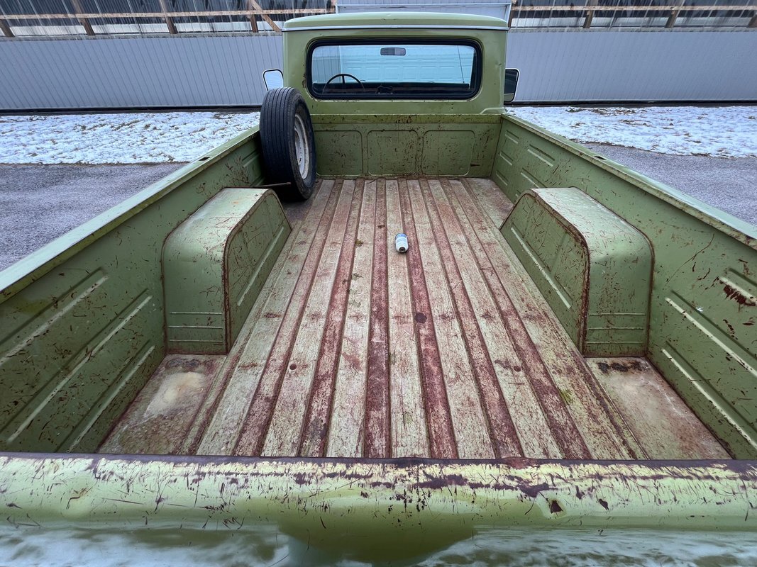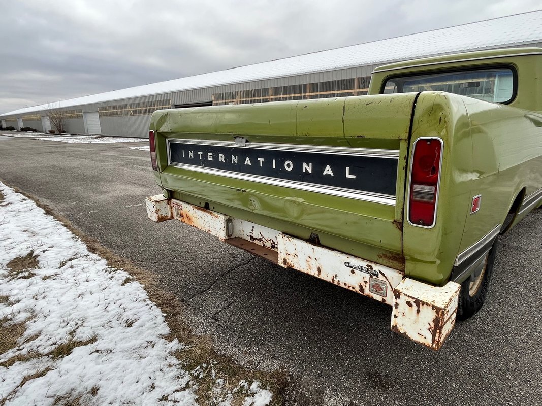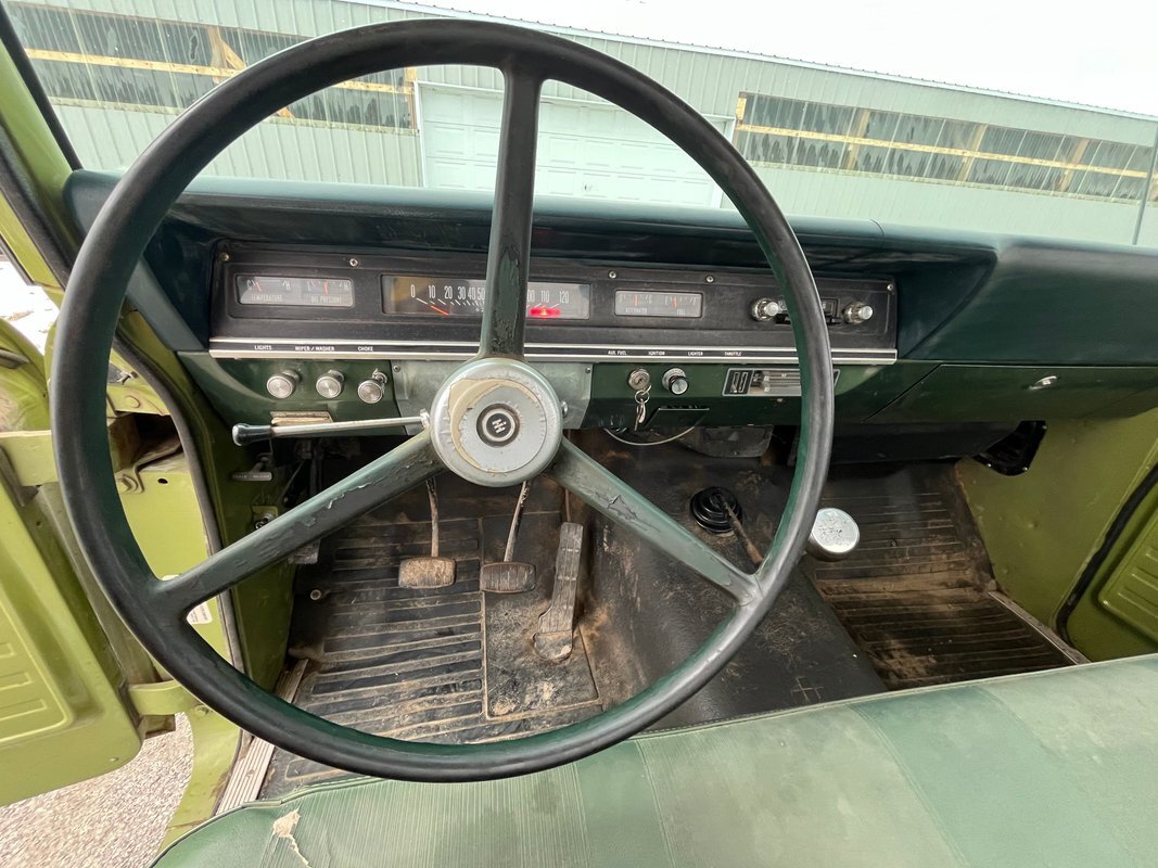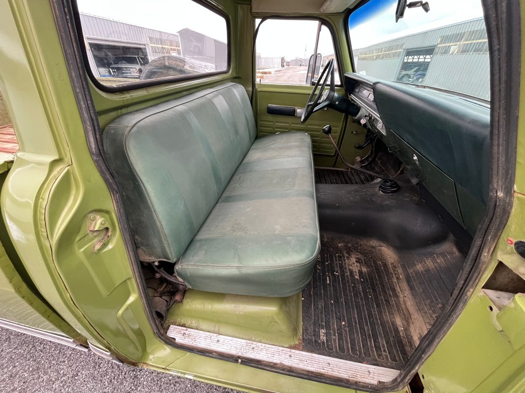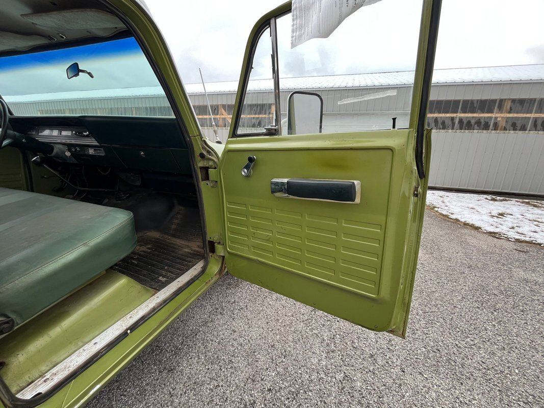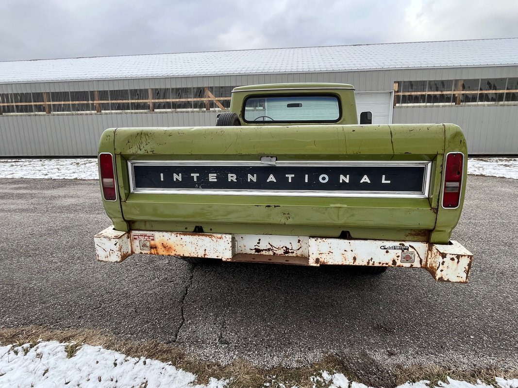 1971 International 110 pickup long bed, good honest old survivor, good body, original paint, good original interior, v8 4speed, runs and drives