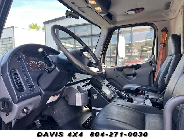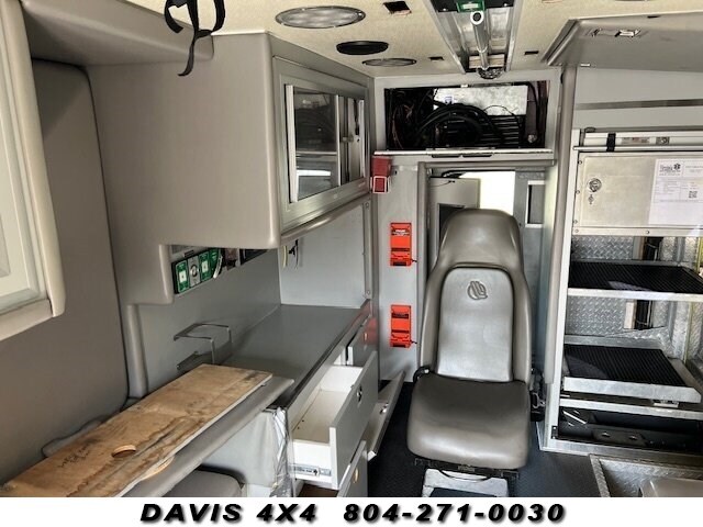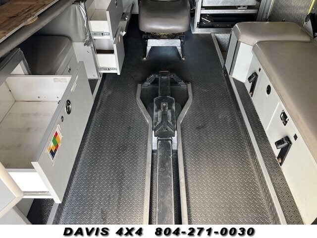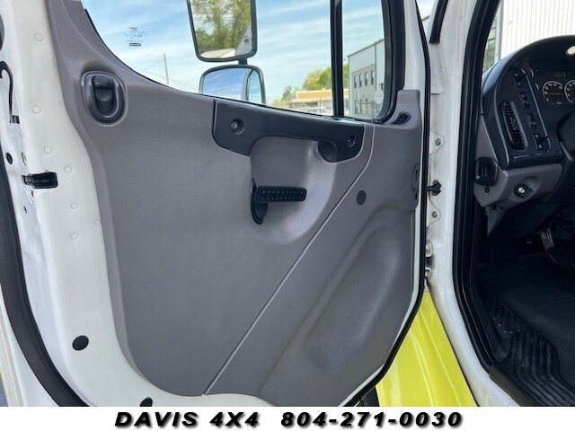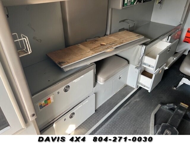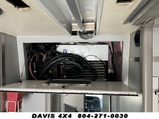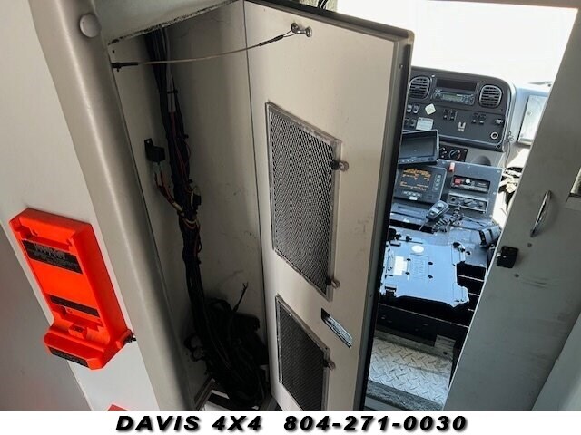 2011 Freightliner M2 Business Class Cummins Diesel Ambulance/Utility Work Truck. This Cummins turbo diesel power truck could be turned into anything that you want. We have seen them make amazing race car hauling rigs, service and maintenance trucks or go back to using it as an ambulance. This unit does still have the Stryker system in the floor and all of its shelves and items are still intact. We have also seen these turn into very well put together tiny houses/Schooley camper conversions, etc. being as they have plenty of power and are outed well with the rear air condition systems, and other things. 14 feet of rear length and just at 6 foot of standup height, polished alloy wheels with excellent tread tires, freshly serviced and inspected. This unit still has a lot of the lights and other apparatuses that are typically removed but as typical some have been removed inside and outside storage areas, step up diamond plated aluminum rear bumper. The uses for these things are endless at a fraction of the cost that this unit would run.