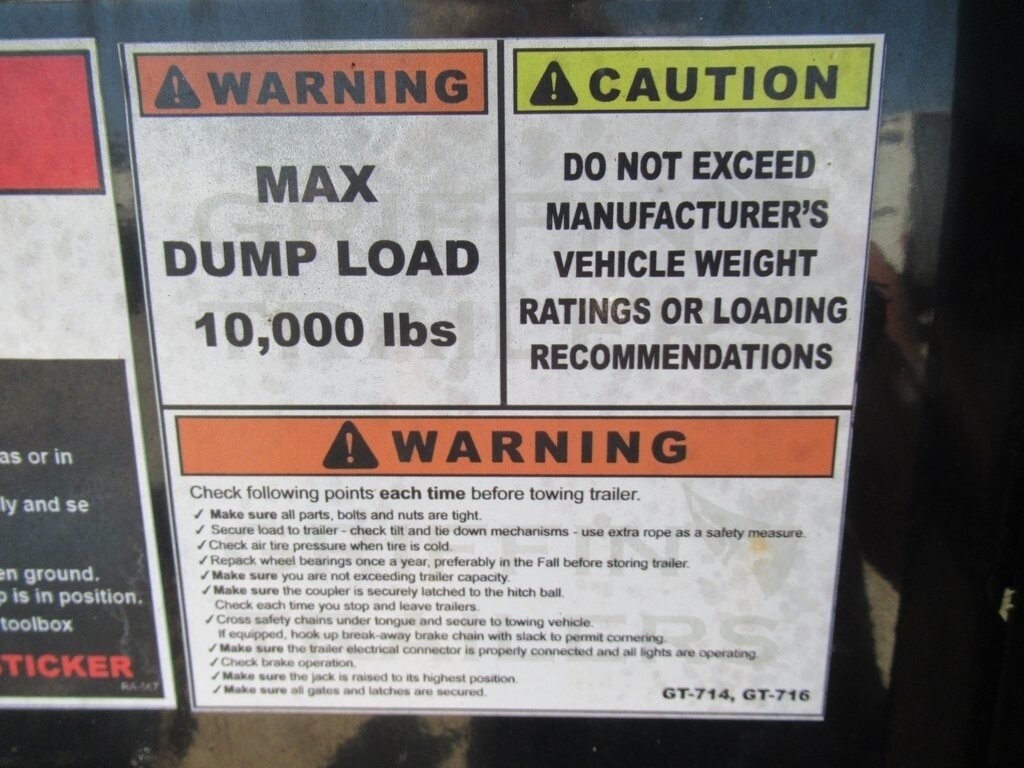 2021 GRIFFIN GT-714 Dump Trailer, 14'x83, GVWR 14,000 lbs. GAWR 7,000 lbs Per Axle, Curb Weight is 3,904, Payload is 10,096, Dump Capacity is 10,000 lbs, Overall Length is 222, Bed Length (inside) is 168, Bed Width (inside) is 83, Bed Height (inside) is 24, Leaf Spring Suspension, Electric Plug 7 Way Round Standard Plug, Pump 12V DC Hydraulic Pump (Power Up and Down), Ramps are 7'3x15, Tarp Kit Ratcheting tarp roller kit , 7ft x 18ft black mesh tarp. (attachments in trailer are not included)