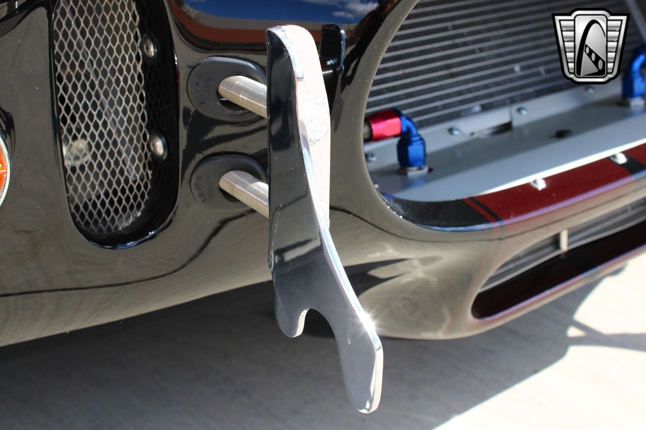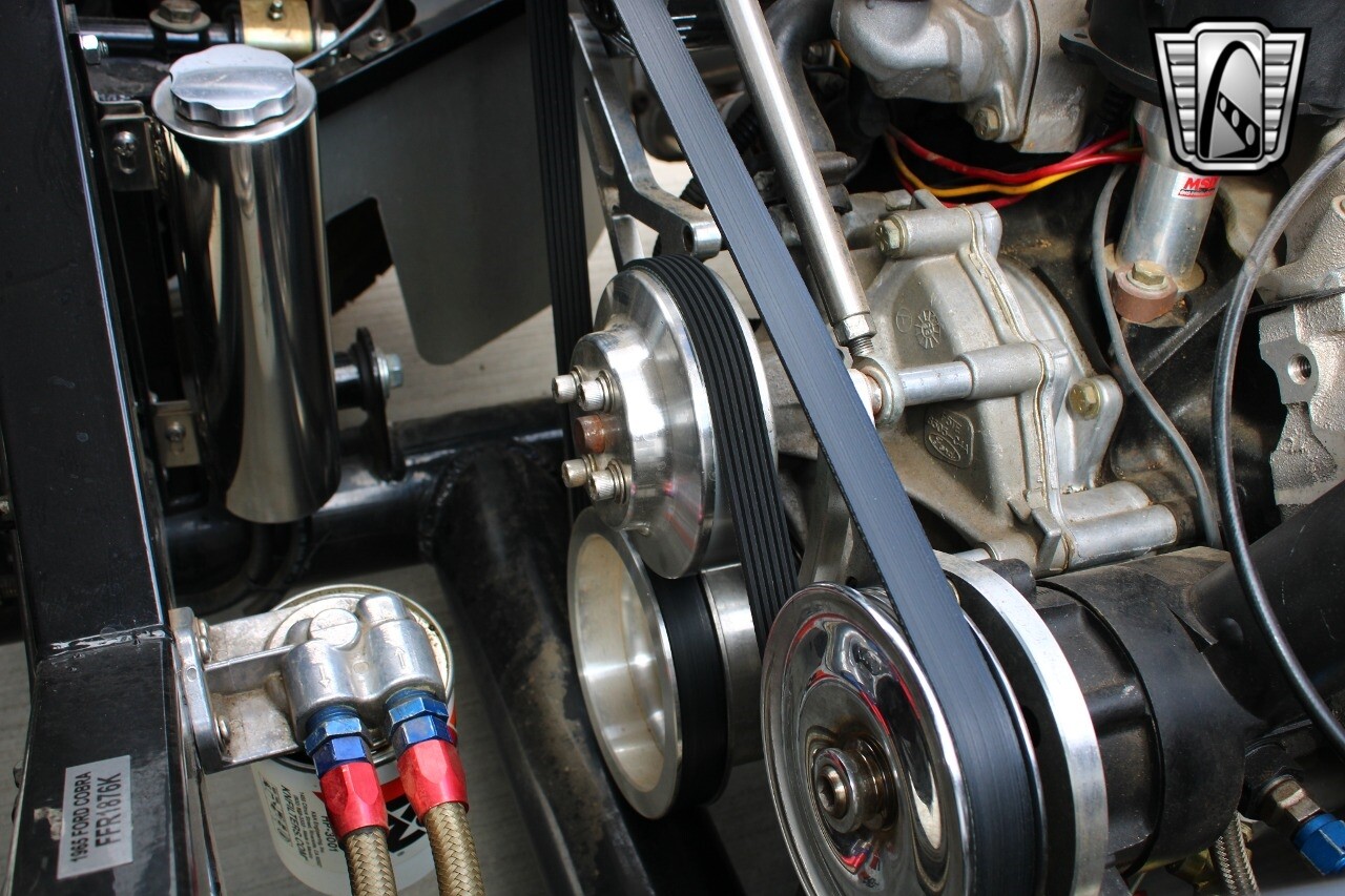 A 351 cubic inch Ford Racing V8 is mated to a Tremec 5 speed manual trans and sends power to the ground via a set of 3:73 gears. The 351 features 4 to 1 headers with side pipes, Holley Carburetor, March Performance Pulleys, MSD Ignition and Distributor. The car sits on a full set of coilover suspension with 4 wheel disc brakes and steel braided brake lines. Height power steering makes manuevering much less of a chore.