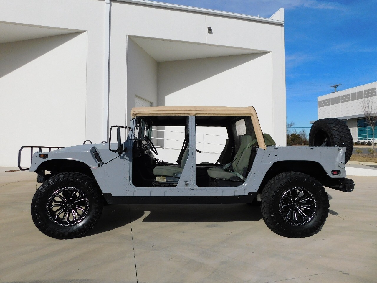 The 1999 AM General Humvee H1 also comes with custom wheels, adding a unique touch to its overall appearance. These wheels not only enhance the aesthetic appeal of the vehicle but also contribute to its performance on the road.