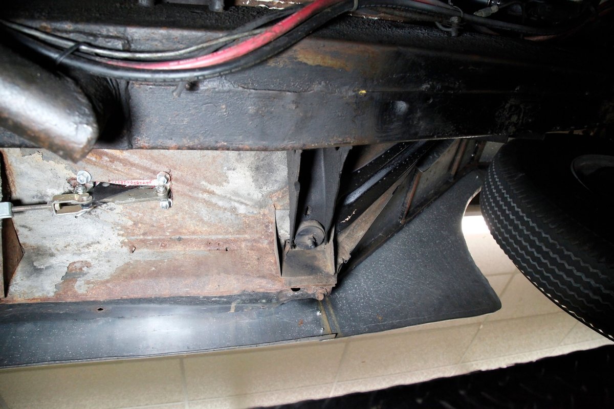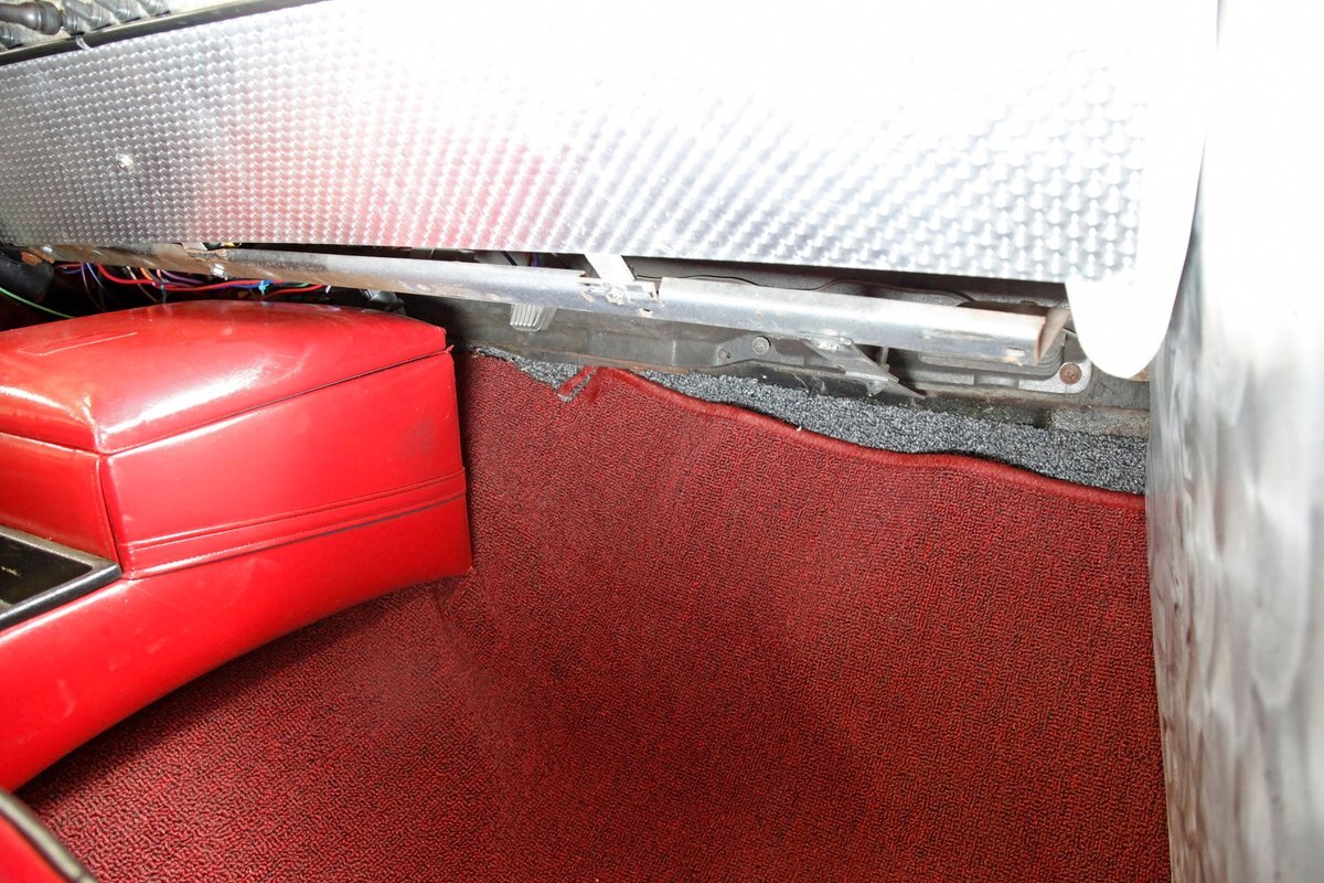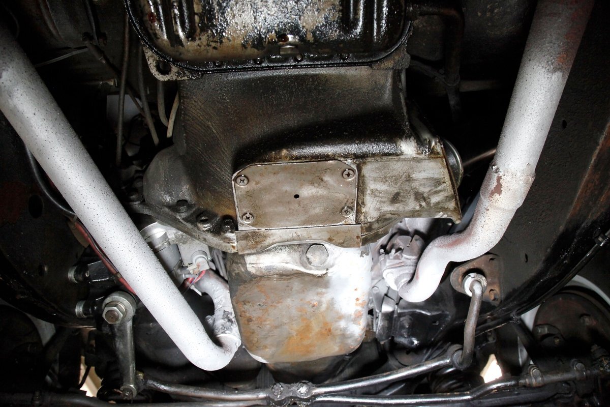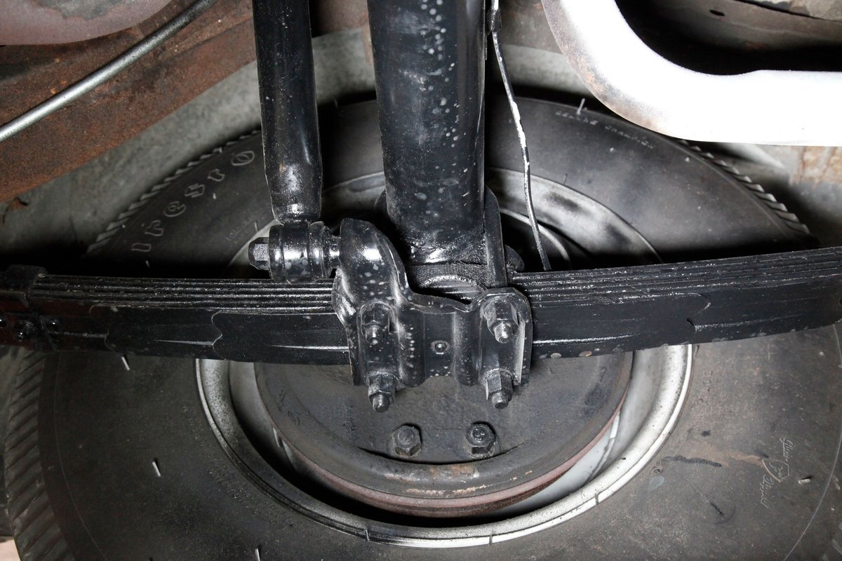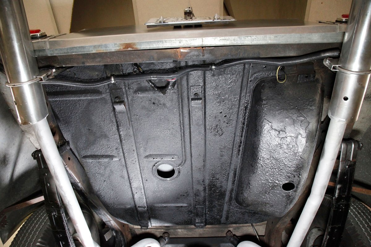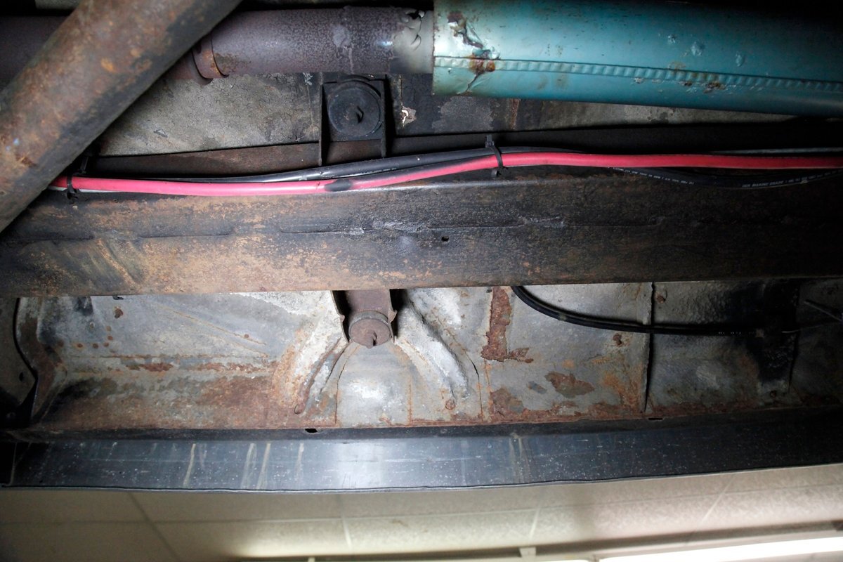 All built on a 1955 Chrysler chassis we see black heavily undercoated steel framing and floor pans. It does have a peppering of surface rust throughout. Independent coil springs are in front, and leaf springs oil back provide the ride. Power drum braking is all around and dual exhaust are noted featuring Smitty Mufflers.