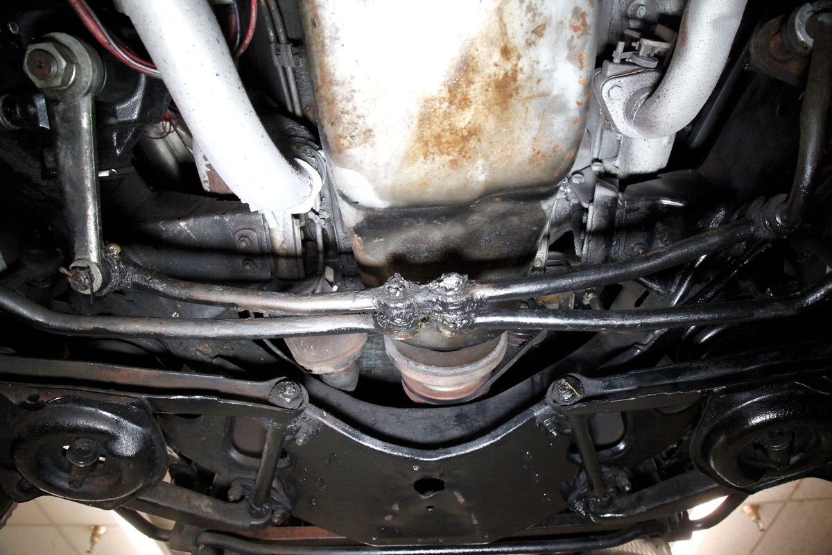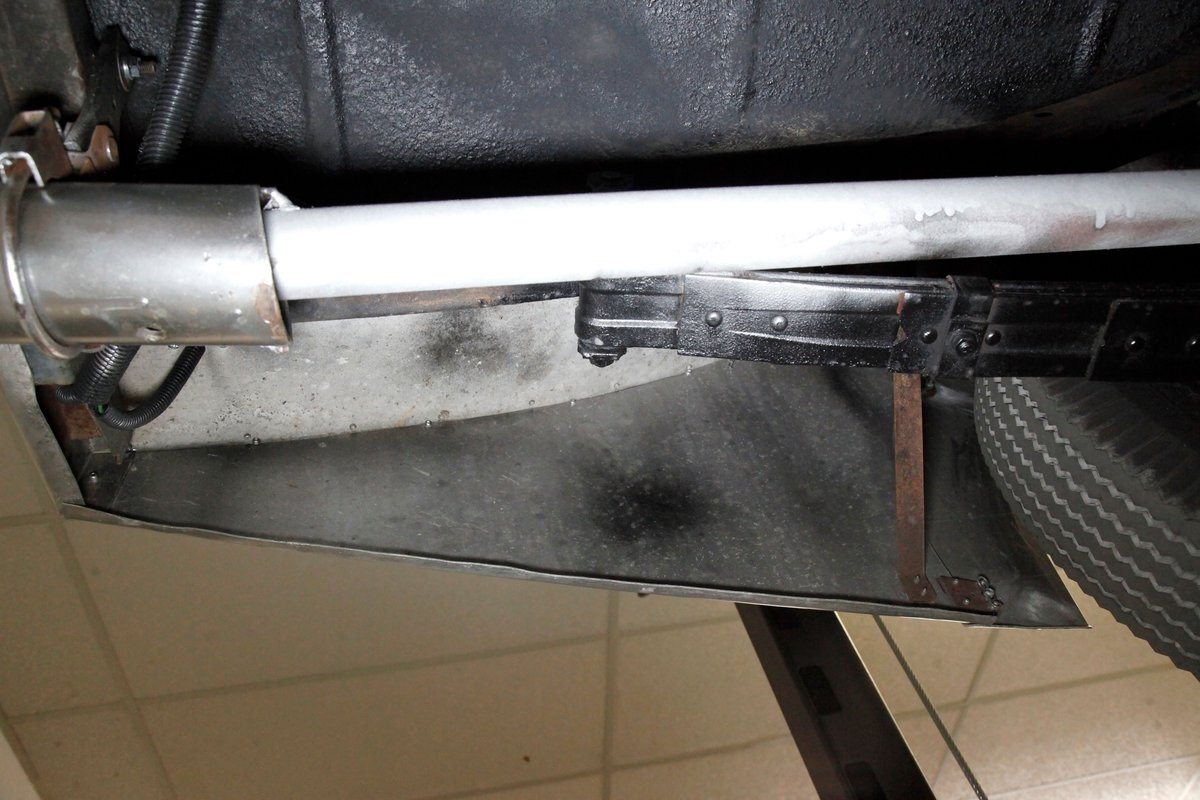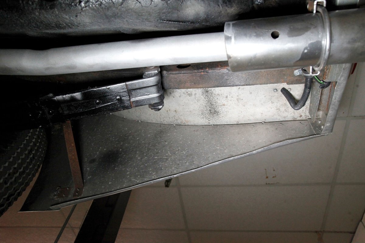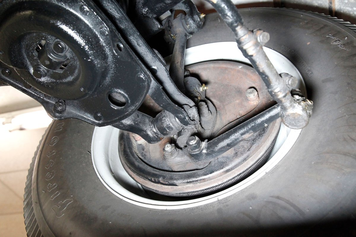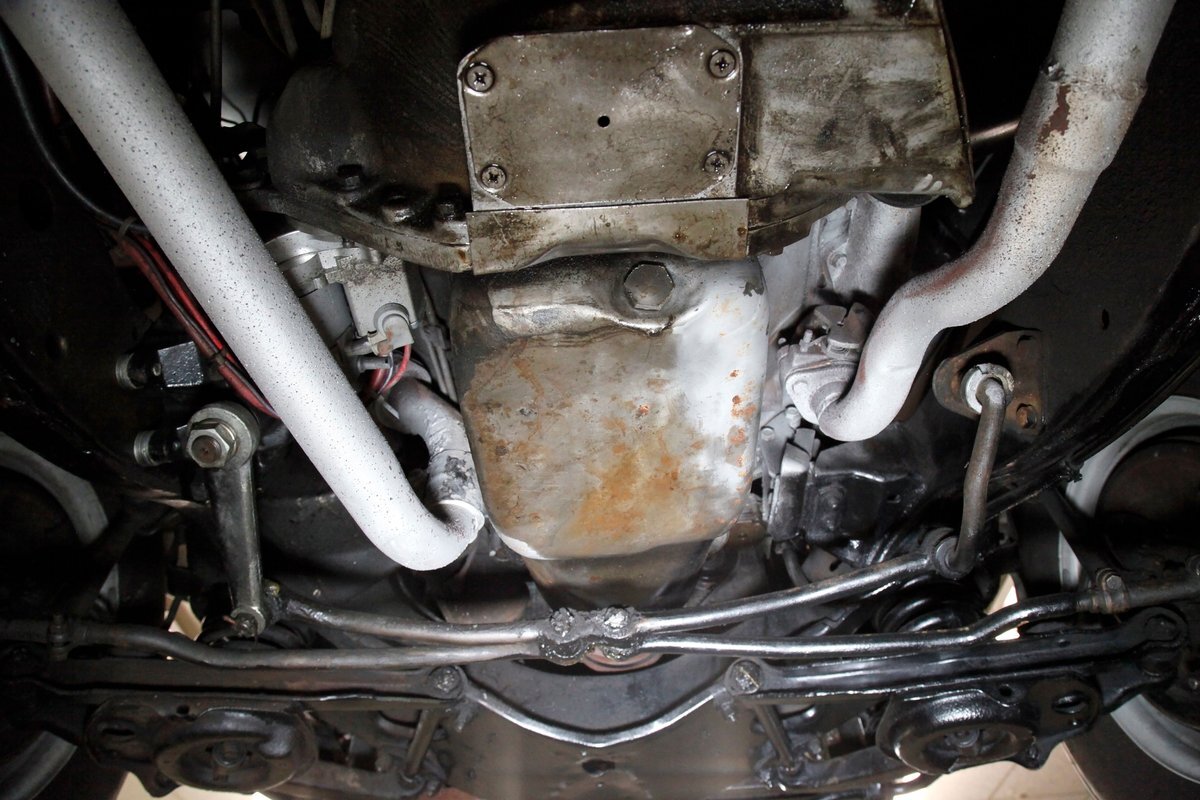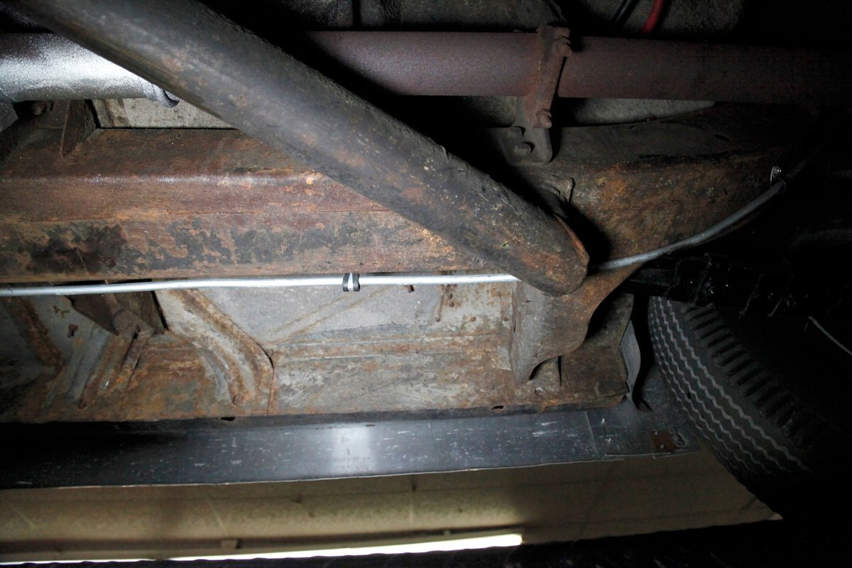 All built on a 1955 Chrysler chassis we see black heavily undercoated steel framing and floor pans. It does have a peppering of surface rust throughout. Independent coil springs are in front, and leaf springs oil back provide the ride. Power drum braking is all around and dual exhaust are noted featuring Smitty Mufflers.