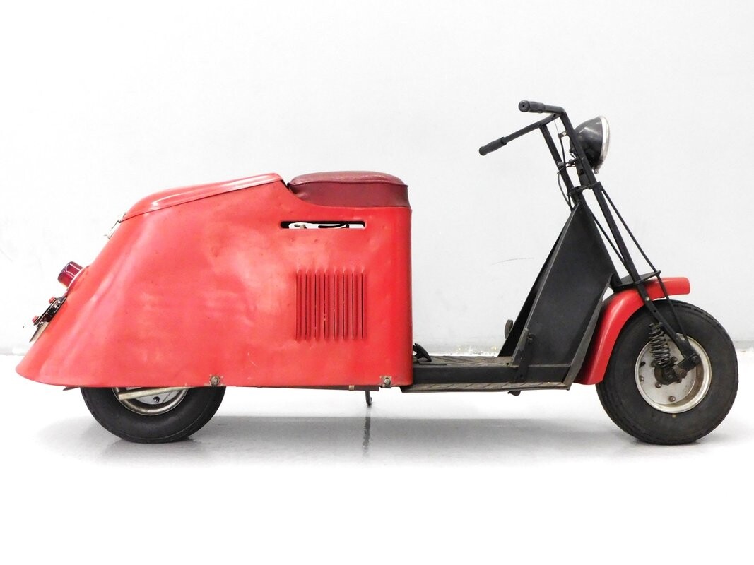 Rev up your collection with this 1952 Cushman Road King, featuring an older restoration in red and black. With 7.3 HP and a title, this bike is sure to be a prized possession. This is a running scooter. ALL VEHICLES SOLD "AS-IS".