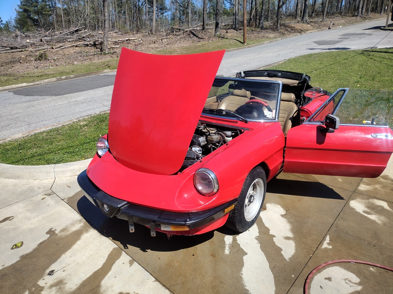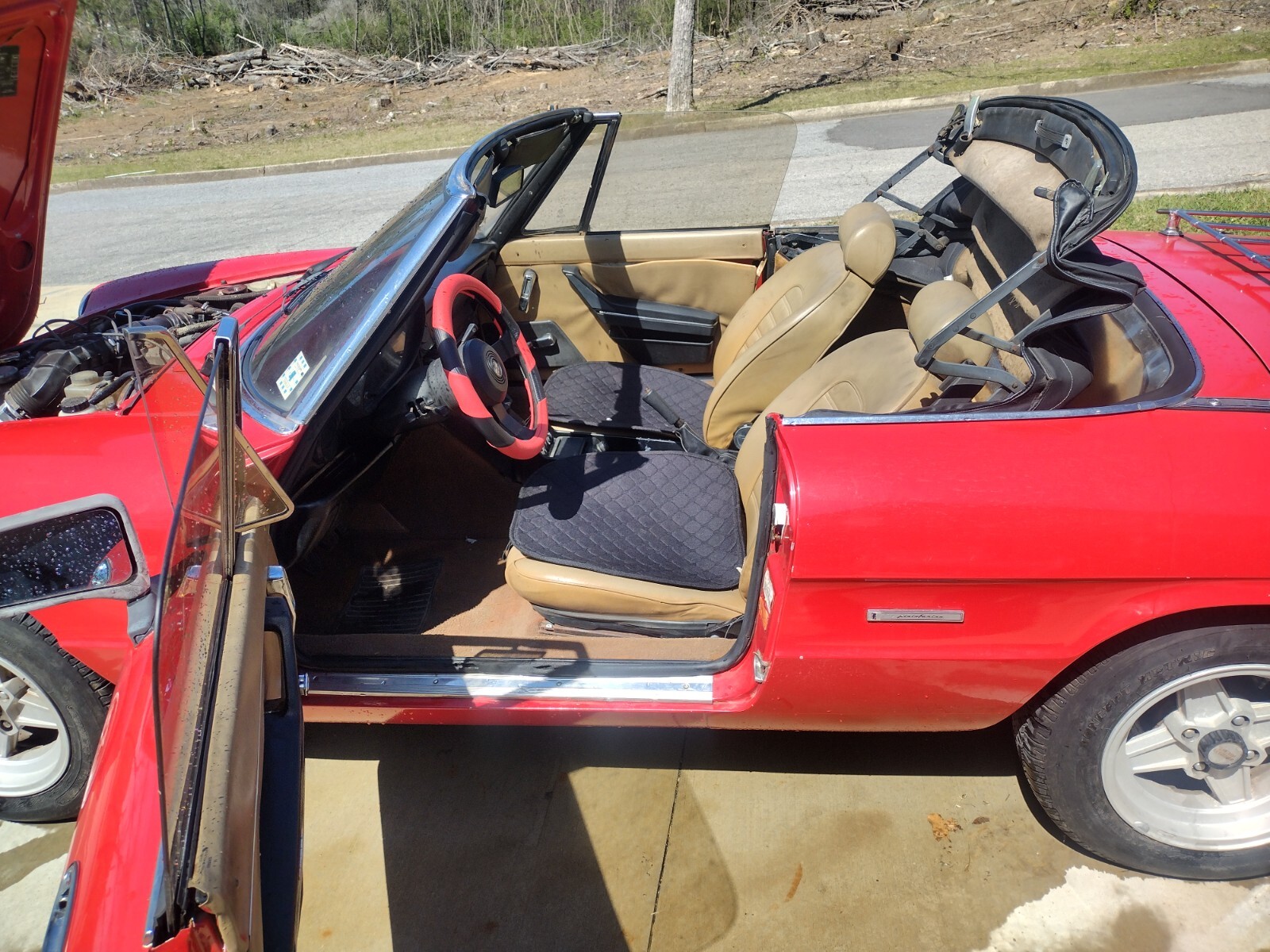 It cranks on first try but it is not driveable. It runs but needs a transmission mount. It dissolved after replacing the clutch. It also needs an ignition switch because after turning it off and pulling out the key it still runs. There is a crack in the exhaust weld in front of the oxygen sensor which makes it run rich. I must have hit it during clutch install. It ran perfectly before that. New parts. Refurbished gas tank, both fuel pumps, alternator, starter, water pump, thermostat, radiator, shroud, flywheel position sensors plus others. I have the manual and can show you where to buy parts, connect with other spider owners who love to talk and help you diagnose. I will give you input on any issues that you have after purchase. I have learned a lot about these cars. I have a new baby and do not have time for tinkering on it anymore. I have over 5 thousand in it. It has almost no rust except some scale rust in the trunk near the battery. It's a beautiful car and easy to work on. I will deliver within 100 miles.