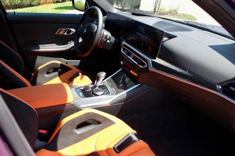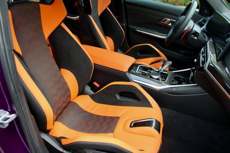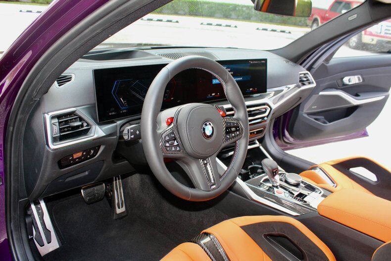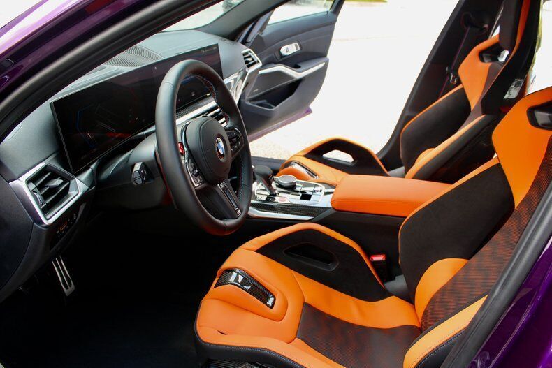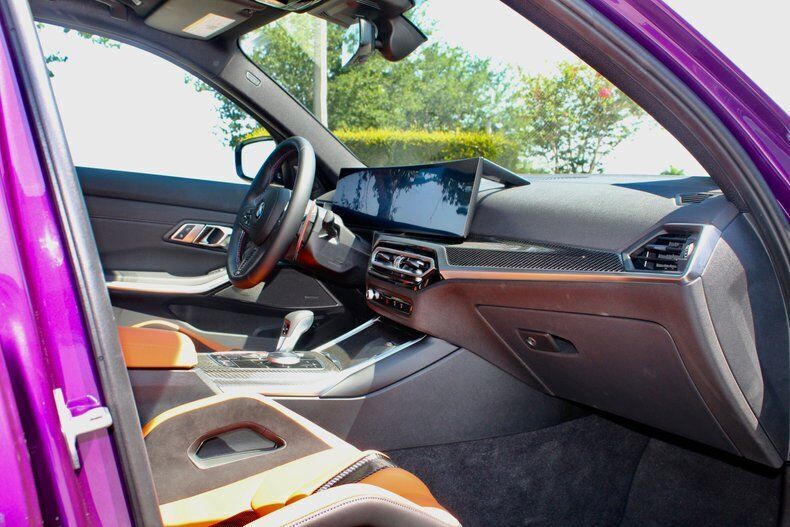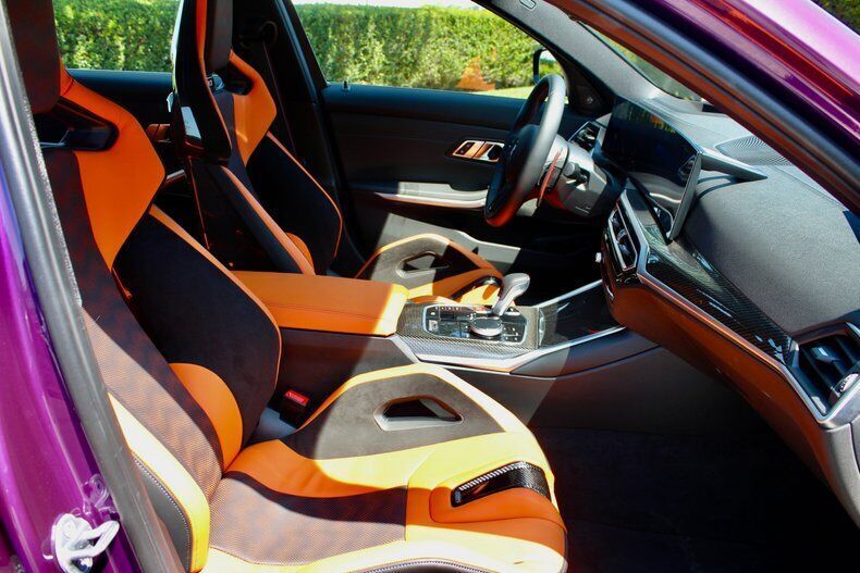 2023 BMW M3 Competition Sedan The BMW M3 is the long-running and very popular performance variant of the 3 Series sedan. For decades, it's been the go-to car for many automotive enthusiasts and is known for setting the benchmark for compact sport sedans. The M3's excellent mix of power, performance and practicality makes it a great choice if you're looking for an outrageously fun family car or a spacious, track-ready weekend warrior. The M3 is BMW's most iconic driver's car. This M3 has less than 1,000 miles with a clean CarFax. Standard features include Kyalami Orange/ Black Leather, 19/20 black wheels, Adaptive M suspension, Multi Zone Climate control,4-Wheel disc brakes (ABS), Harman Kardon Sound system. Vehicle is powered by 3.0 Liter BMW M TwinPower Turbo inline 6 paired to an eight-speed automatic. This M3 Competition is well optioned starting with Twilight Purple Metallic, driving assistance pro package, parking assistance package, executive package, Carbon Fiber Trim, M Carbon bucket seats, Icon adaptive LED w/ laserlight, drive recorder, wireless charging. Comes with original window sticker EXTERIOR: aˆc Twilight Purple Metallic aˆc 826M Black wheels aˆc LED headlights aˆc Extended shadowline exterior trim with competition badging aˆc Sport exhaust system with quad tailpipes INTERIOR: aˆc Kyalami Orange/Black Leather aˆc BMW curved display with Heads up Display aˆc M Carbon Bucket seats aˆc Heated front seats aˆc Heated steering wheel aˆc Remote engine start MECHANICS: aˆc 3.0 Liter BMW M TwinPower Turbo inline 6 (503 hp) aˆc 8-Speed Steptronic automatic transmission with drivelogic aˆc M Compound 4-Wheel ventilated anti-lock disc brakes aˆc Cornering brake control (CBC) UNDERCARRIAGE: aˆc Sport exhaust aˆc Dynamic Stability control aˆc M sport differential aˆc Clean Call us at941-208-6886, a live person answers the phones from 9am - 9pm (EST) Financing is available on our website We can ship this vehicle worldwide door to door Our indoor showroom is located at 7910 25th Court East Unit 107 Sarasota, FL 34243
