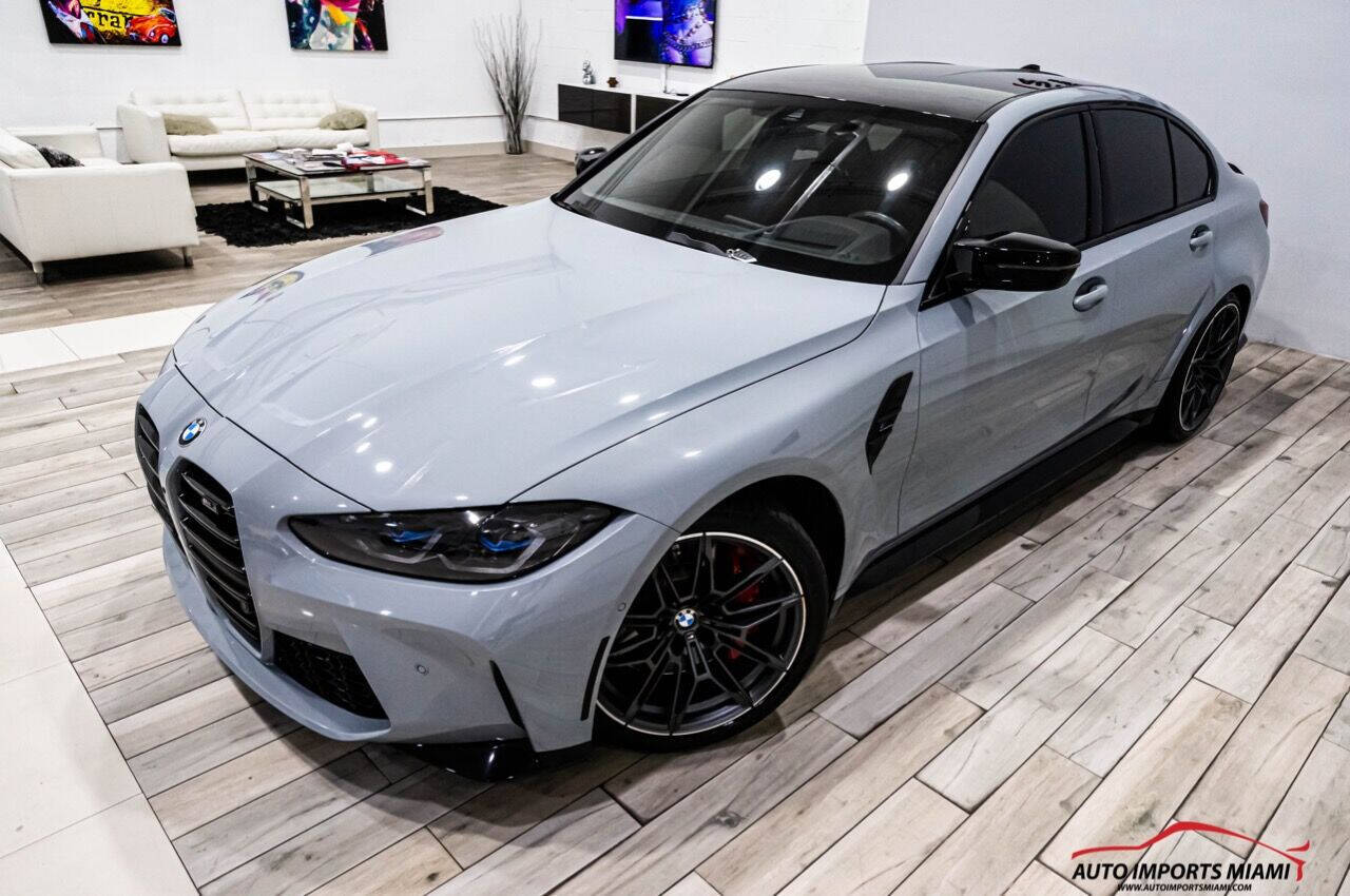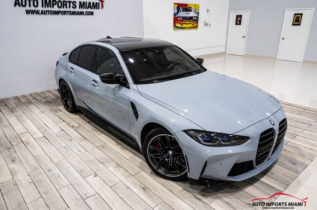 AUTO IMPORTS MIAMI PRESENTS.... 2022 BMW M3 COMPETITION XDRIVE AWD.... BROOKLYN GREY METALLIC OVER FIONA RED LEATHER.. COMPETITION PACKAGE!!! XDRIVE AWD.... RED LEATHER INTERIOR!!!!! 503 HP TWIN-TURBOCHARGED AWD ANIMAL... ACTIVE FACTORY BMW WARRANTY!!! LOADED WITH EXCLUSIVE OPTIONS.... CARBON FIBER INTERIOR TRIM.... EXECUTIVE PACKAGE... 19/20 825M STYLE ORBIT GREY WHEELS..... LASERLIGHT HEADLAMPS.... NAVIGATION..... HK PREMIUM SOUND.... CARBON FIBER ROOF...… ALL BOOKS AND MANUALS..... THIS VEHICLE COMES WIT 1 KEY... ABSOLUTELY GORGEOUS....WHAT A RARE FIND..... THIS STUNNING 2022 BMW M3 COMPETITION XDRIVE HAS A TWIN-TURBOCHARGED 3.0L I6 ENGINE THAT PRODUCES 503 HP AND COMES WITH ALL THE RIGHT EQUIPMENT INCLUDING....... *BROOKLYIN GREY METALLIC... *M COMPETITION PACKAGE... *XDRIVE ALL WHEEL DRIVE... *CARBON FIBER ROOF.... *EXECUTIVE PACKAGE... *M PERFORMANCE EXHAUST.... *M SEAT BELTS... *FIONA RED LETHER INTERIOR.... *19/20 ORBIT GREY 825M WHEELS... *EXTENDED SHADOW LINE BLACK EXTERIOR TRIM... *NAVIGATION..... *SURROUND VIEW CAMERA PKG... *HEATED FRONT SEATS.... *VENTILATED FRONT SEATS... *M COMPOUND BRAKES W.RED CALIPERS... *BLUETOOTH..... *HK SURROUND SOUND.... *TINTED WINDOWS..... *DCT AUTOMATIC TRANS..... *DYNAMIC DIGITAL CLUSTER..... *CARBON FIBER INTERIOR TRIM PKG........ *ICON LASERLIGHT LED SELF-LEVELING HEADLAMPS..... *M SHADOWLINE LIGHTS... *3-SPOKE SPORT STEERING WHEEL.... *REAR CLIMATE CONTROL... *PARK ASSISTANCE PLUS .... *DYNAMIC STABILITY CONTROL... *ADJUSTABLE MODE M DYNAMIC SUSPENSION... *REMOTE ENGINE START... PRICED TO SELL FAST....... THIS M3 COMPETITION IS ABSOLUTELY GORGEOUS ...MUST SEE THIS BEAUTY!!! Vehicle Pickup & Shipping... We offer fast and reliable Door-to-Door nationwide shipping at wholesale prices. We ship vehicles nationally and worldwide. Immediate delivery is available in select locations!!! With over 20 years of experience in luxury and exotic sales, we handpick all of our vehicles to make sure you are fully satisfied!!! For more info on this beauty call305-517-1332
