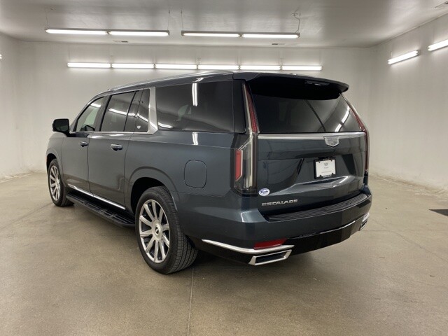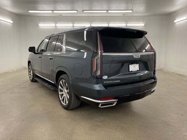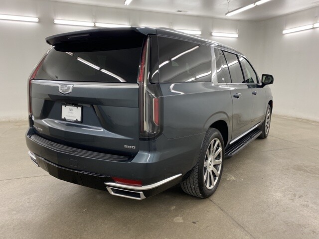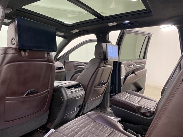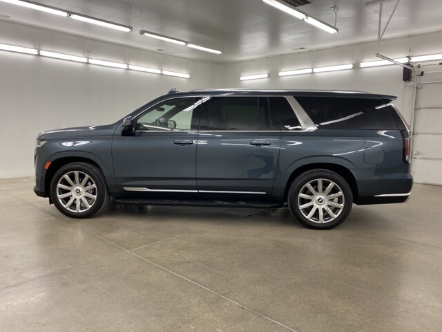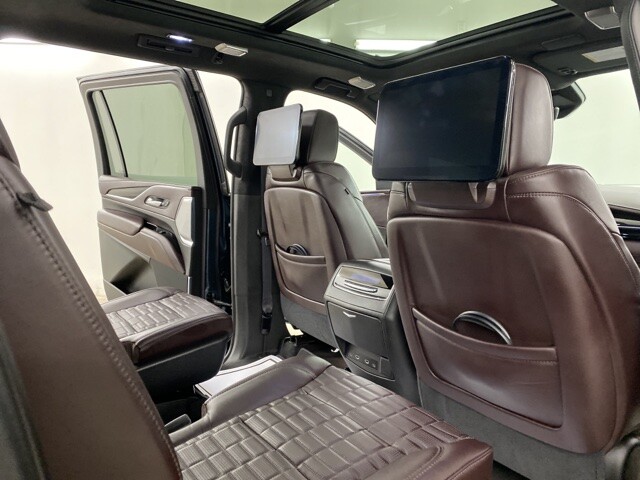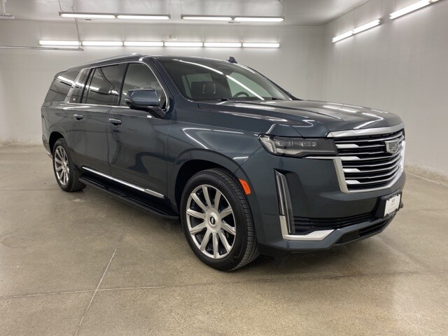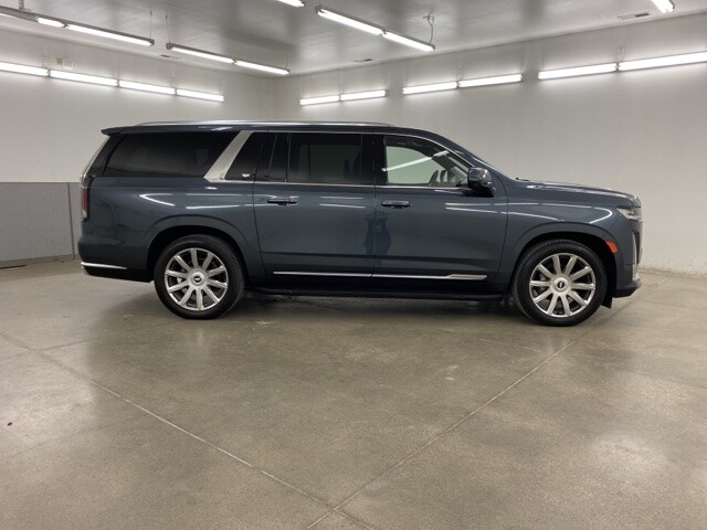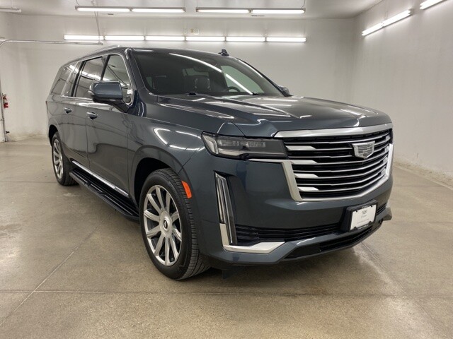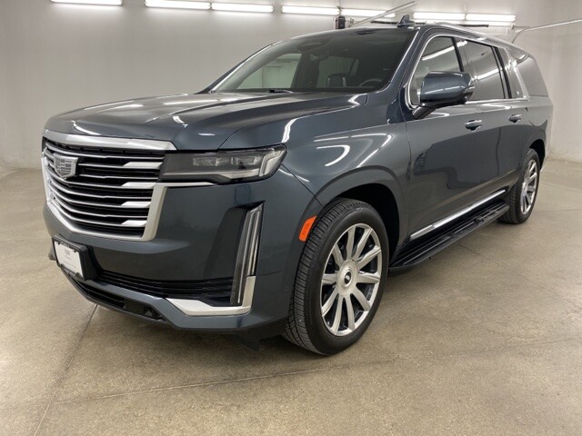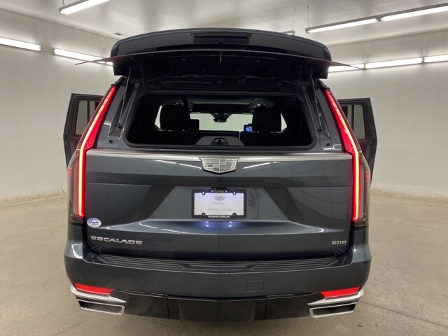 Certified. 1-Owner, Balance of Factory Warranty, 4WD, 16.9 Diagonal OLED Infotainment Screen, 2-Speed Active Transfer Case, A/V remote, Adaptive Cruise Control, Air Ionizer, Air Ride Adaptive Suspension, AKG Studio Reference 36-Speaker Audio System, AM/FM radio: SiriusXM with 360L, Apple CarPlay/Android Auto, Auto High-beam Headlights, Automatic Seat Belt Tightening, Automatic temperature control, Driver Assist Tech Package, Emergency communication system: OnStar and Cadillac connected services capable, Enhanced Automatic Emergency Braking, Enhanced Automatic Parking Assist, Front dual zone A/C, Fully automatic headlights, Garage door transmitter, Heads-Up Display, Heated & Ventilated Driver & Front Passenger Seats, Heated rear seats, Heated steering wheel, Heavy-Duty Trailering Package, Hitch Guidance w/Hitch View, Integrated Trailer Brake Controller, Lane Keep Assist w/Lane Departure Warning, Memory seat, Navigation System, Night Vision, Power Liftgate, Power Lumbar Massage Driver Seat, Power Lumbar Massage Front Passenger Seat, Power Panoramic Tilt-Sliding Sunroof, Radio: AM/FM/SiriusXM w/Navigation, Rain sensing wipers, Rear air conditioning, Rear audio controls, Rear Seat Entertainment System, Reverse Automatic Braking, Soft Closing Front & Rear Doors, Super Cruise, Teen Driver, Trailer Side Blind Zone Alert, Trailer Tire Pressure Monitoring System, Trailering Assist Guidelines, Wired Auxiliary Trailer Camera (LPO), Wireless Apple CarPlay/Wireless Android Auto. 6.2L V8 Shadow Metallic 2021 Cadillac Escalade ESV Premium Luxury Platinum Odometer is 3960 miles below market average!
