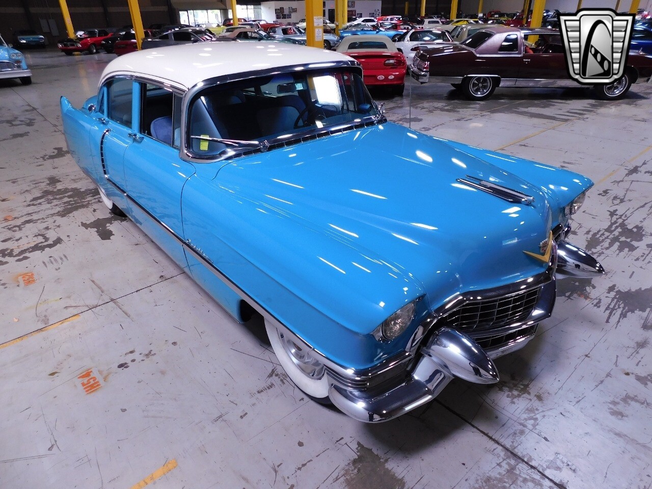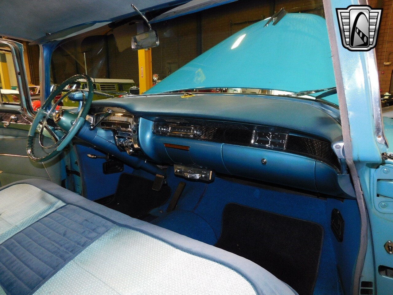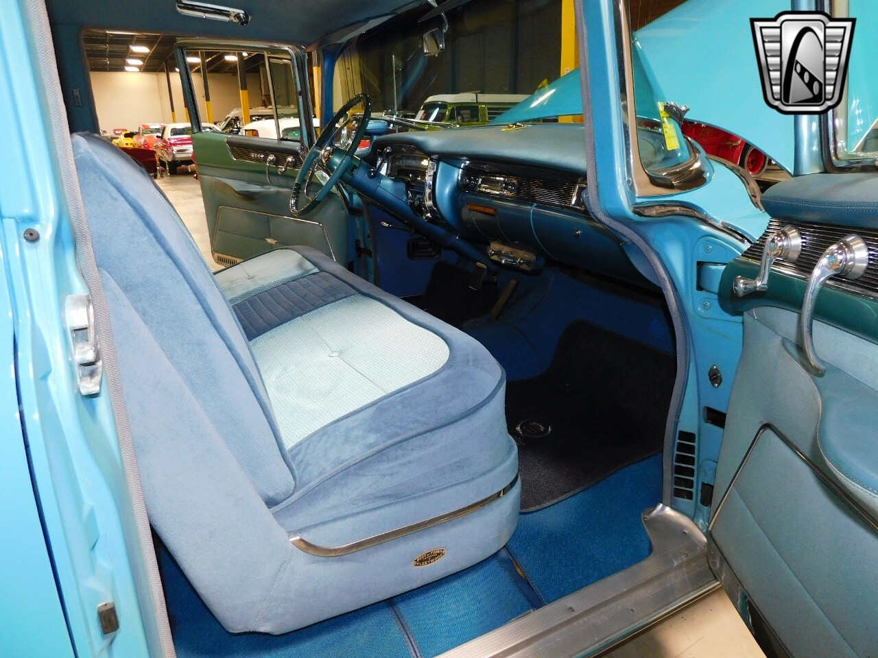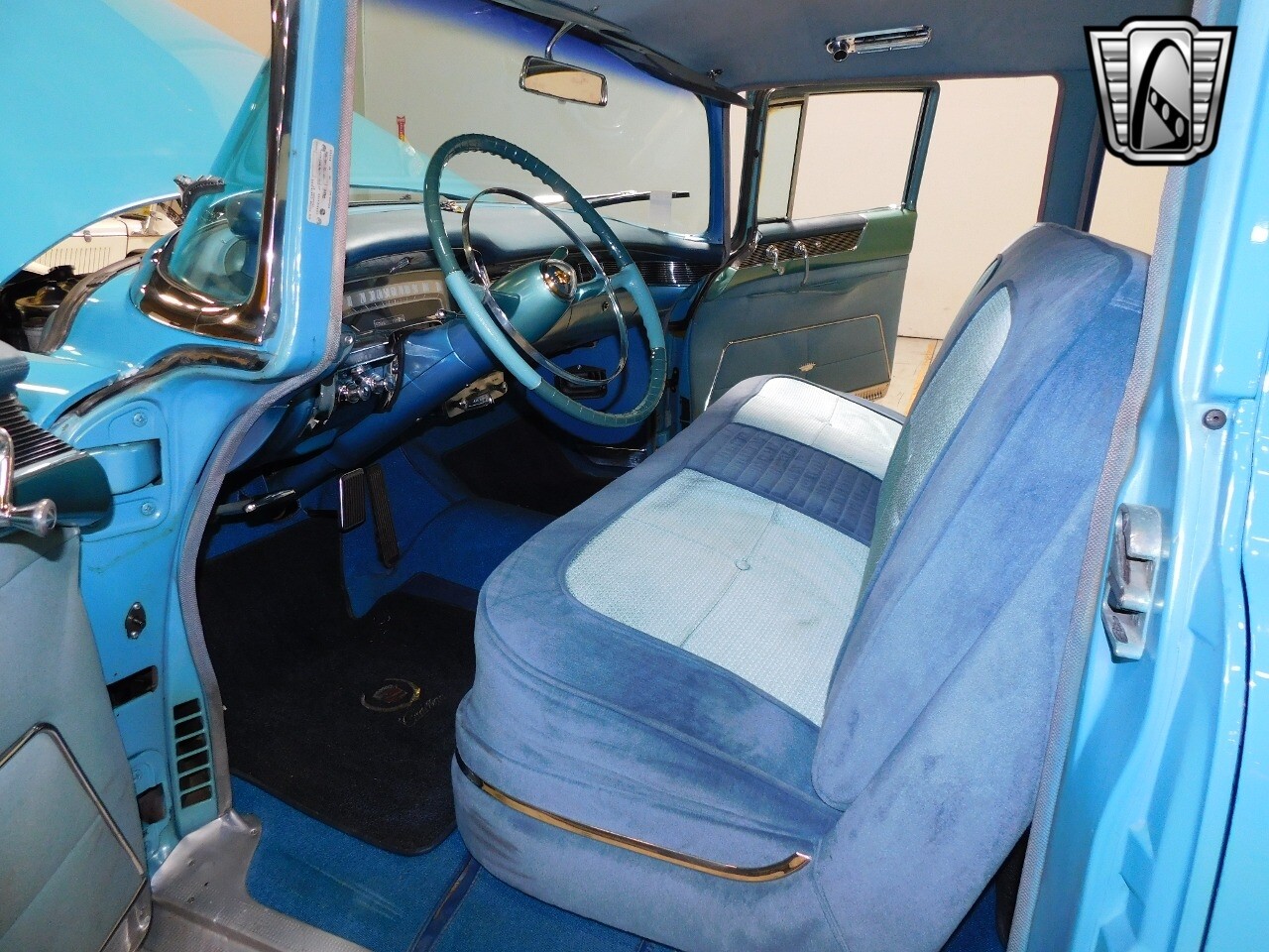 Gateway Classic Cars of Philadelphia is proud to digitally present this 1955 Cadillac Sixty Special. This iconic vehicle is finished in a striking blue exterior color that perfectly complements its blue cloth interior, creating a harmonious blend of style and comfort.