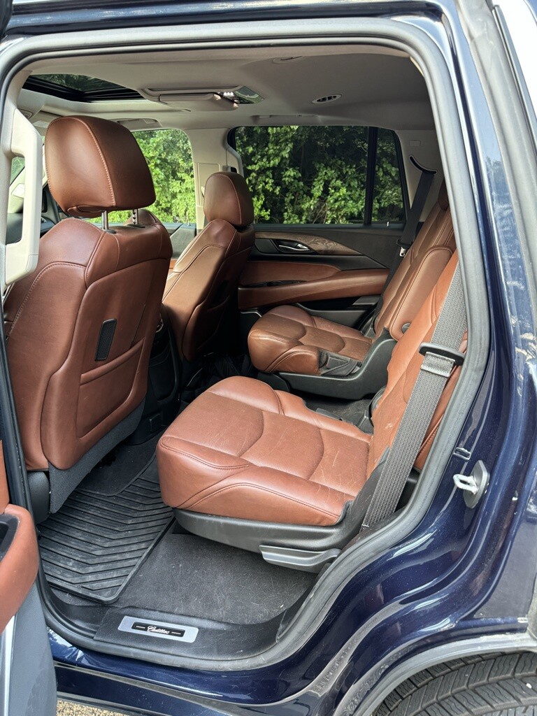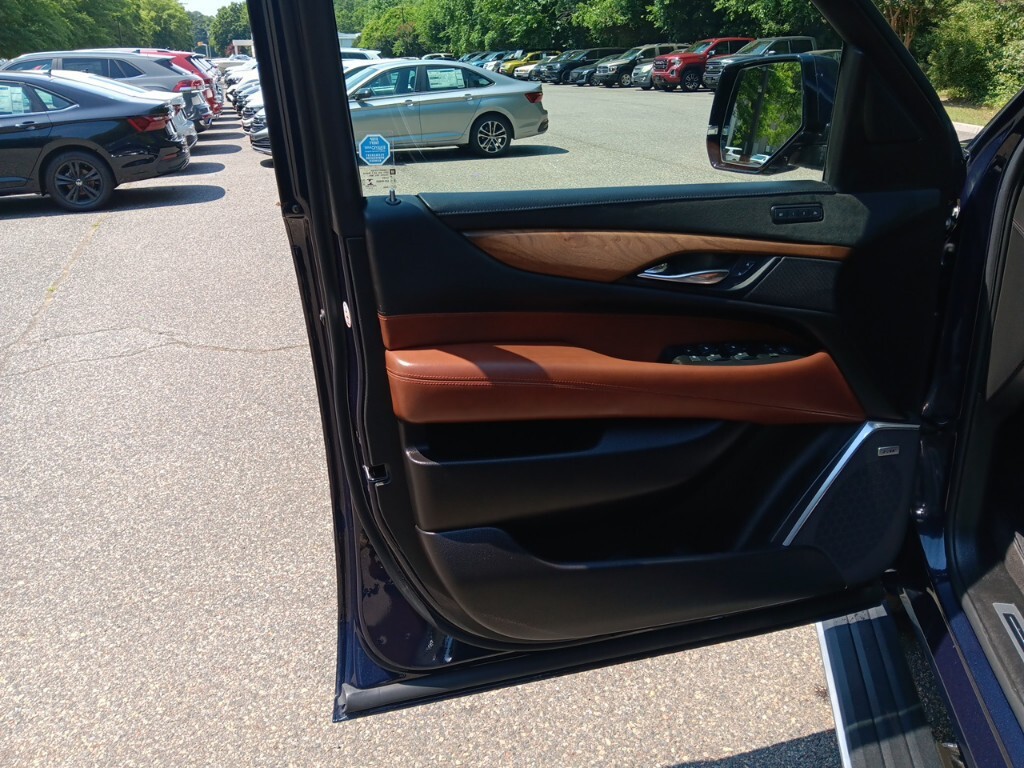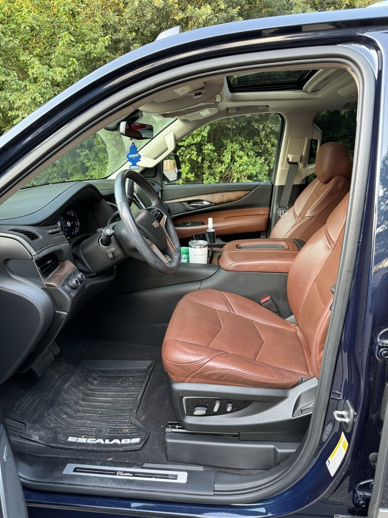 Clean CARFAX. Odometer is 15538 miles below market average! Power Sunroof / Moonroof, Backup Camera, Bluetooth, Bose High End Sound Package, ALLOY WHEELS, BACKUP CAMERA, BLUETOOTH, DVD ENTERTAINMENT SYSTEM, KEYLESS ENTRY, LEATHER SEATS, MOONROOF, NAVIGATION, POWER PACKAGE, REMOTE START, THIRD ROW SEAT, APPLE ANDROID CARPLAY, PUSH BUTTON START, 4WD, Maple Sugar w/Jet Black Accents w/Semi-Aniline Leather Seating Surfaces, 12-Way Power Front Passenger Seat Adjuster, 16 Speakers, 2-Presets Memory For Driver Seat Adjuster, 3rd row seats: split-bench, A/V remote, Advanced Adaptive Cruise Control, Air Conditioning, Automatic Seat Belt Tightening, Automatic temperature control, Bose Centerpoint 16 Speaker Surround Sound System, Driver Assist Package, Driver Awareness Package, Electronic Powered Parking Brake, Enhanced Automatic Emergency Braking, Forward Collision Alert, Front anti-roll bar, Front dual zone A/C, HD Radio, Headphones, Heads-Up Display, Heated & Cooled Driver & Front Passenger Seats, Heated rear seats, IntelliBeam Automatic High Beam On/Off, Lane Change Alert w/Side Blind Zone Alert, Lane Keep Assist w/Lane Departure Warning, Memory seat, Navigation System, Occupant sensing airbag, Overhead airbag, Power Configurable Second Row Bucket Seats, Power Liftgate, Power moonroof, Power passenger seat, Power Tilt-Sliding Sunroof w/Express-Open/Close, Radio data system, Radio: AM/FM Cadillac User Experience w/Nav, Rear air conditioning, Rear audio controls, Rear Cross Traffic Alert, Rear Seat Entertainment System, Rear window defroster, Reverse Automatic Braking, Safety Alert Seat, SiriusXM NavTraffic, SiriusXM Radio, Split folding rear seat, Steering wheel mounted audio controls, Tachometer, Telescoping steering wheel, Trip computer, Vehicle Interior Movement Sensor, Ventilated front seats. Certified. Dark Adriatic Blue Metallic 2020 Cadillac Escalade Premium Luxury 4WD 10-Speed Automatic with Overdrive 6.2L V8