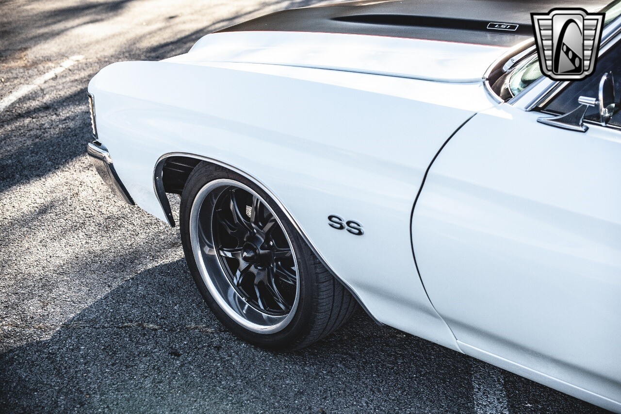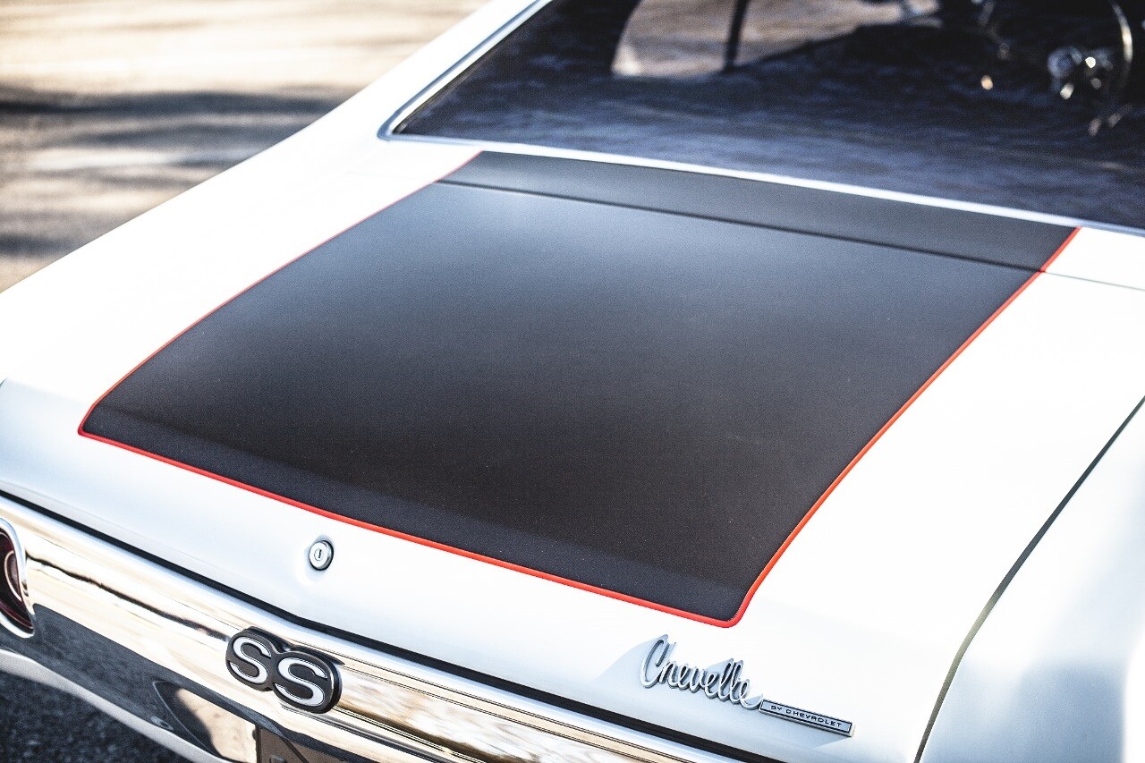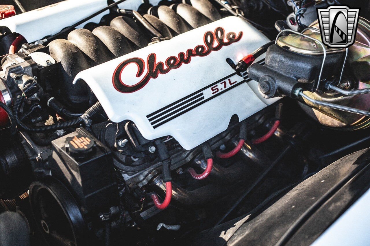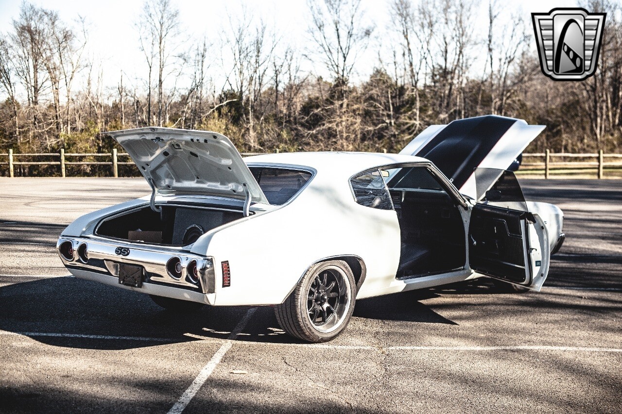 Under the hood, you'll find a robust V8 engine paired with an automatic transmission, promising a smooth yet powerful ride. This Chevelle is not just about power and speed, it's also about comfort and convenience. The black leather interior is not only stylish but also provides a comfortable ride, making every journey a pleasure.